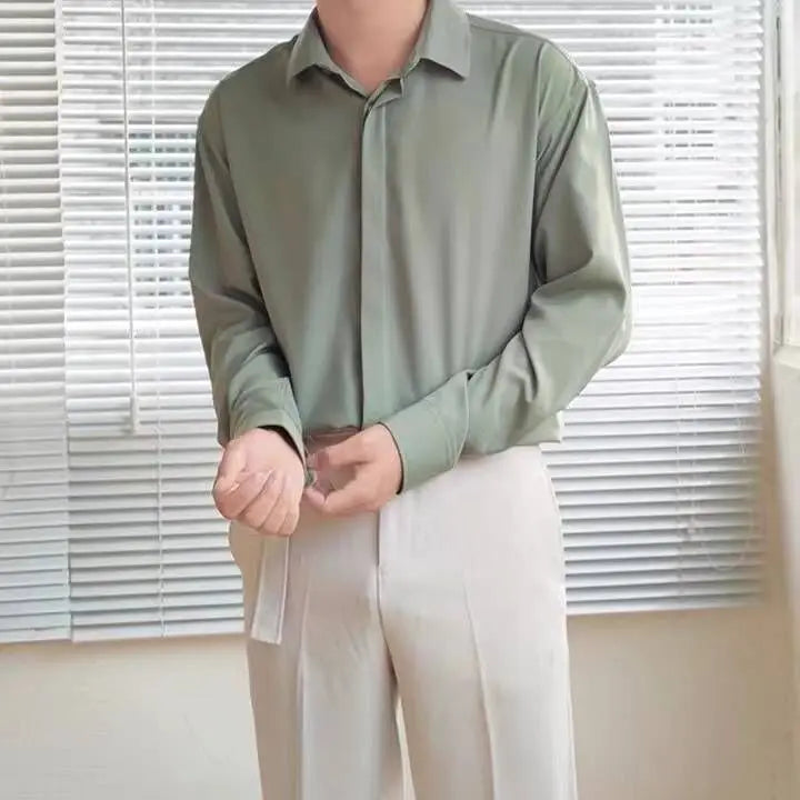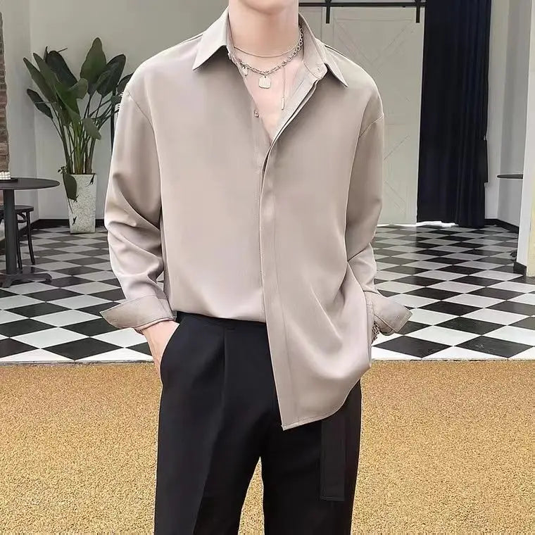 Spring Autumn Solid KPOP Fashion Shirt Men Button Harajuku Tops Loose Casual All Match Outerwear Long Sleeve Blusa Male Clothes