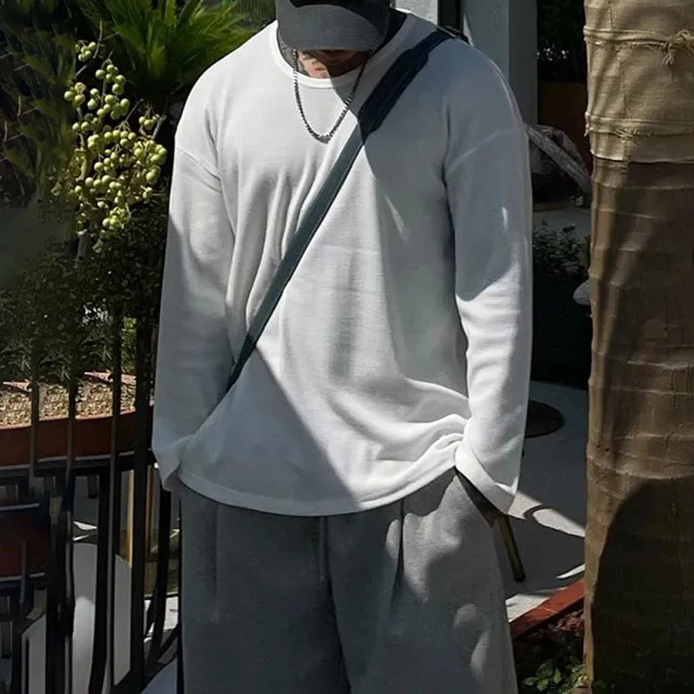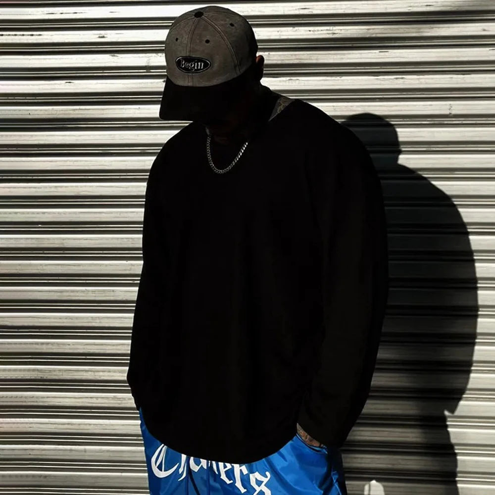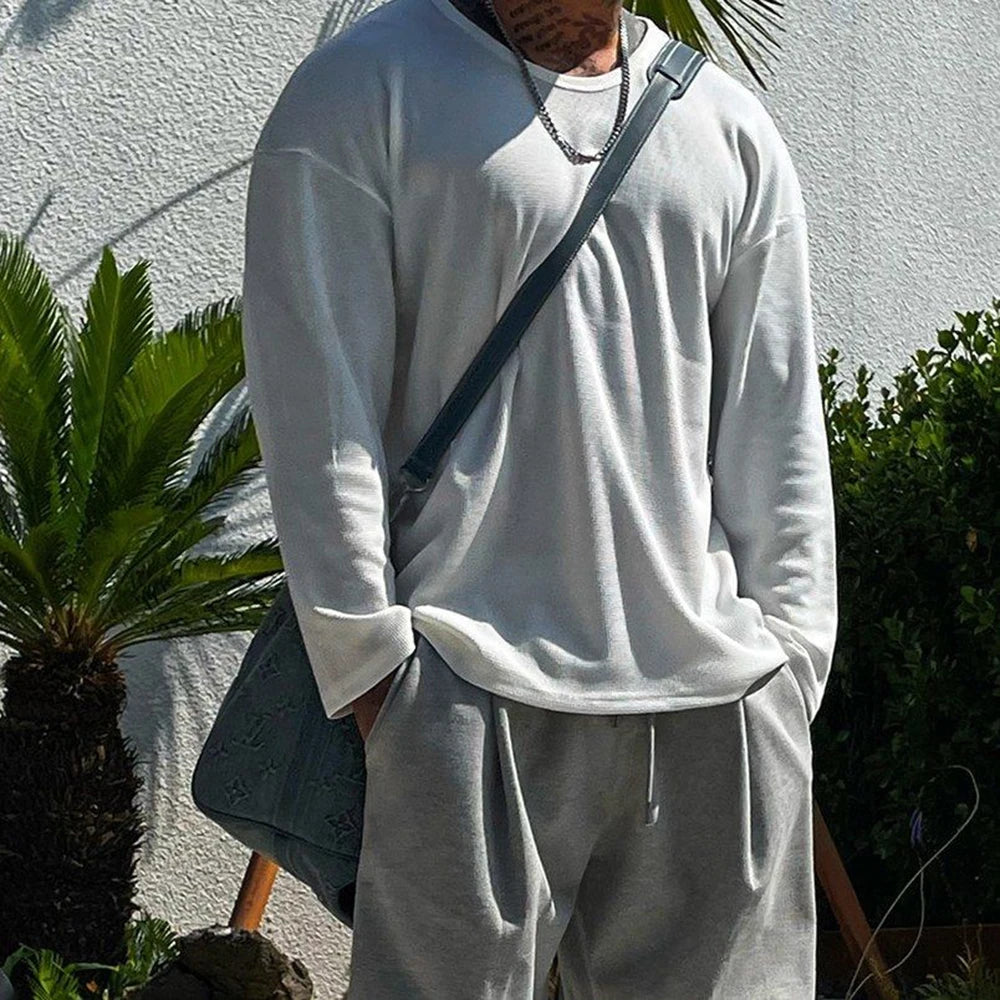 Street Fashion Round Neck Solid Color Loose T-Shirt Straight Mens Autumn Running Fitness Training Sports Leisure Long Sleeve Top