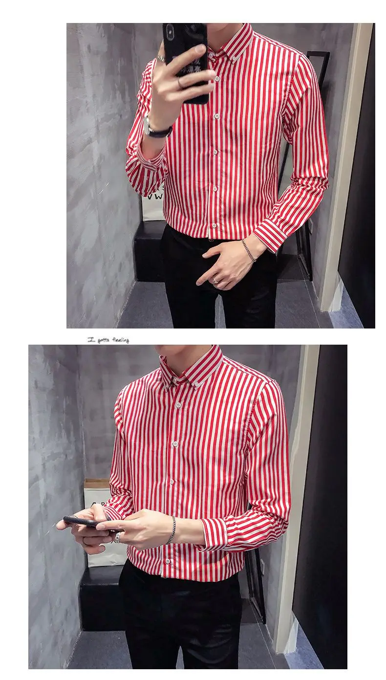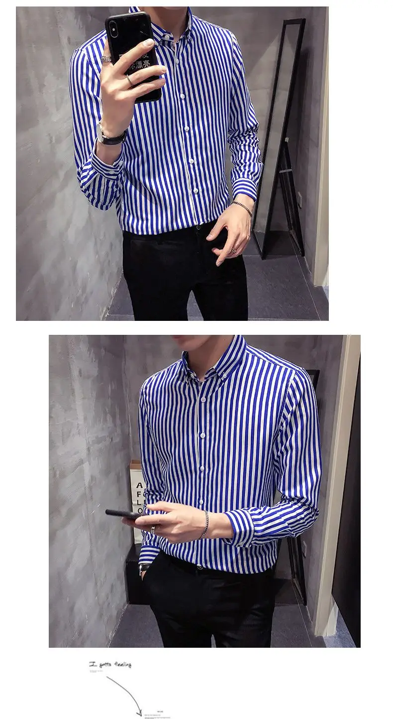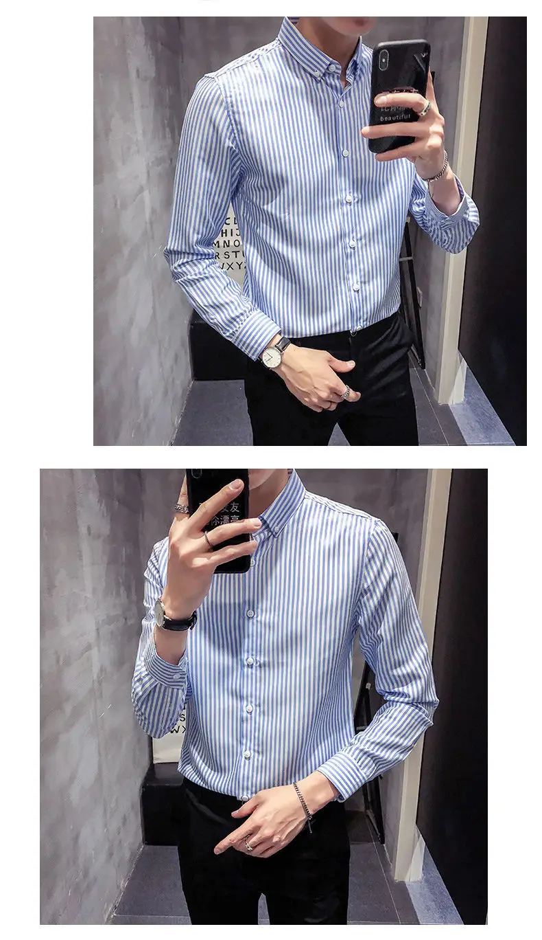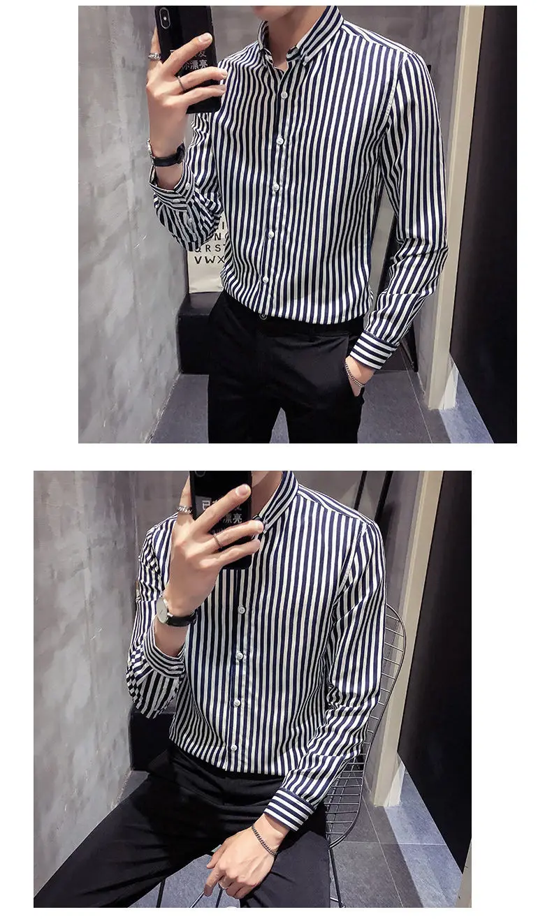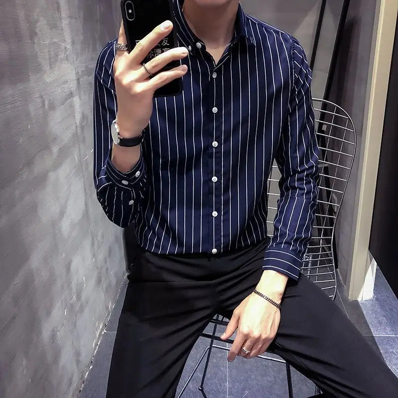 Trend Men's Clothing Summer Thin Long Sleeve Polo-Neck Single-breasted Striped Printed Business Casual Simplicity Commute Shirts
