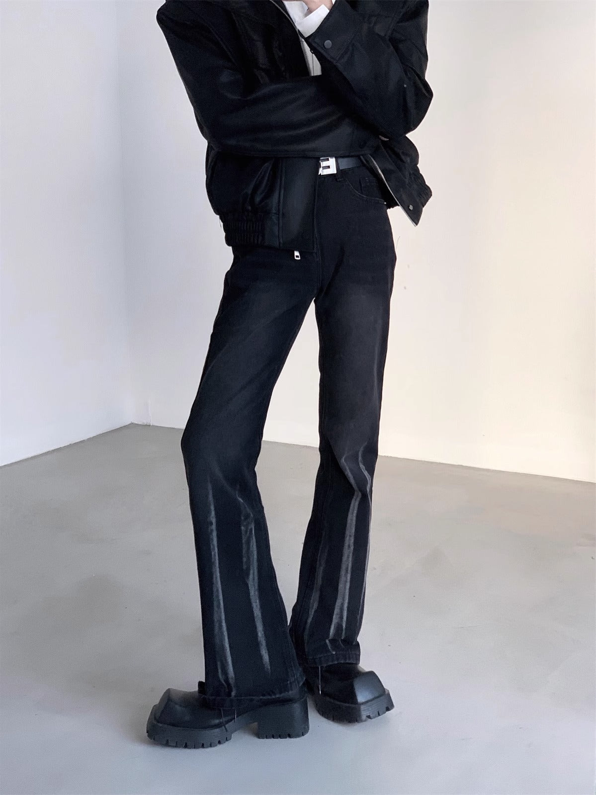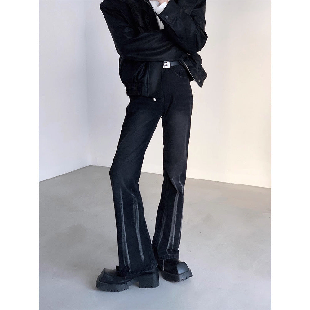 Long-leg tie-dye vibe style designer jeans for men straight washed retro drape tall flared pants