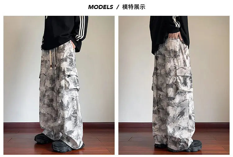 Mens Casual Pants Straight Leg Loose Fit Tactical Cargo Joggers Wide Leg Tie Dye Trousers Trendy Fashion Side Pocket pants man
