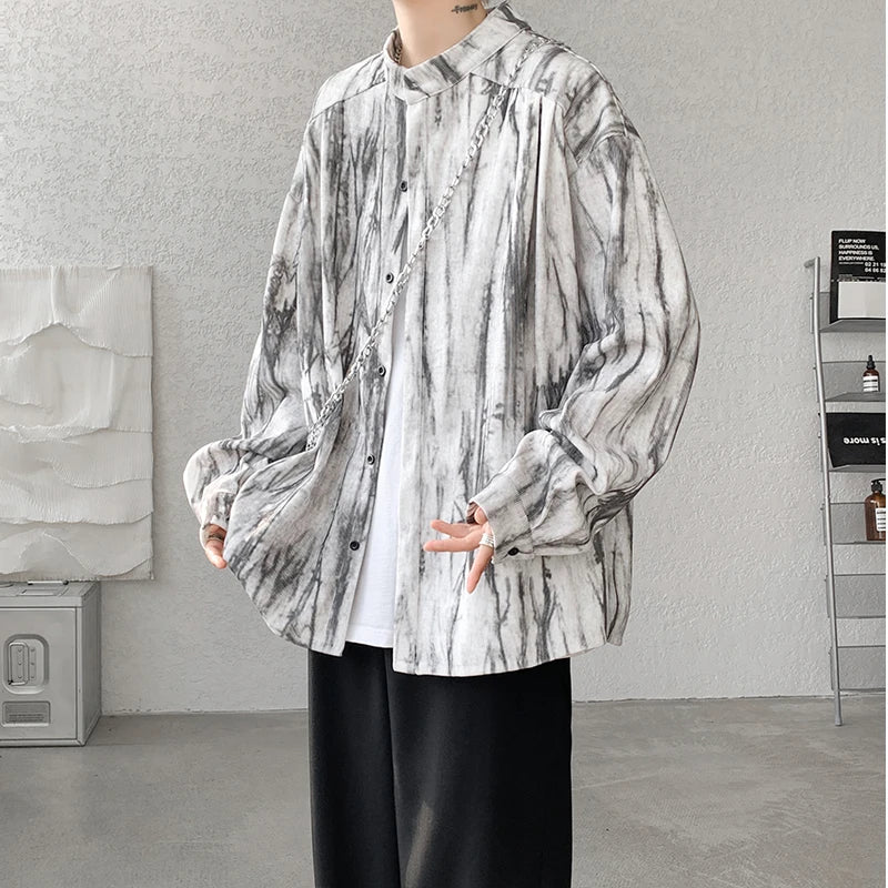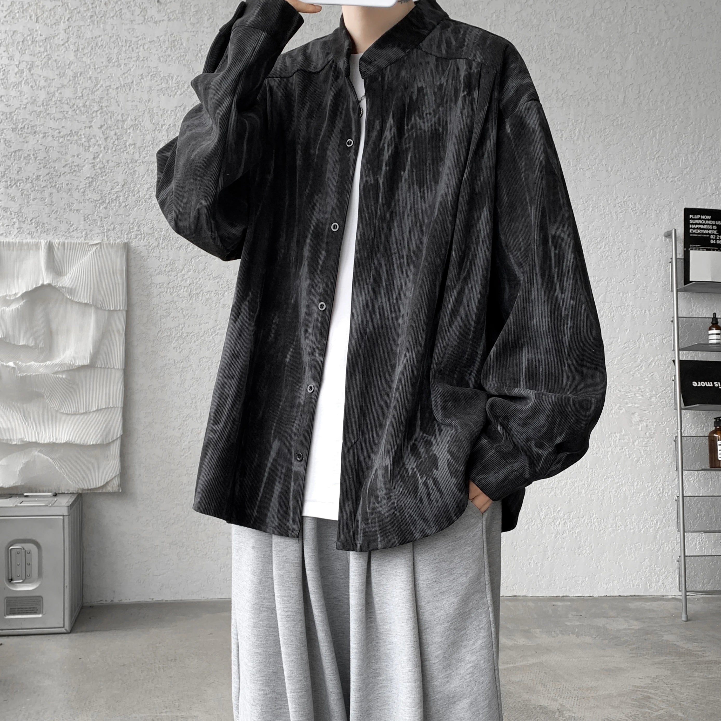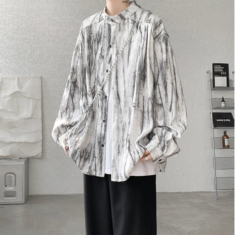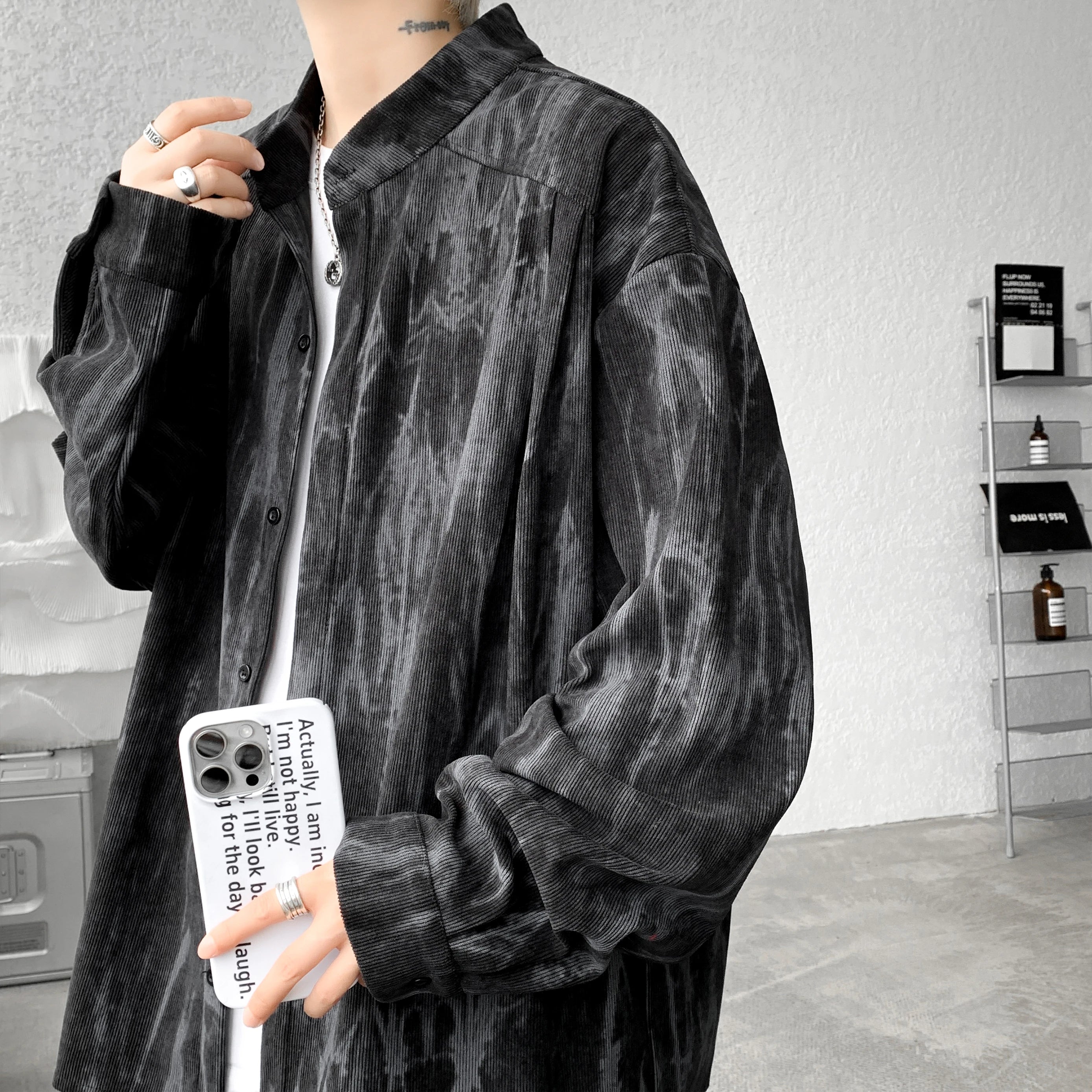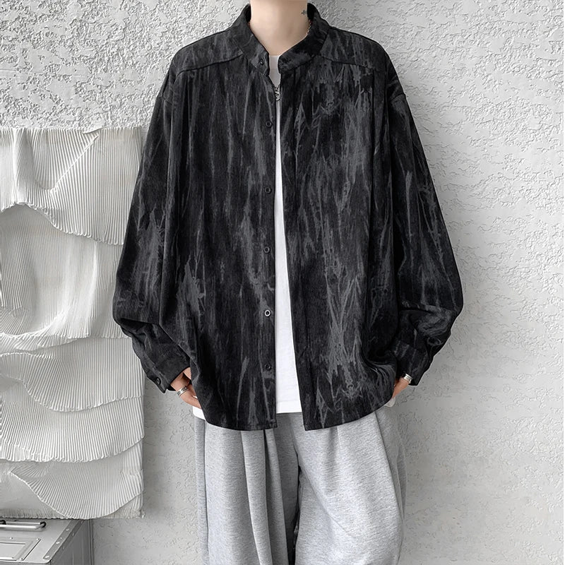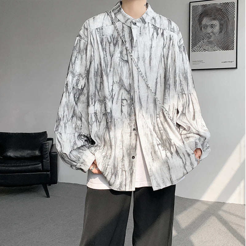 Stand Collar Tie-dye Shirt Men Handsome Long Sleeve Men's Clothing Spring Autumn Korean Loose Streetwear Casual Shirts