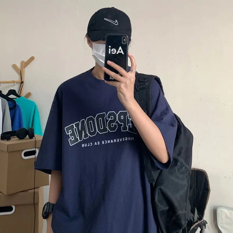 100% Pure Cotton Short-sleeved T Shirts for Men New Ins Hong Kong Style Letter Print Harajuku Simple Casual All-match T-shirt