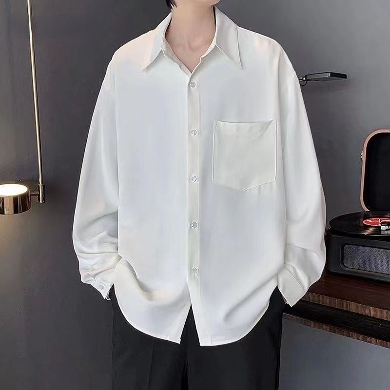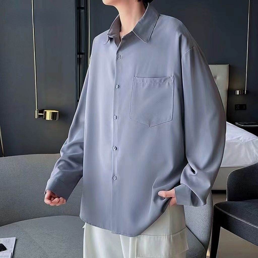 New Casual Khaki Long Sleeve Shirt Mens Pure Color Loose Casual Button Easy-care Dress Shirt for Men Clothing Streetwear