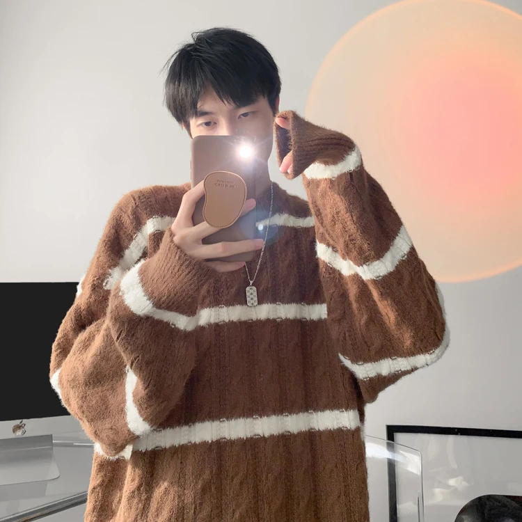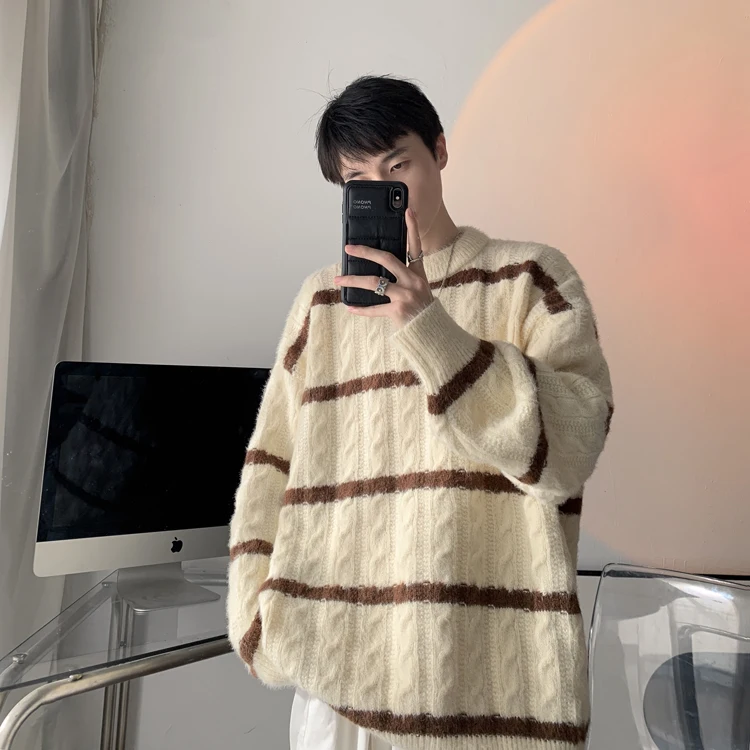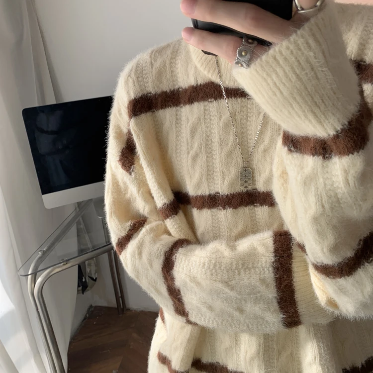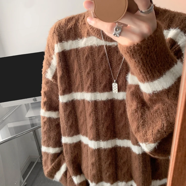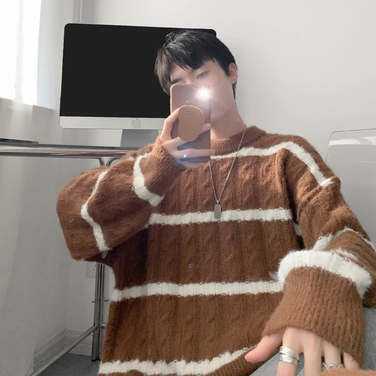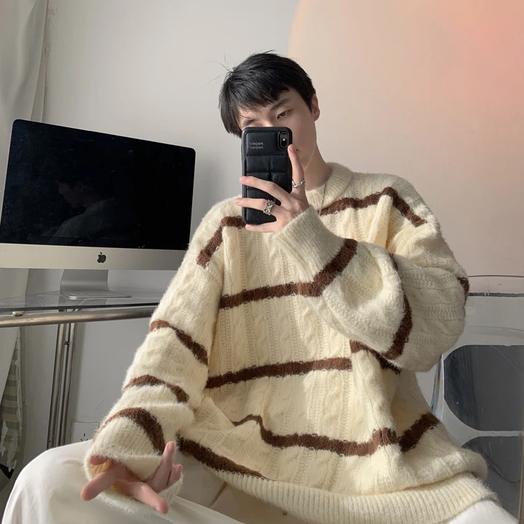 Winter New Mink Velvet Sweater Knitted Solid Sweater Men Clothes Pullover Men Sweater Casual Pullovers Bottoming Sweaters