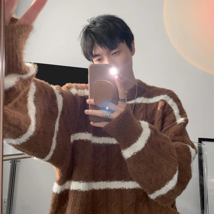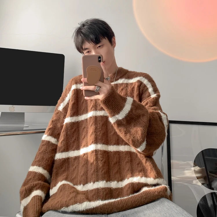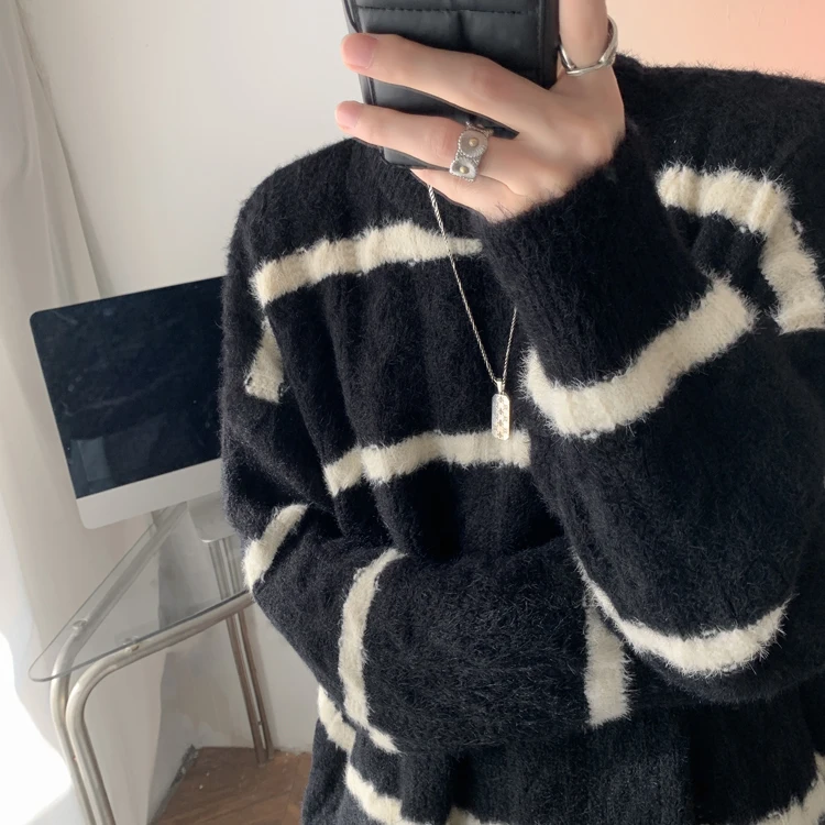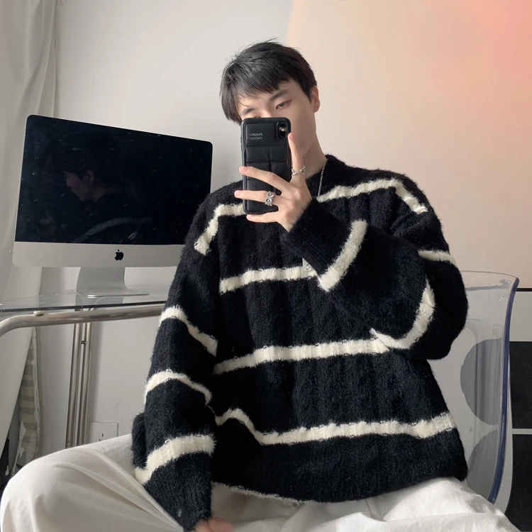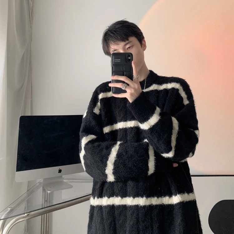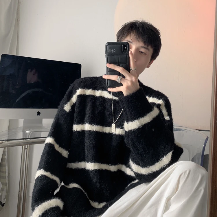 Winter New Mink Velvet Sweater Knitted Solid Sweater Men Clothes Pullover Men Sweater Casual Pullovers Bottoming Sweaters