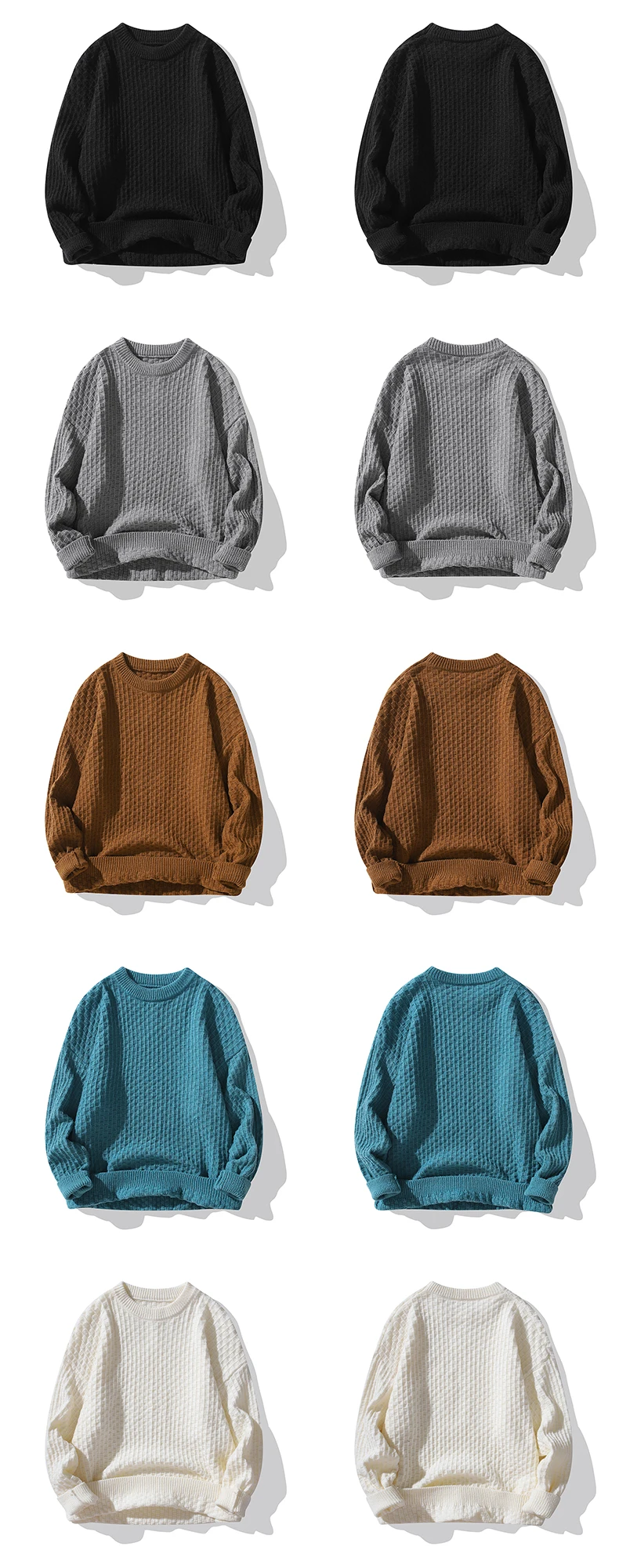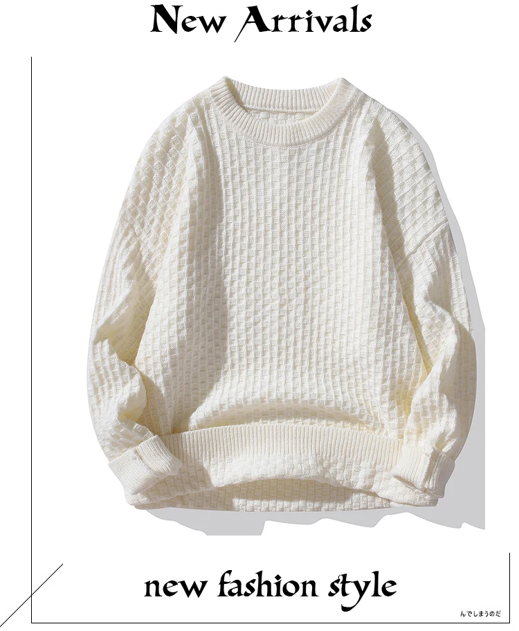New Solid Color O Neck Mens Sweater Trend High Streetwear Fashion Autumn Knitted Outwear Clothing