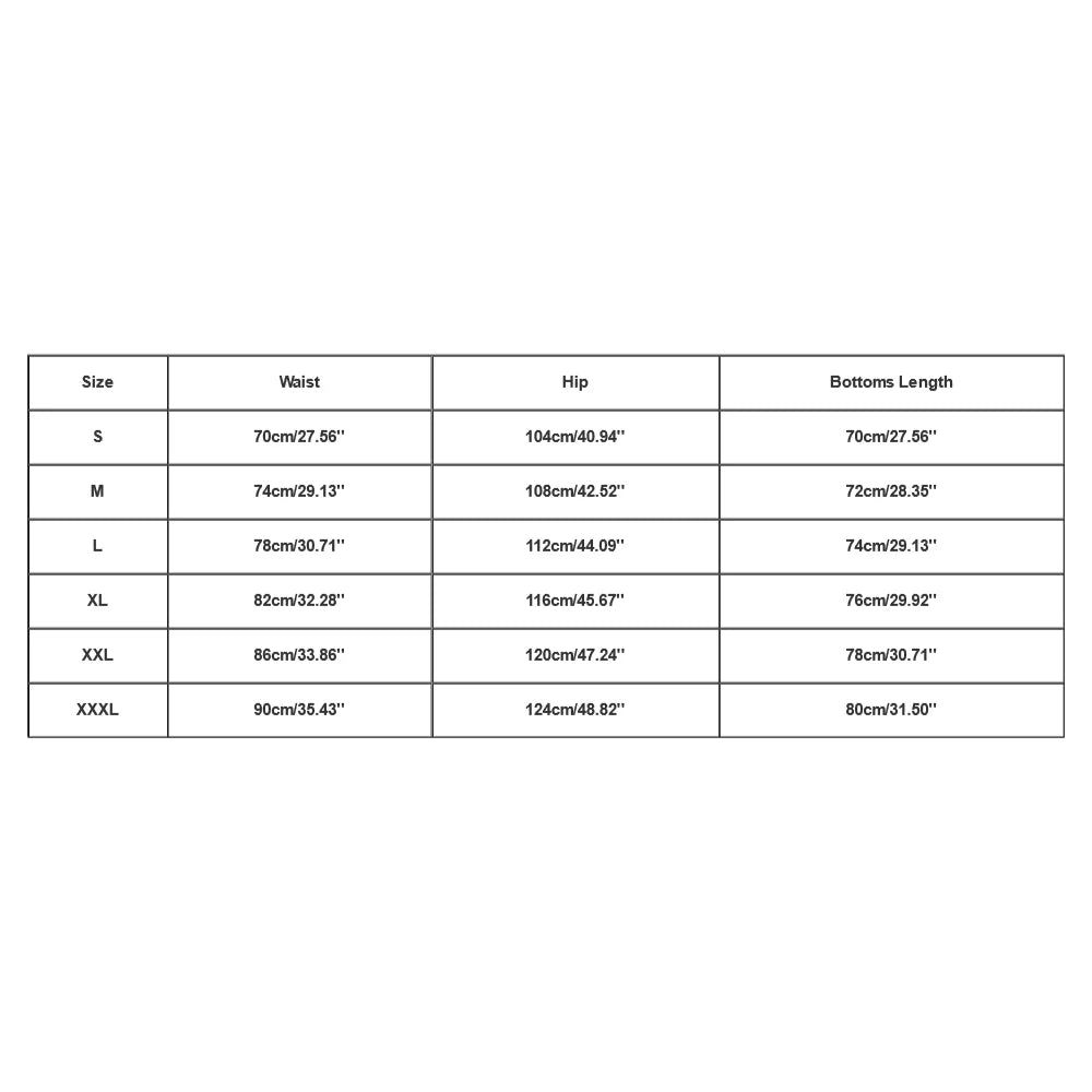Size:XXXL | Waist:90cm/35.43'' | Hip:124cm/48.82'' | Bottoms Length:80cm/31.50'' |