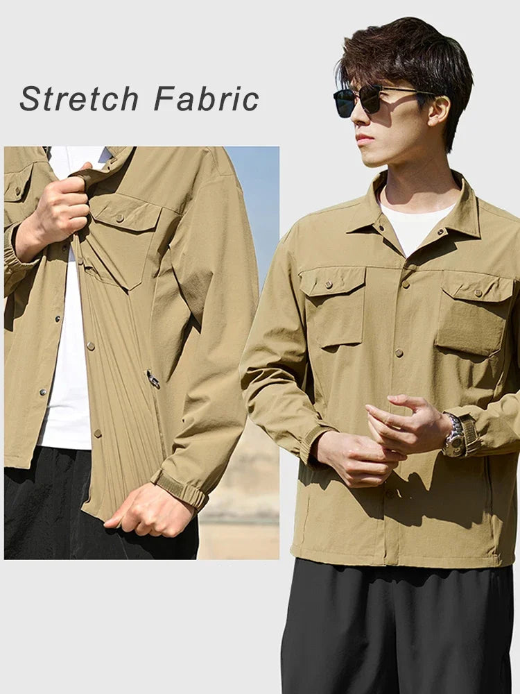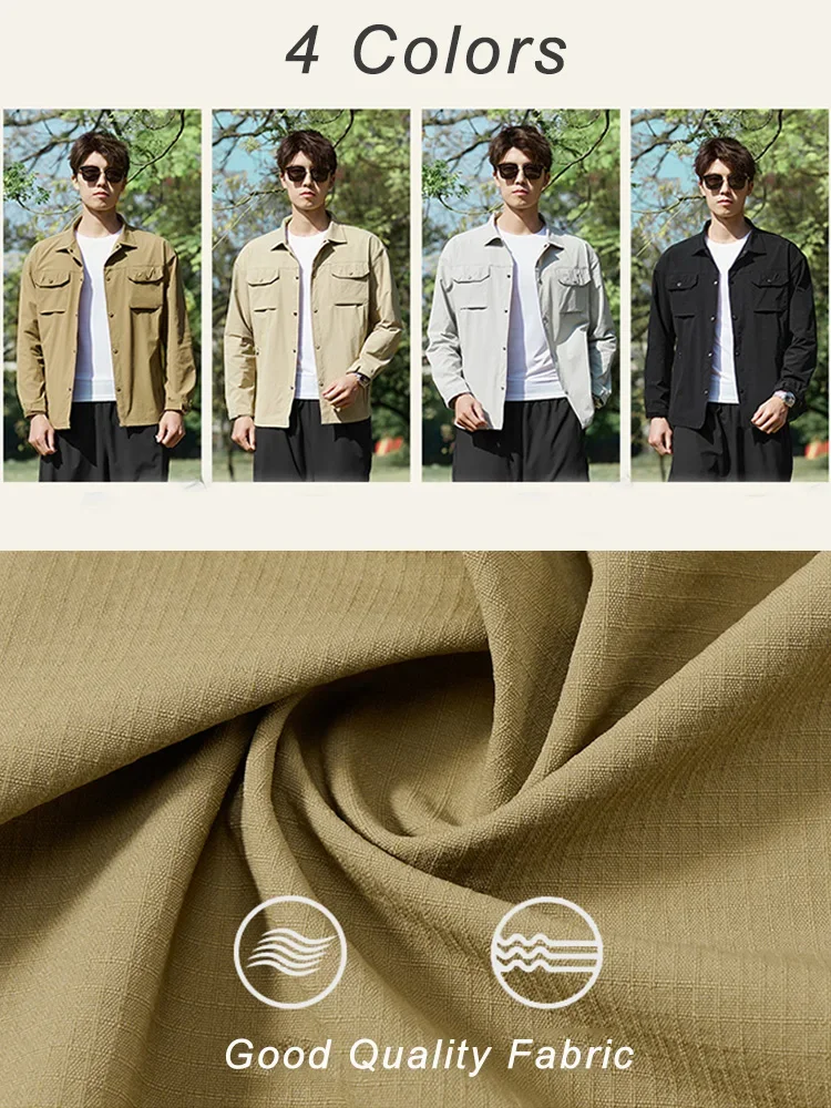 Spring New 6 Pockets Men's Jacket Outdoor Quick Dry UPF50+ Sun Protection Coat Shirts Collar Casual Jacket Plus Size 8XL
