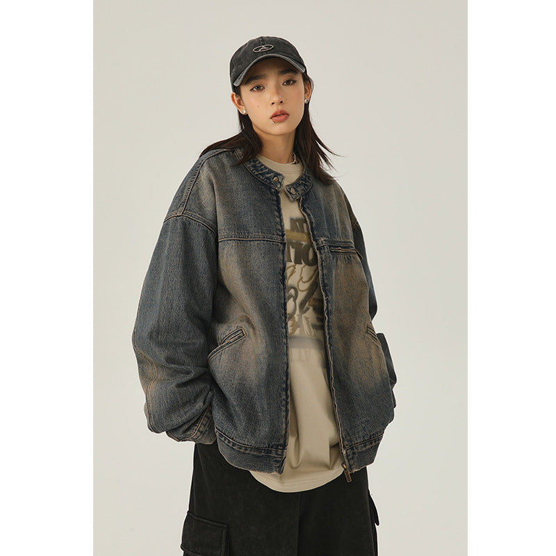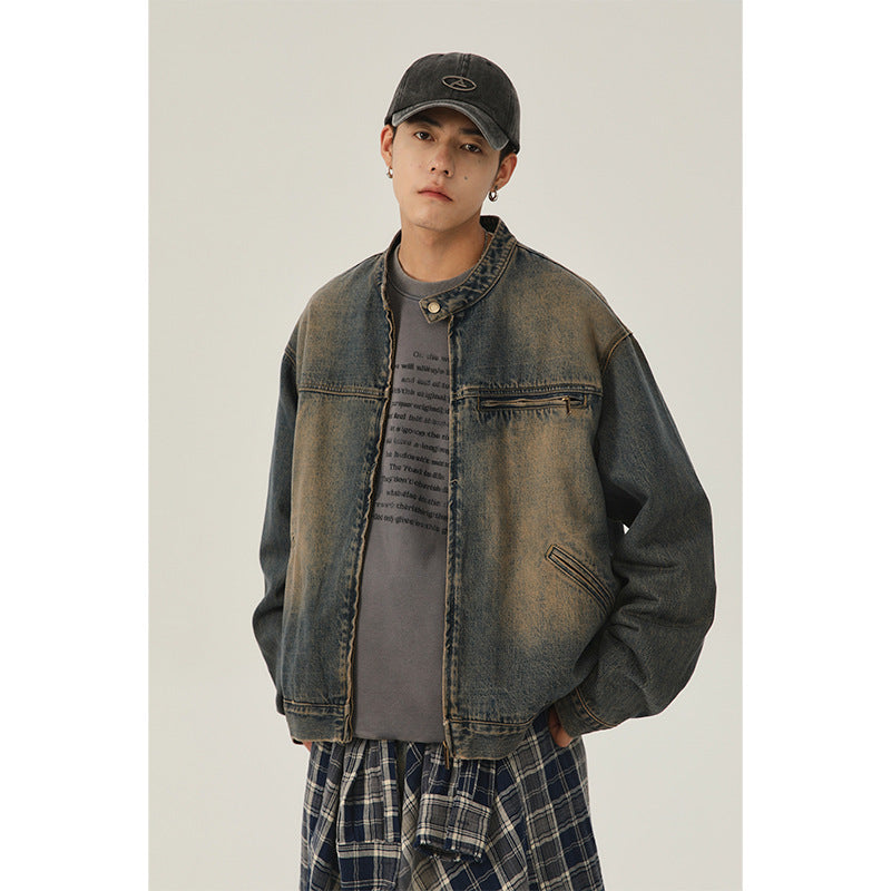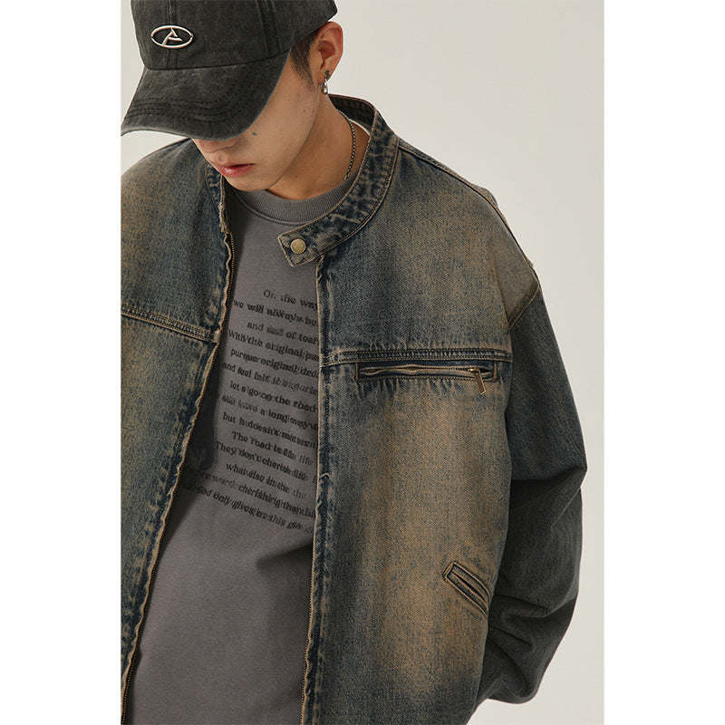 retro washed distressed denim jacket men spring and autumn new loose casual jacket men's tops