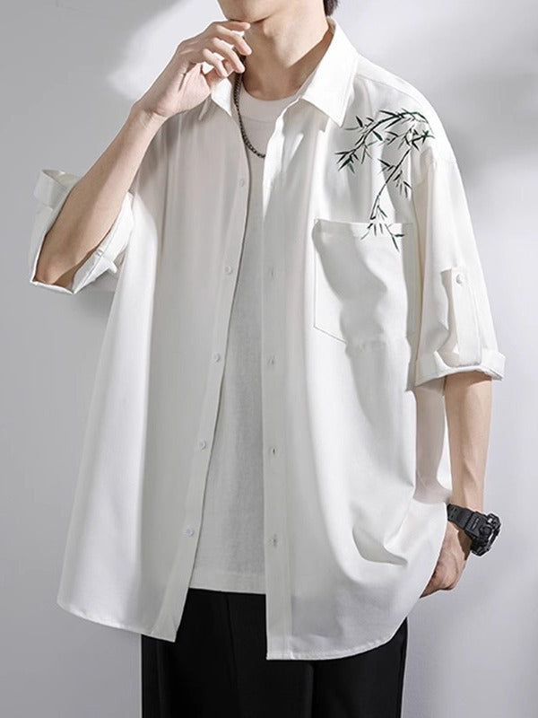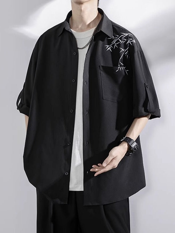 Ice silk shirt men's short sleeves summer trendy bamboo new Chinese style men's clothing Chinese style tops loose casual three-quarter sleeves
