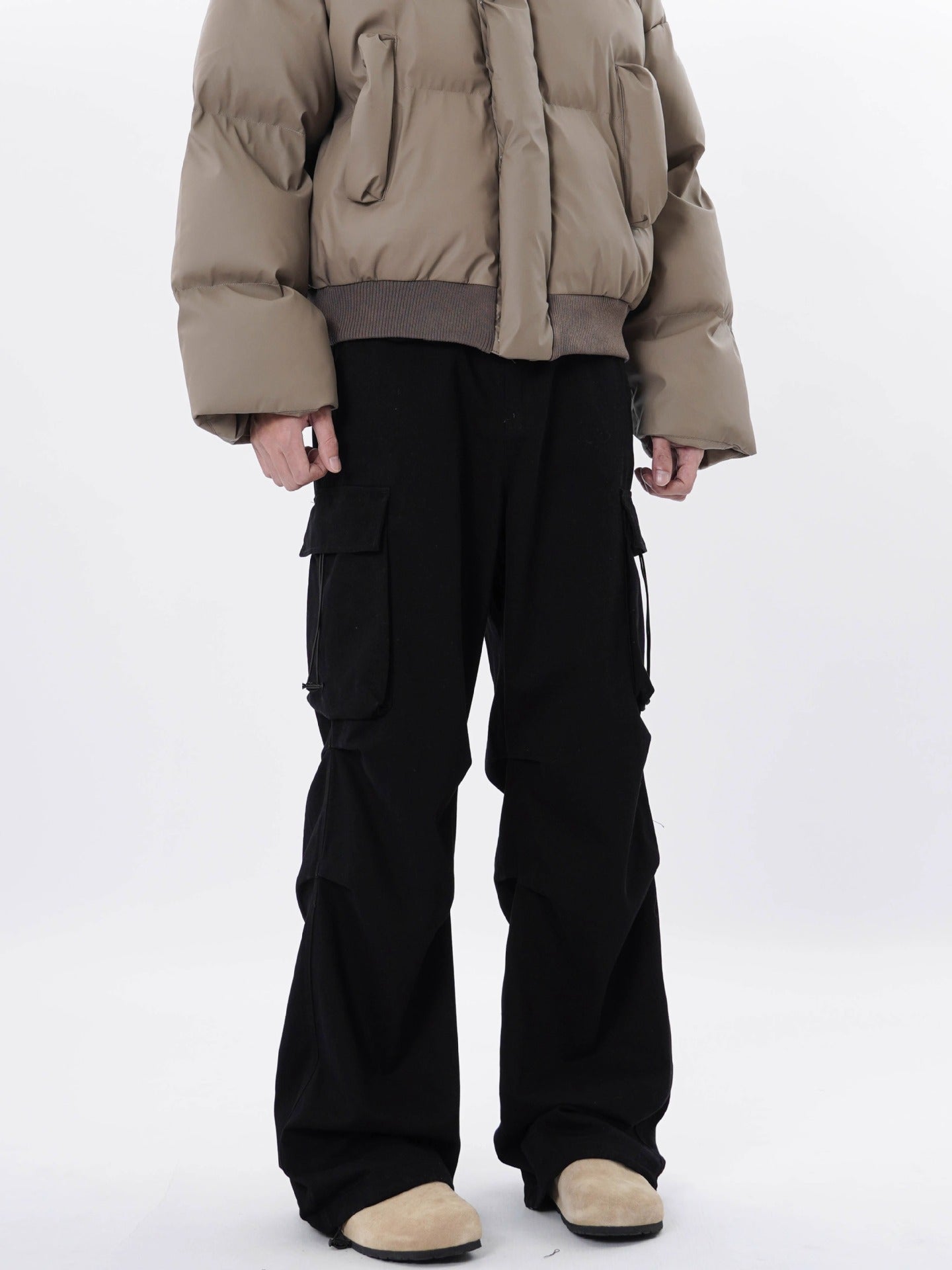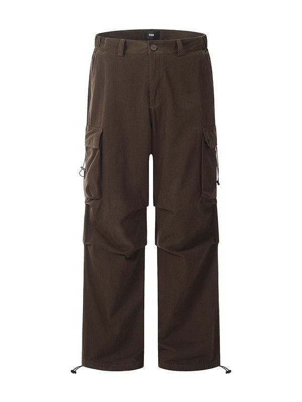 American retro pleated overalls for men, spring and autumn new loose multi-pocket design, straight-leg casual trousers