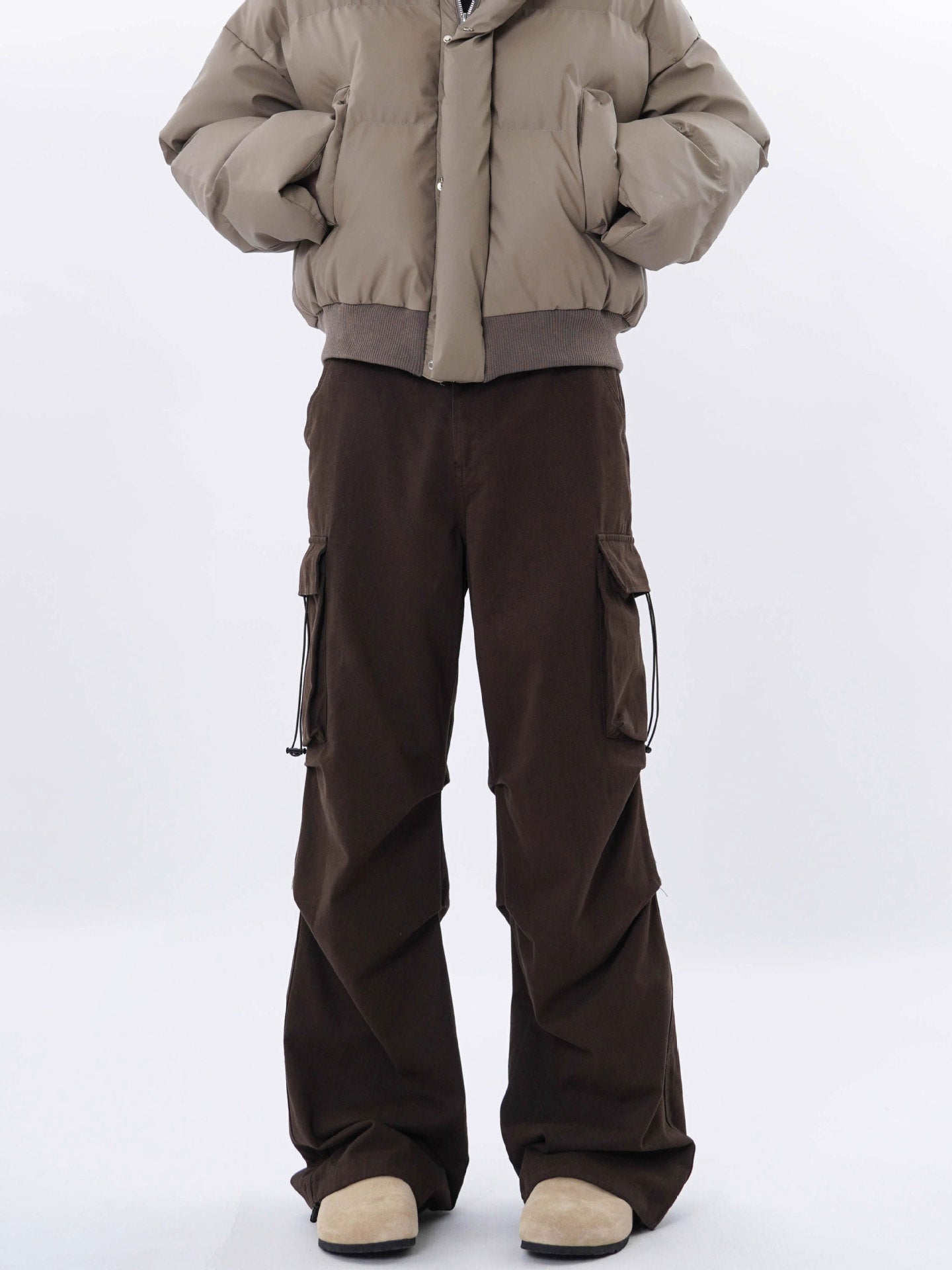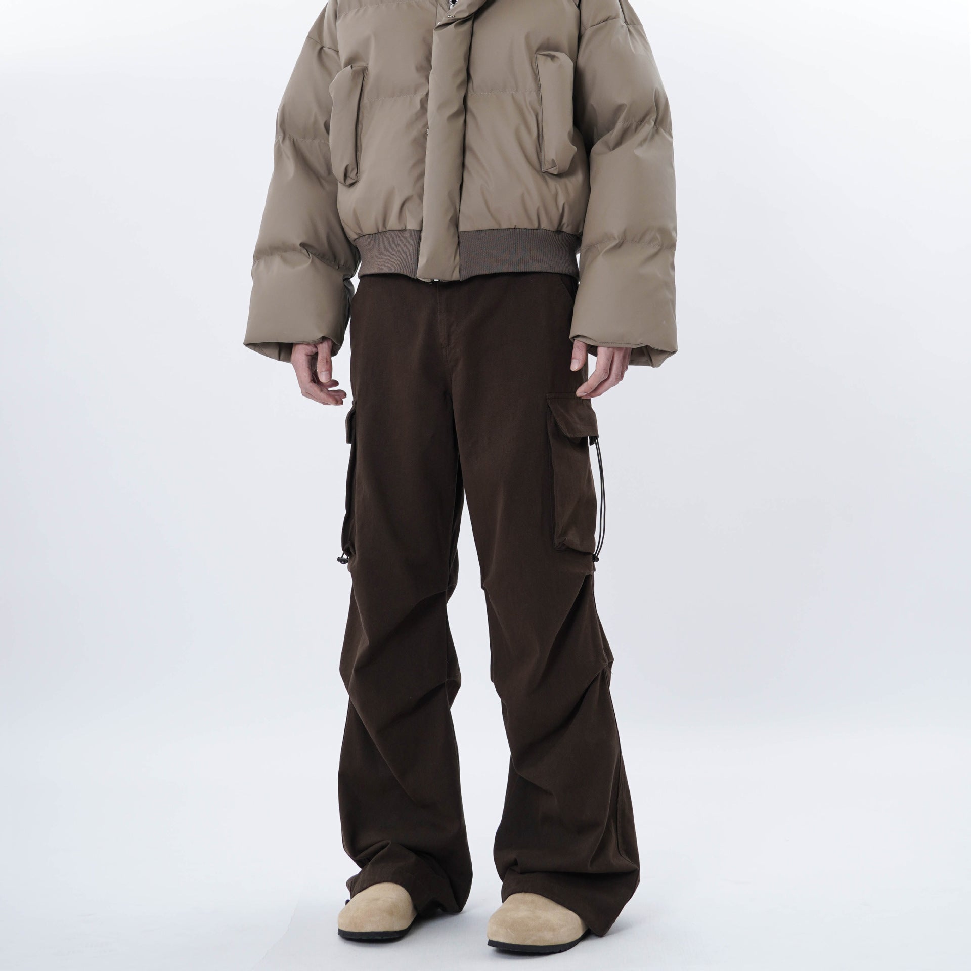 Privathinker Korean Corduroy Men's Casual Pants Drawstring Man Straight Trosuers Streetwear Harajuku Baggy Pants Bottoms