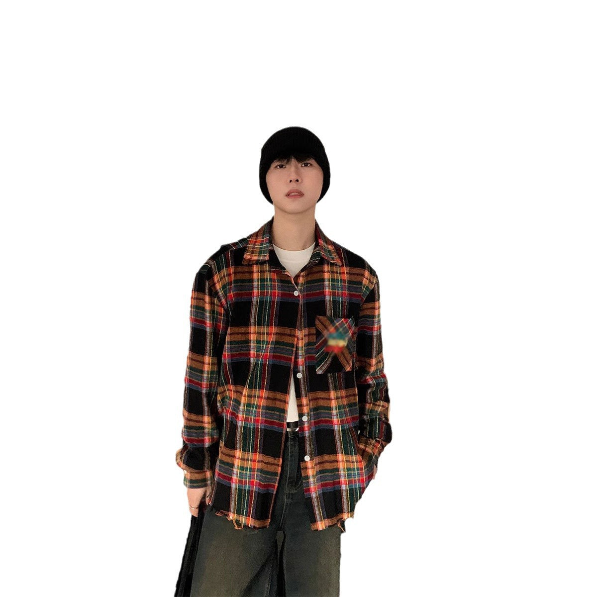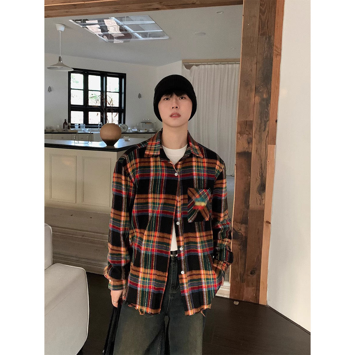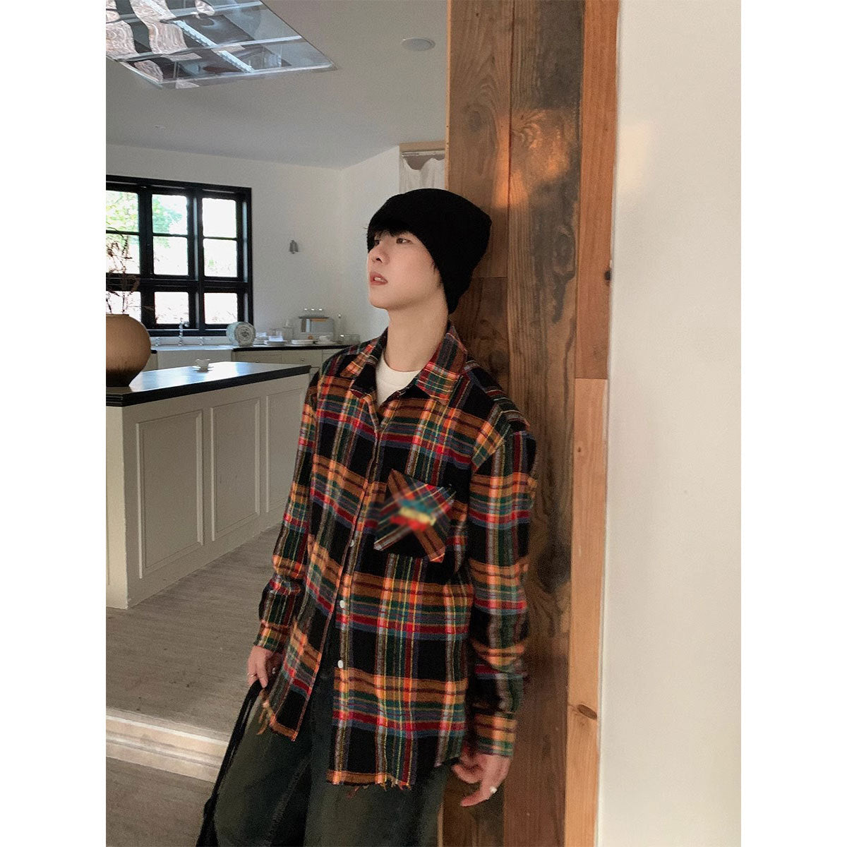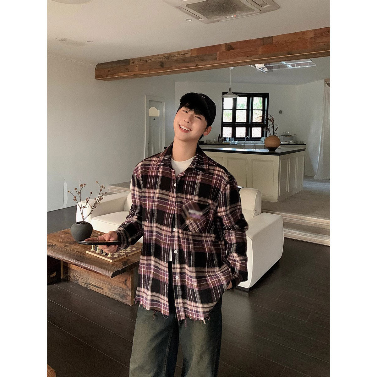 Korean American fashion brand retro shirt men's spring and autumn new casual Japanese style versatile niche long-sleeved top