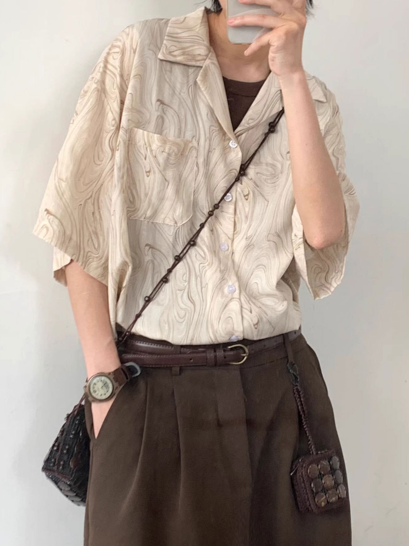 Japanese style niche retro polo shirt thin men's summer new pattern Cuban collar short-sleeved shirt top