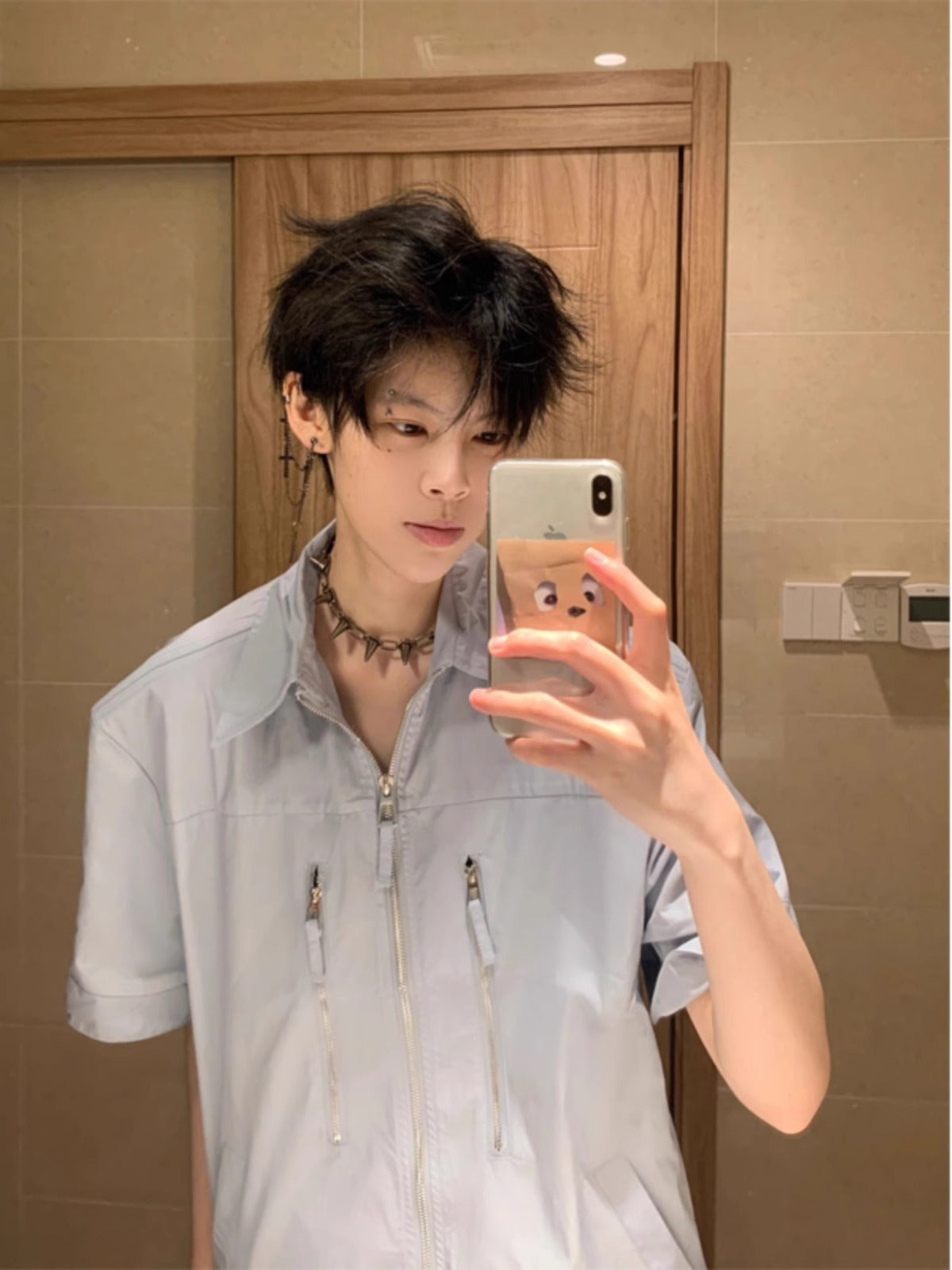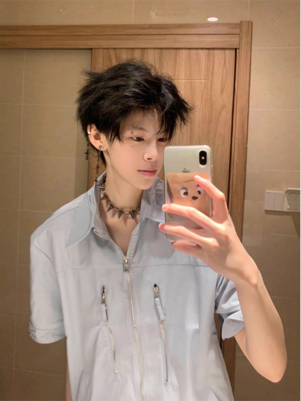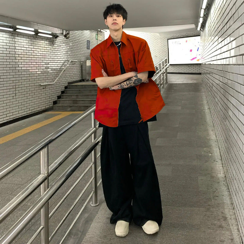 Korean style high-end shoulder pad short-sleeved shirt men's niche design zipper shirt summer new shirt jacket