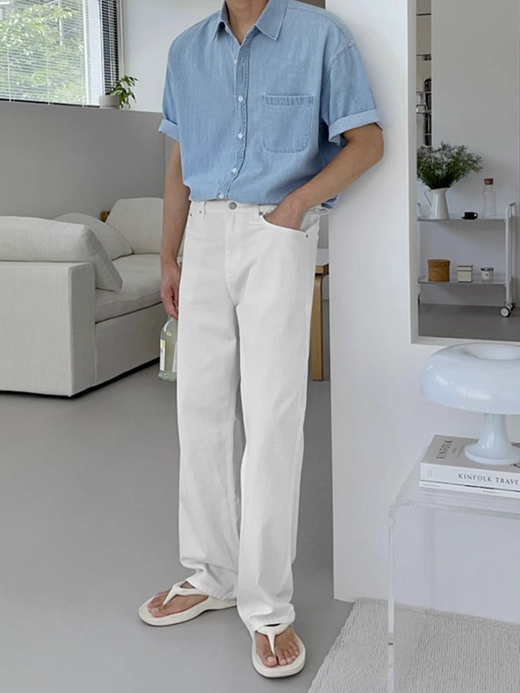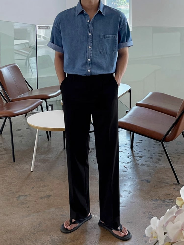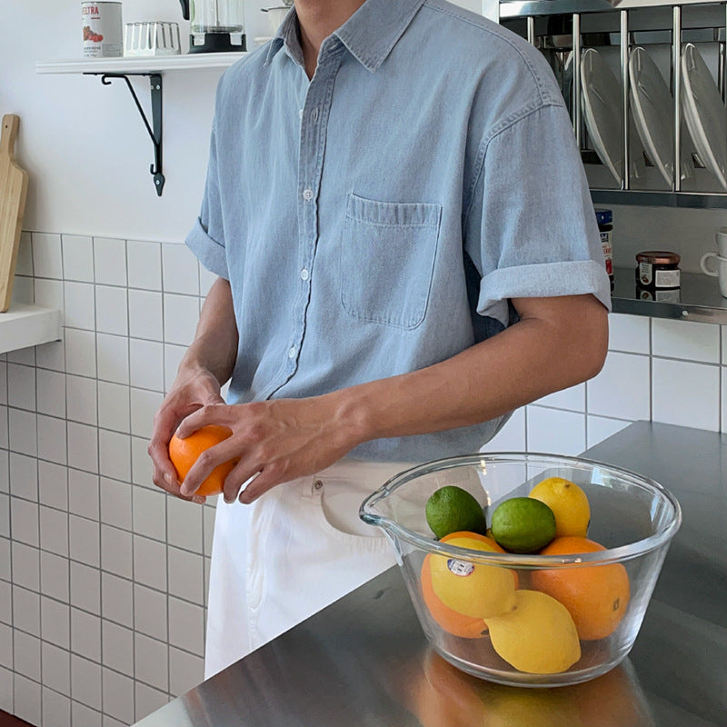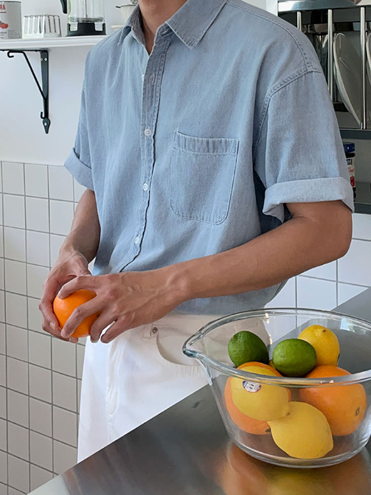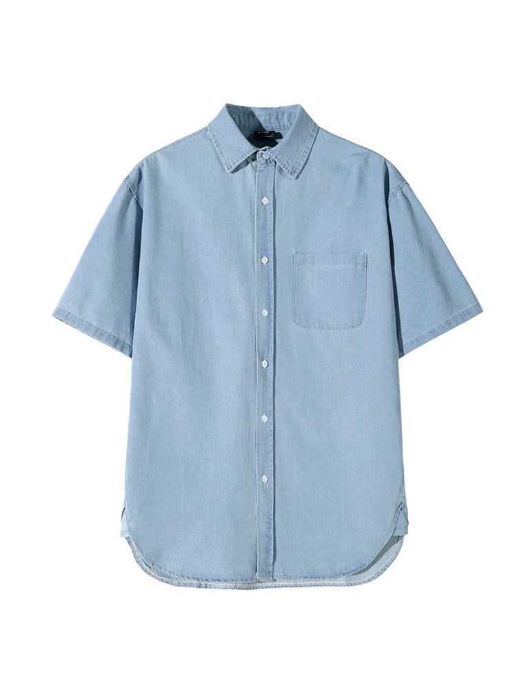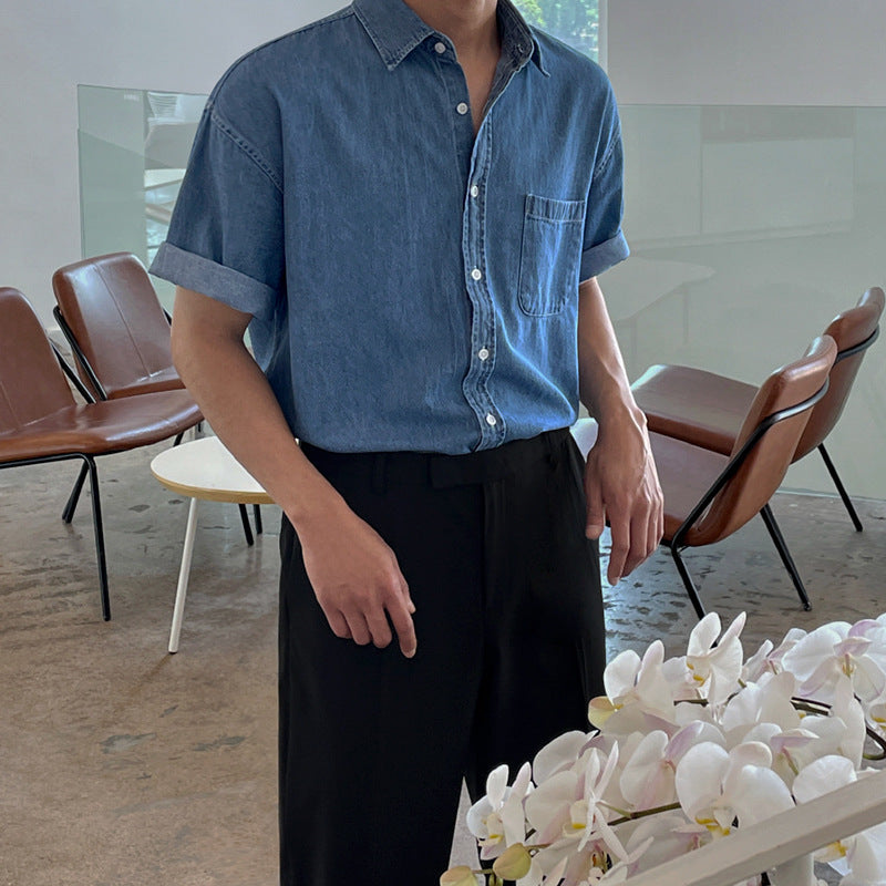 Korean style washed denim short-sleeved shirt men's summer new loose versatile retro lapel half-sleeved shirt jacket