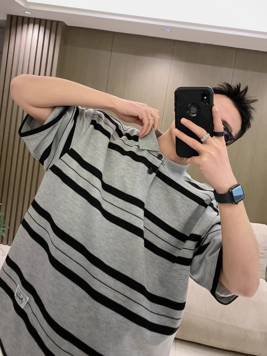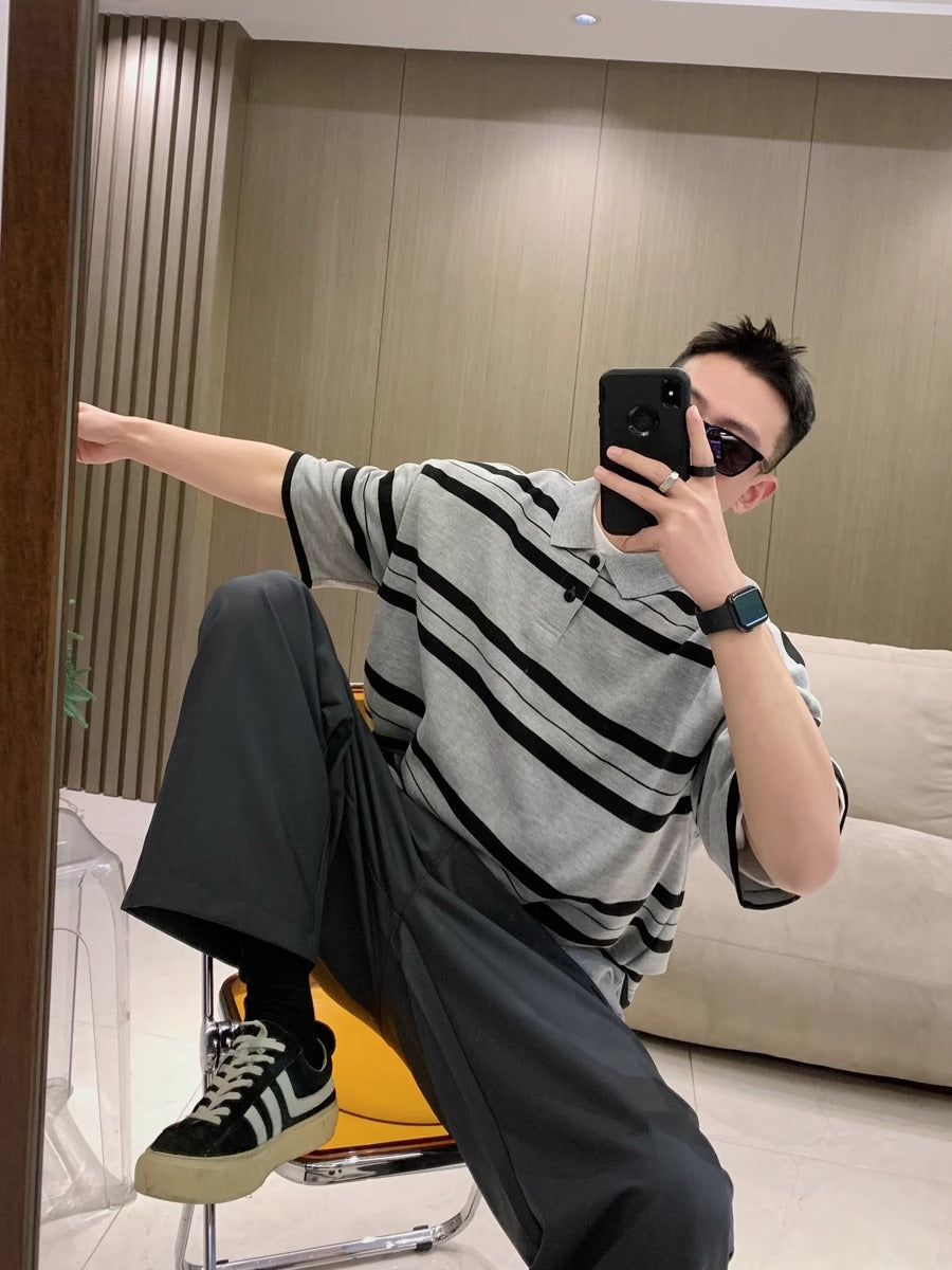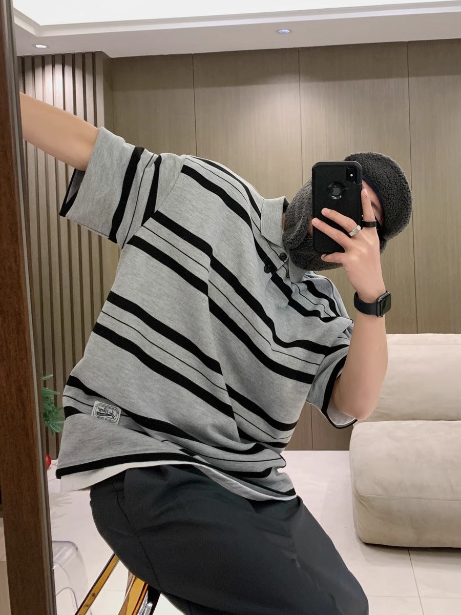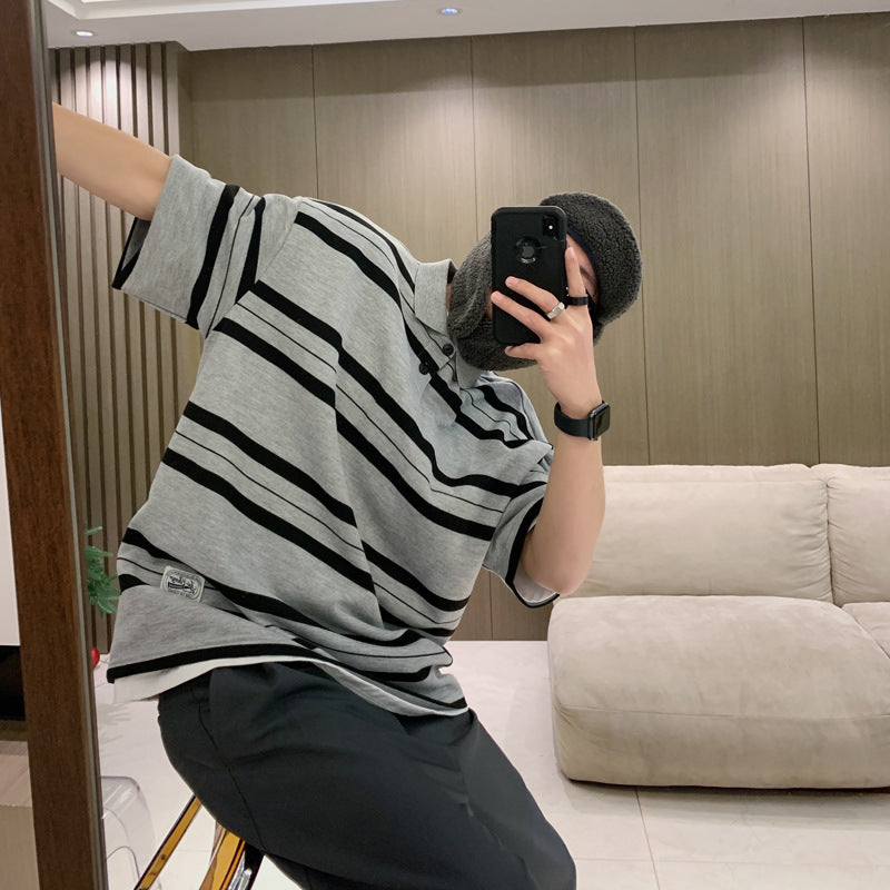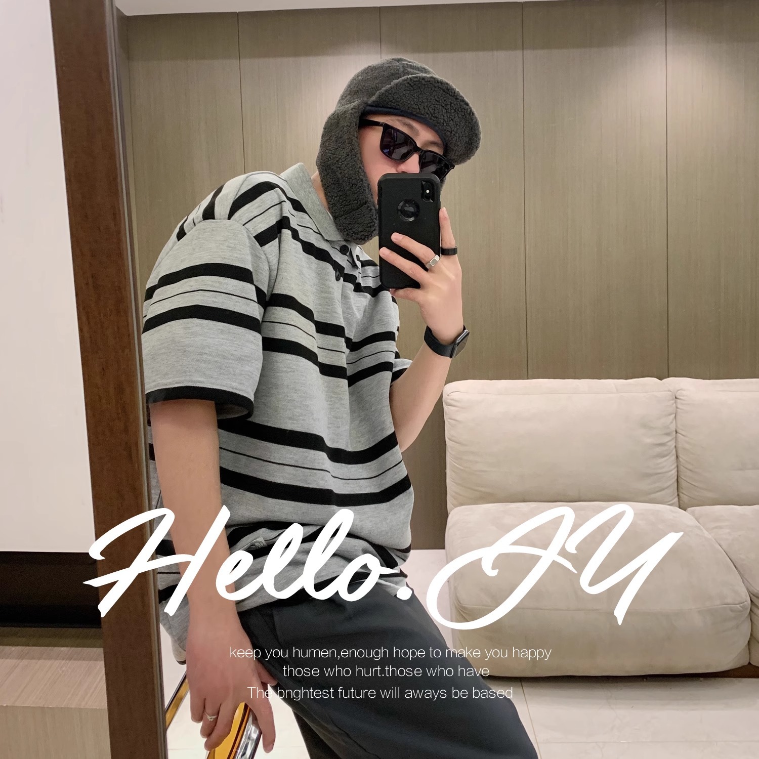 summer new men's lapel simple striped POLO shirt Korean style fashionable all-match men's short-sleeved top trend