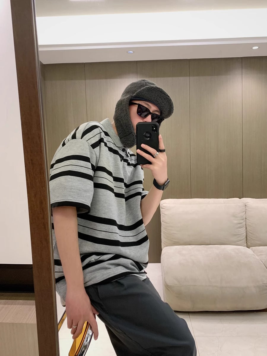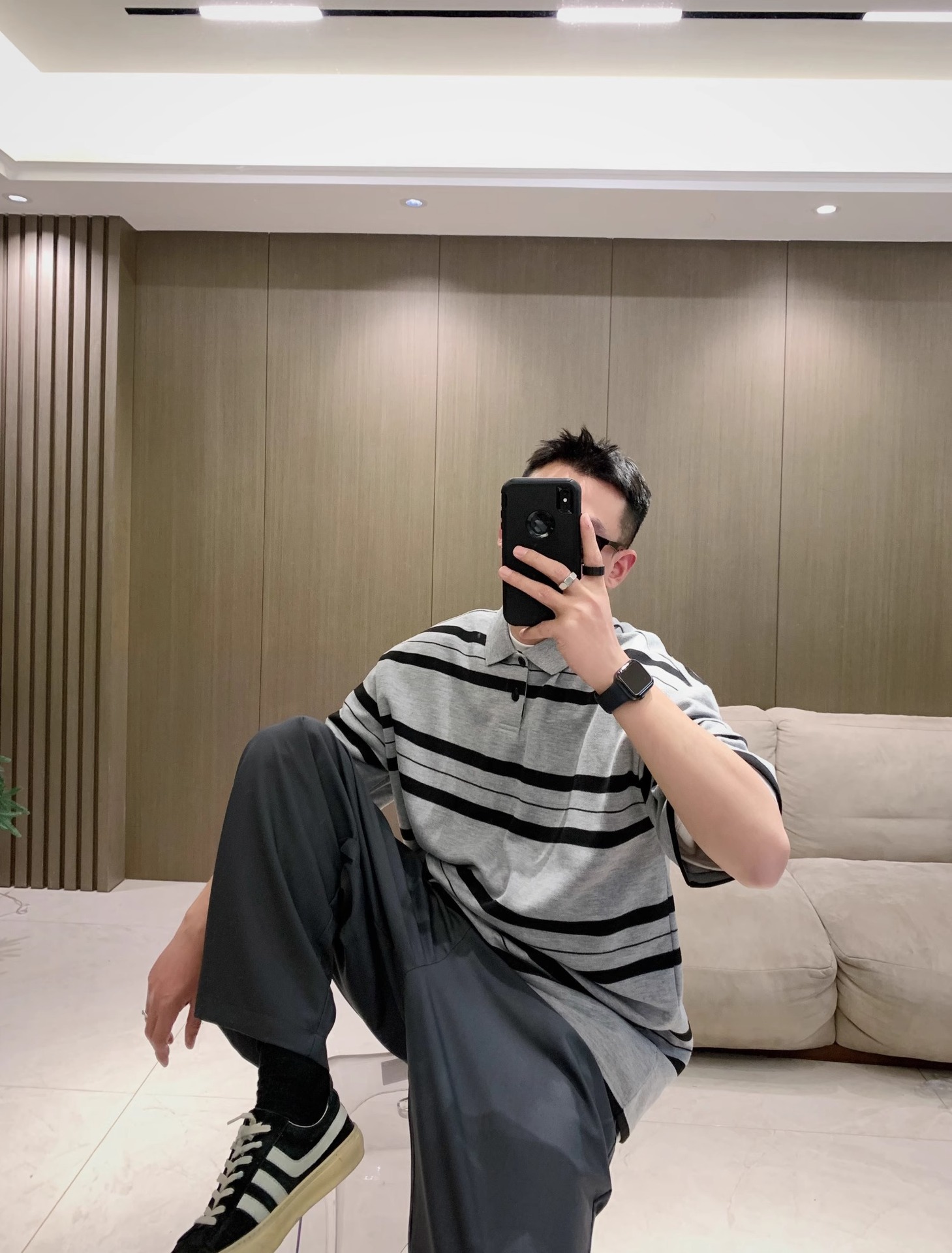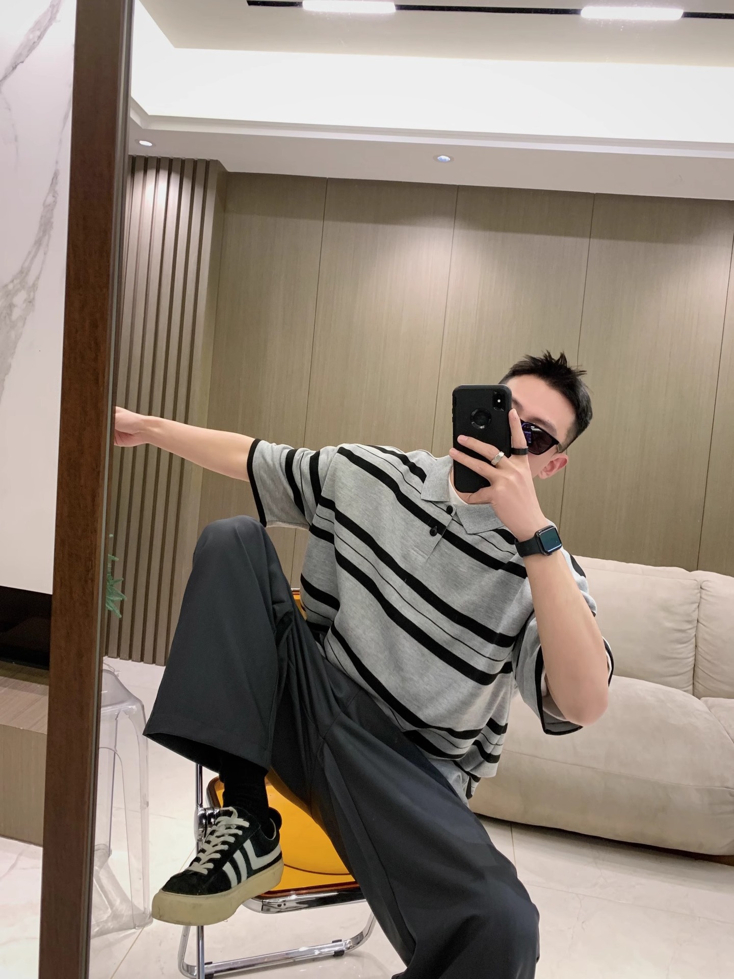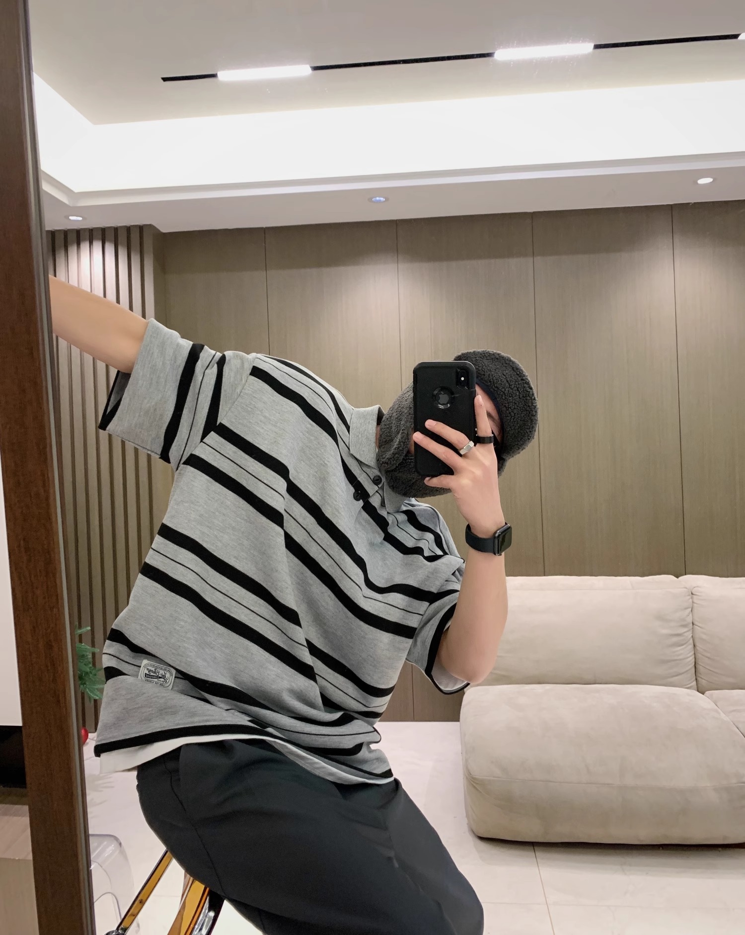 summer new men's lapel simple striped POLO shirt Korean style fashionable all-match men's short-sleeved top trend