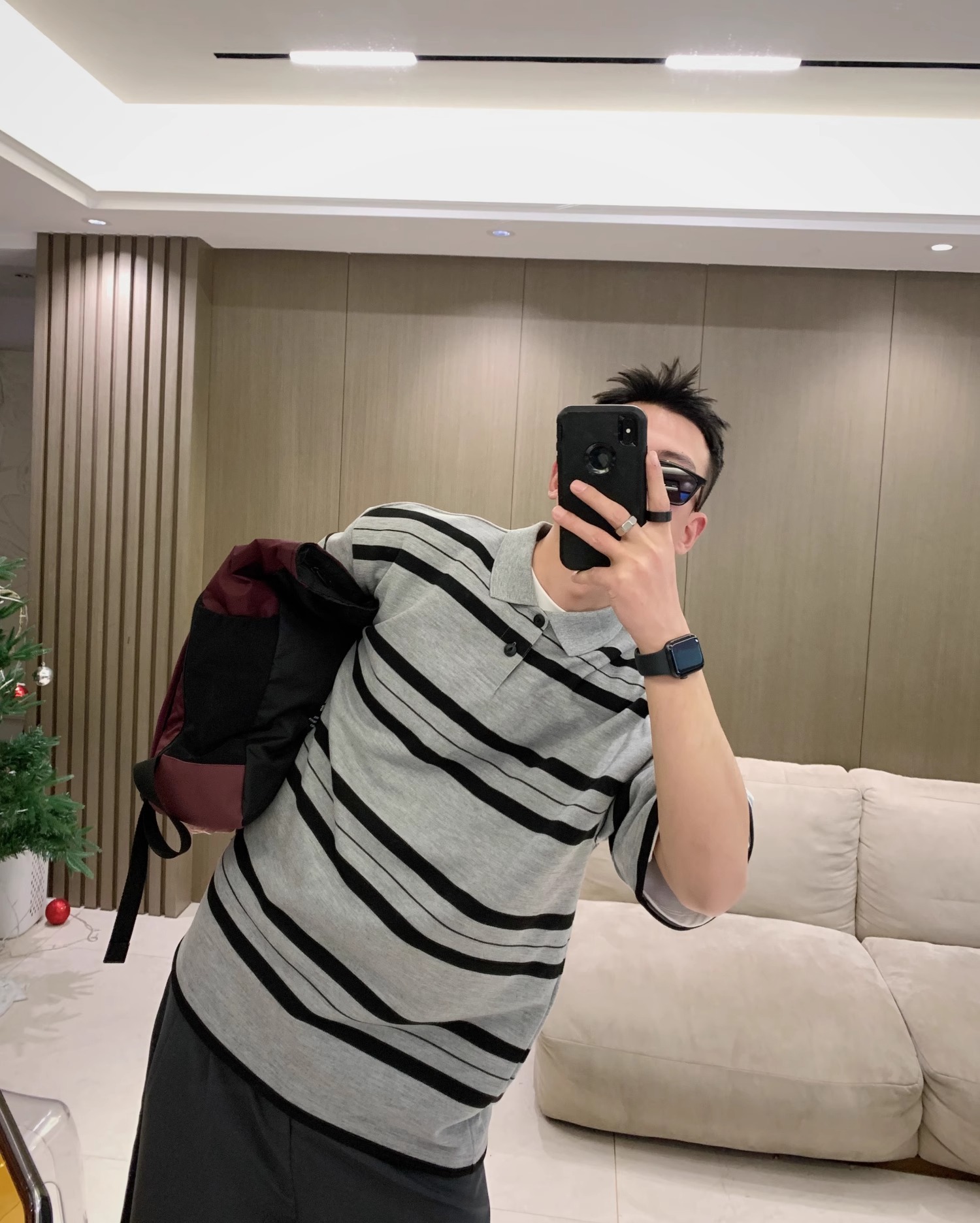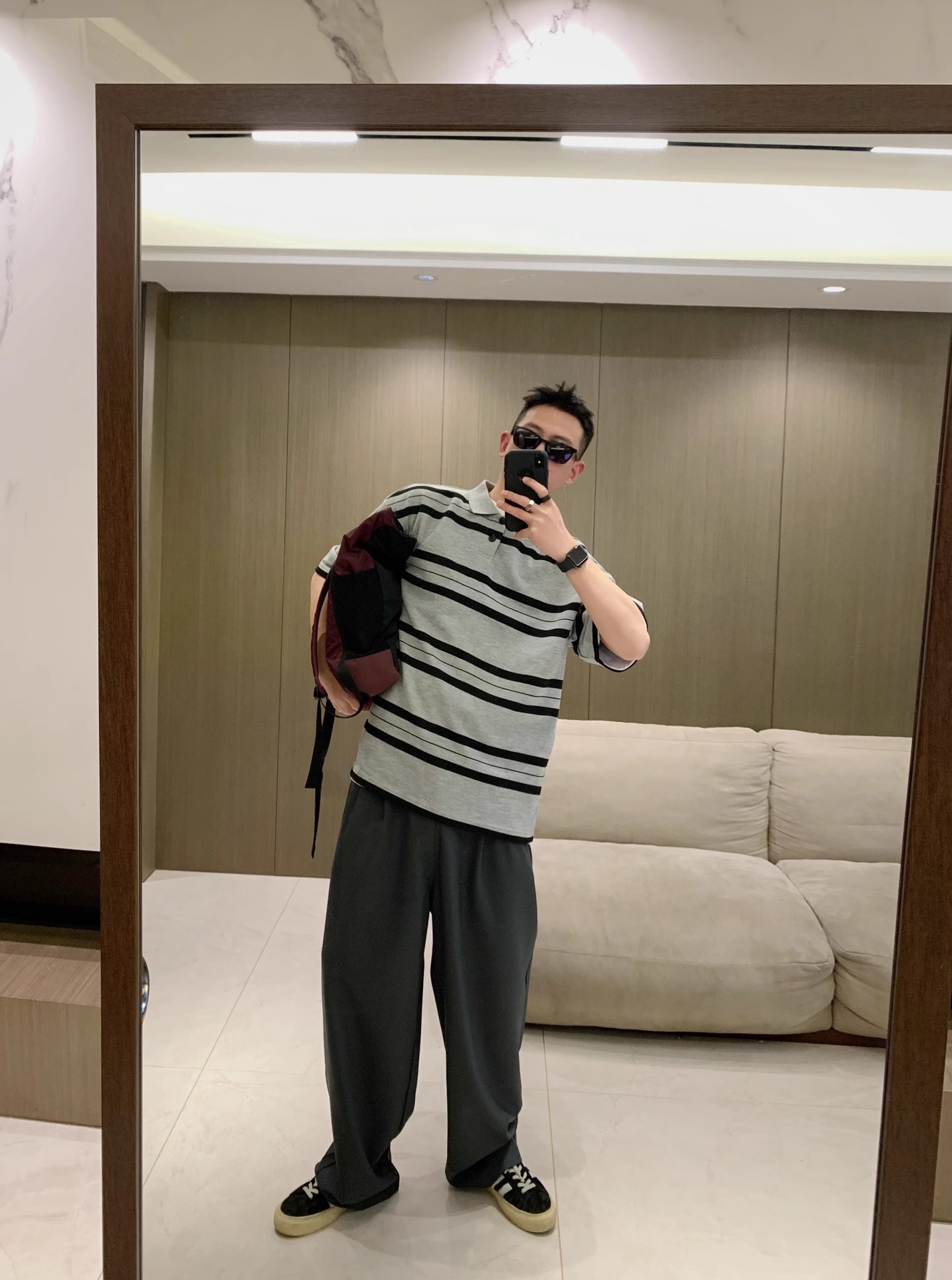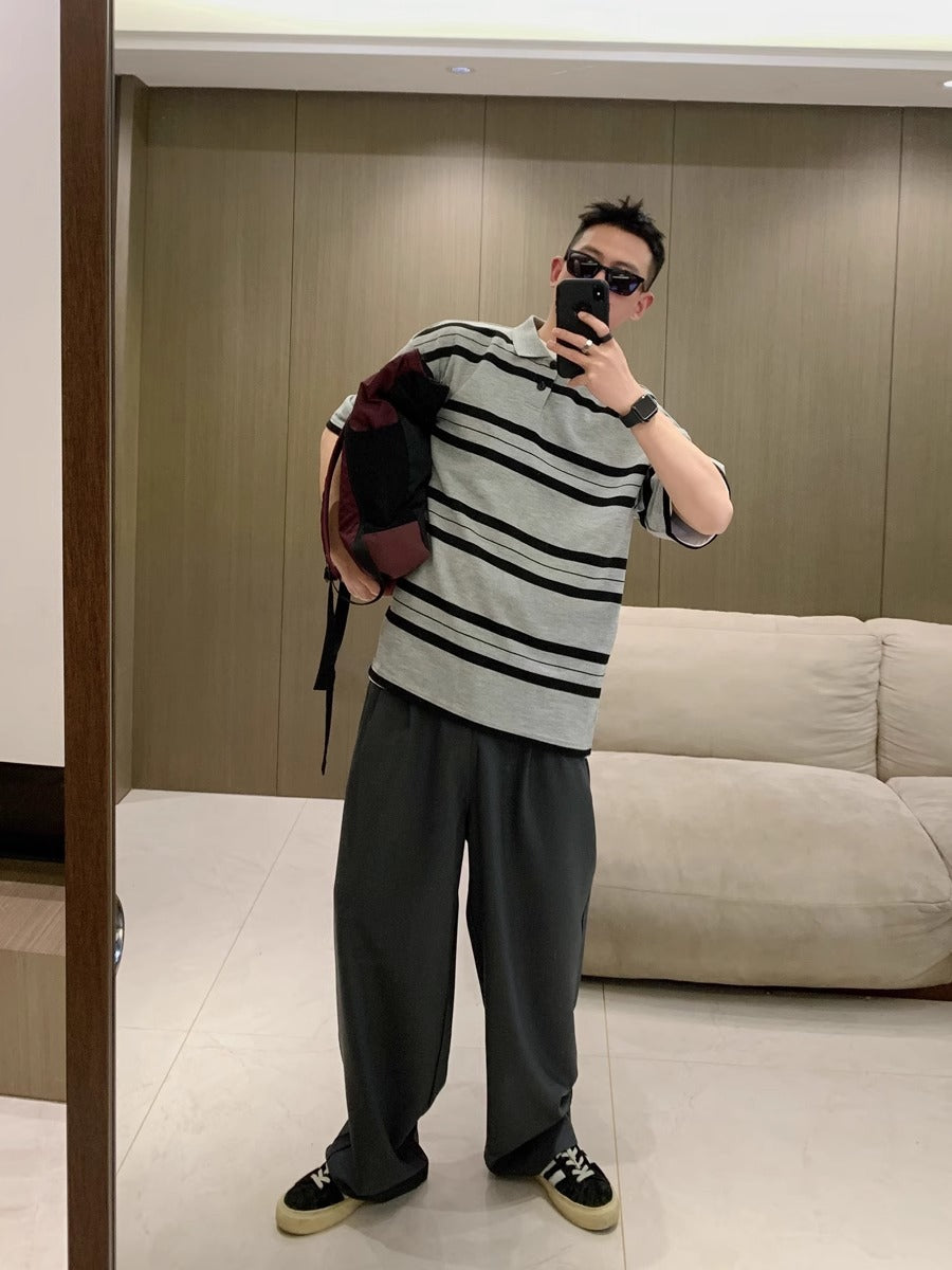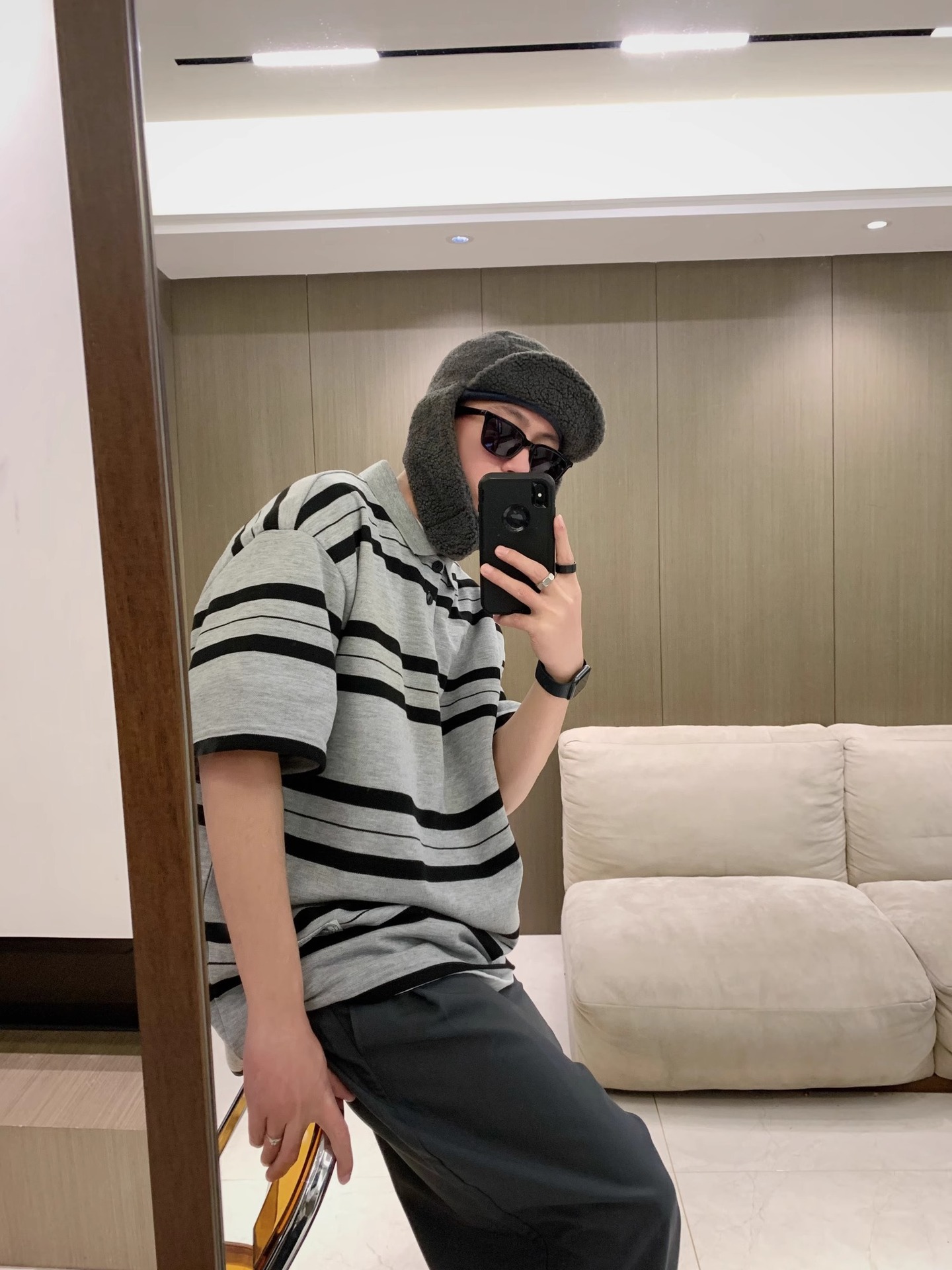 summer new men's lapel simple striped POLO shirt Korean style fashionable all-match men's short-sleeved top trend