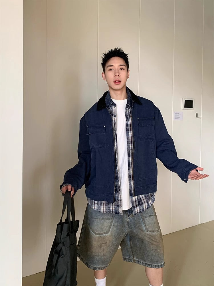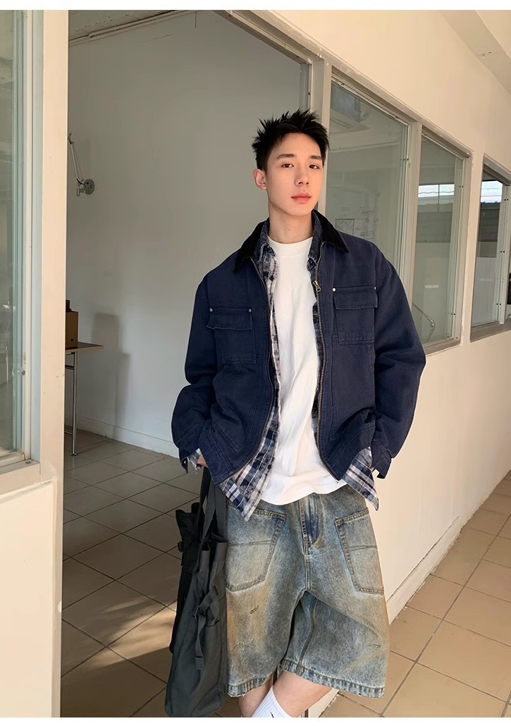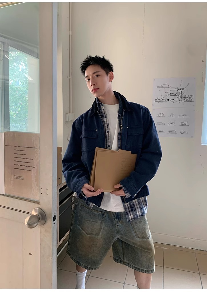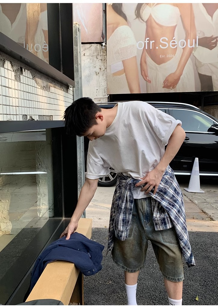 American retro high street old washed wasteland style pocket design denim shorts shorts men's summer new