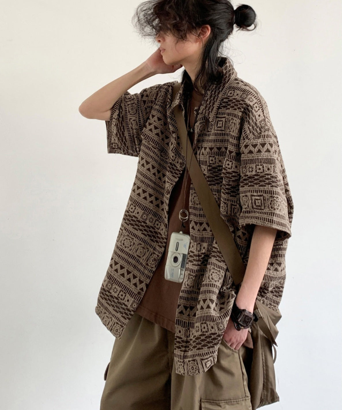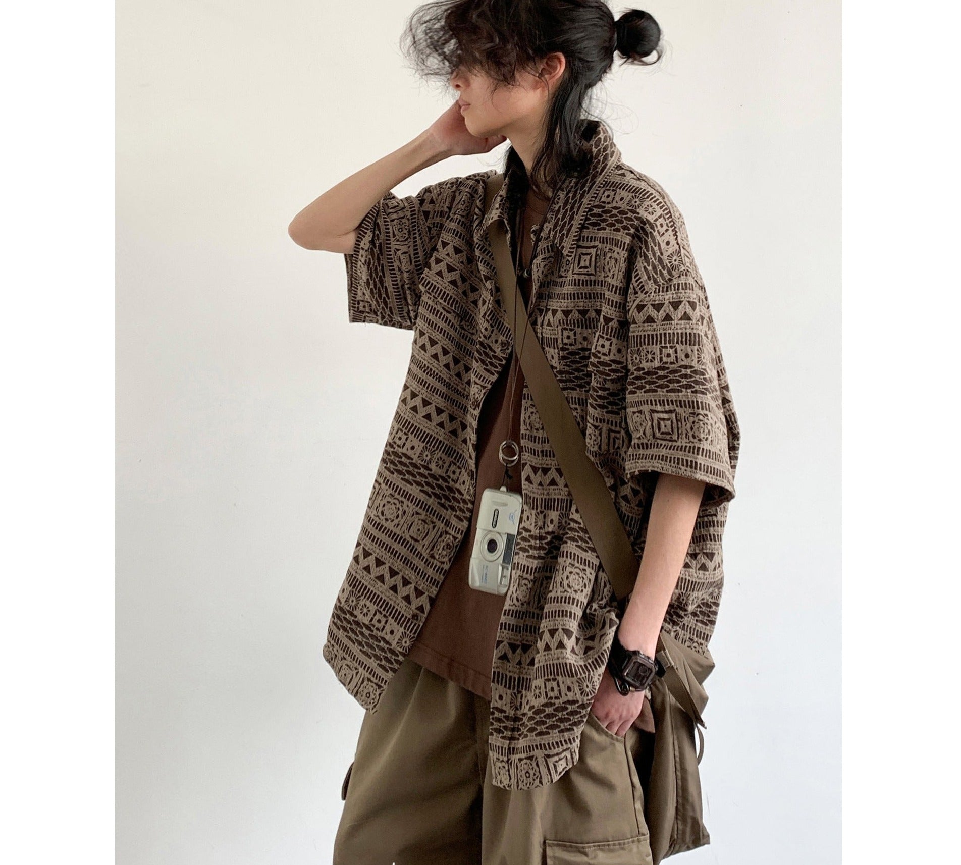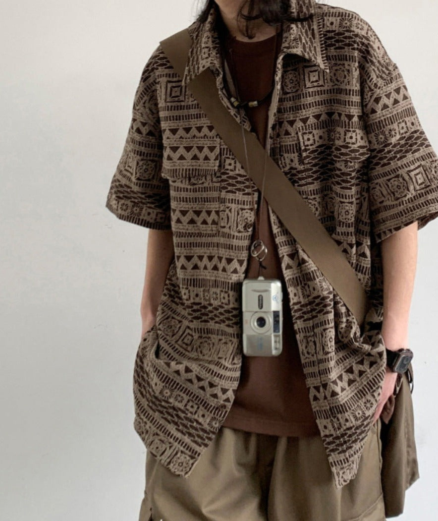 Japanese retro short-sleeved work shirt summer new vintage casual loose trendy ethnic style shirt jacket