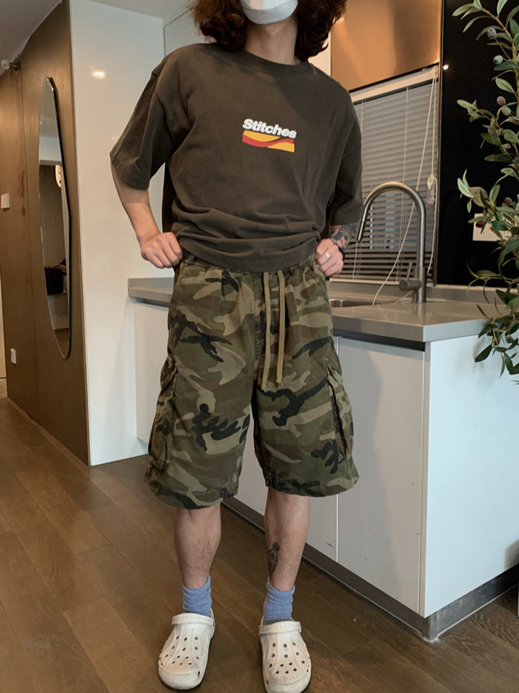 Retro workwear camouflage shorts men summer new American style trendy shorts men street couple shorts