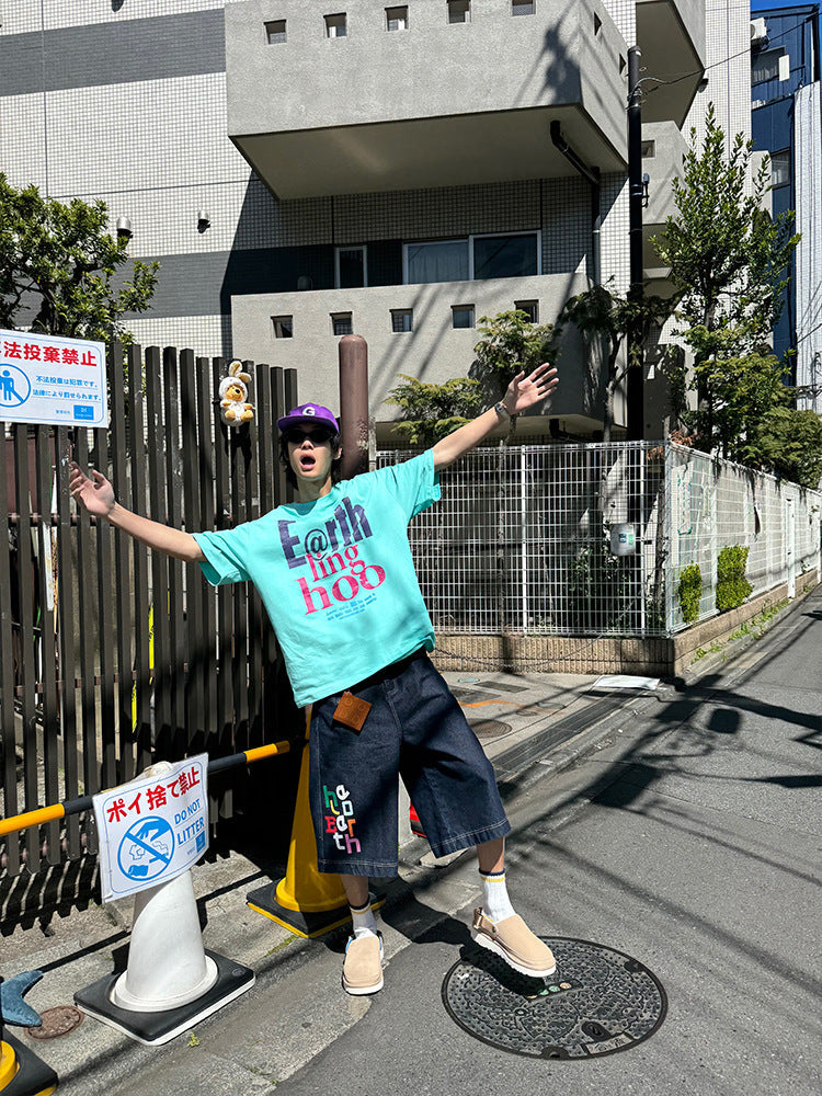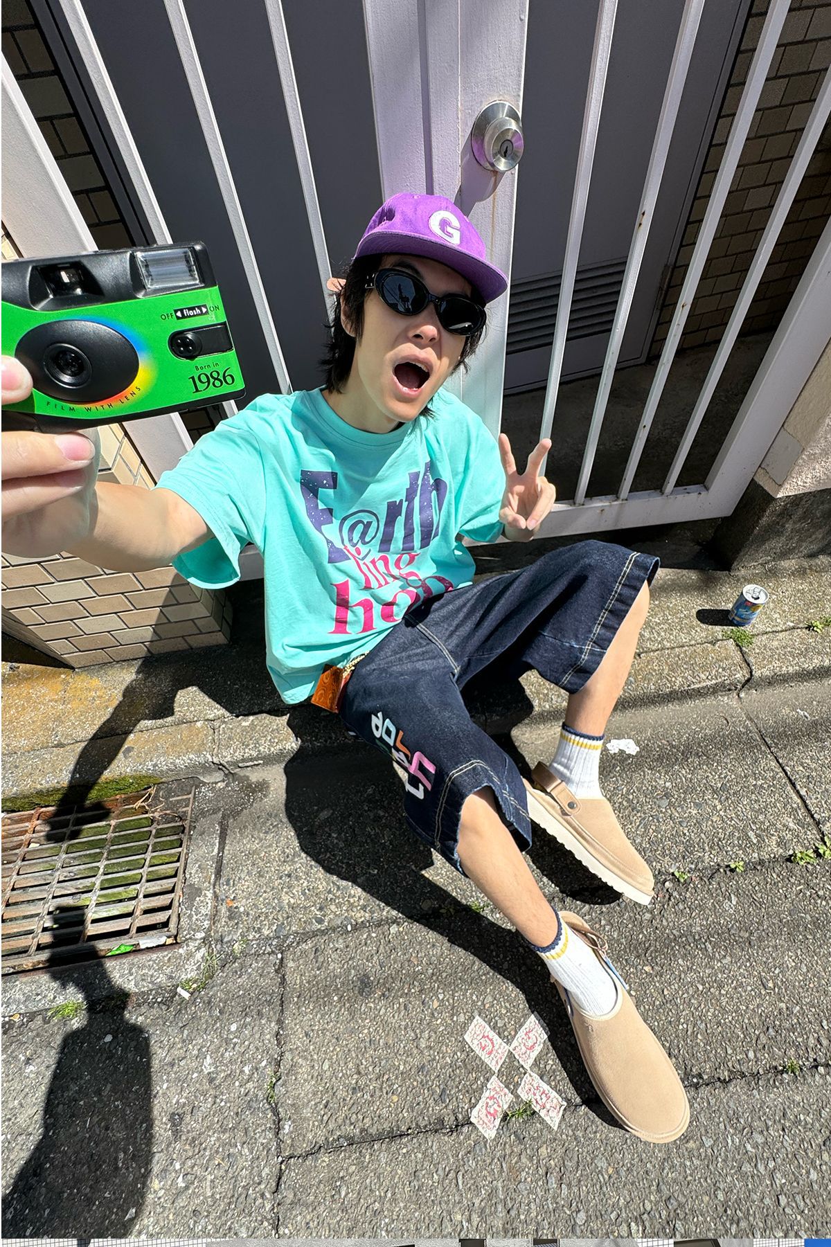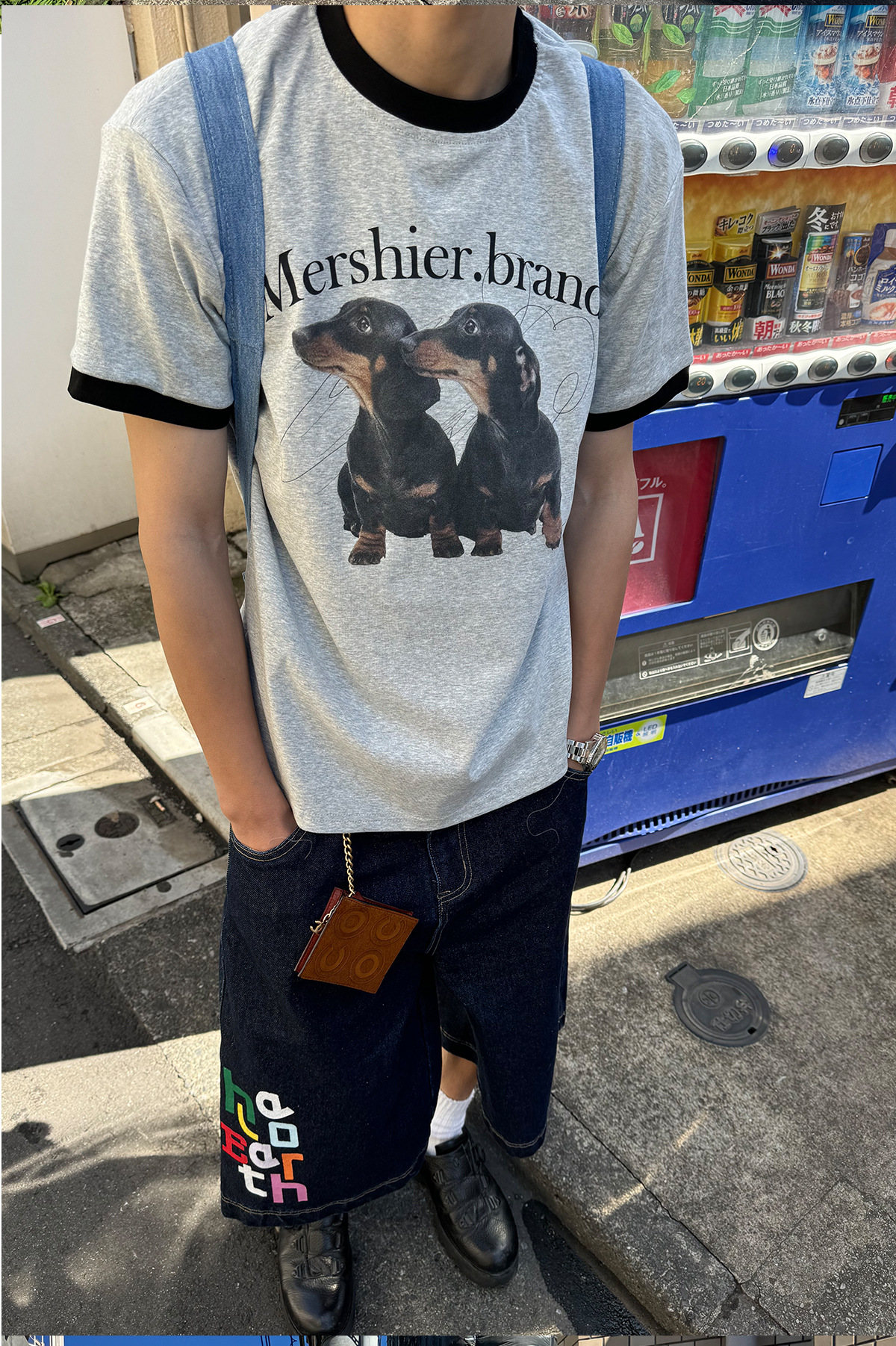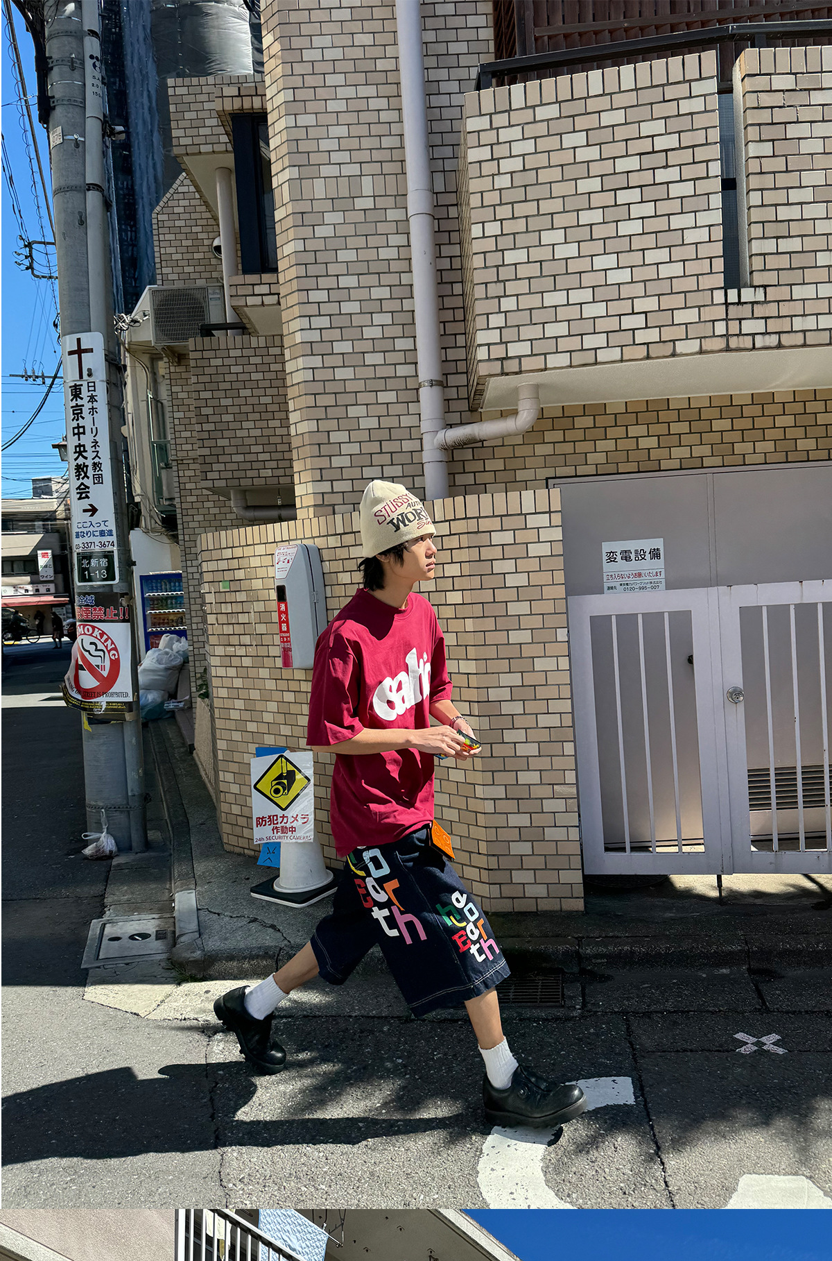Colored printed washed seven-point denim shorts men's summer new straight loose versatile wide-leg pants