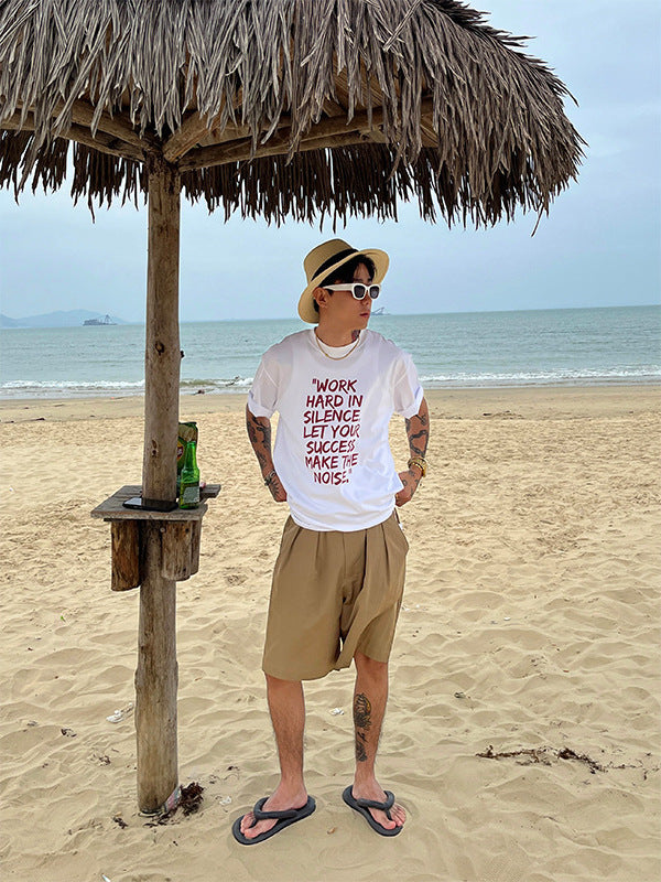Summer new double pleat design shorts men's loose shorts trendy casual all-match American style ins pants