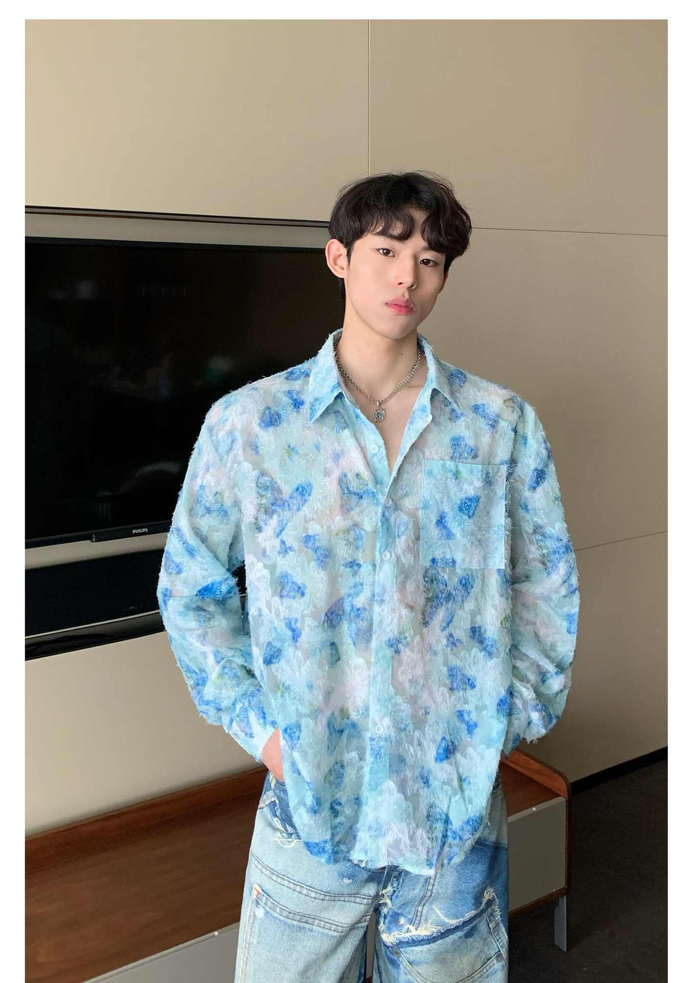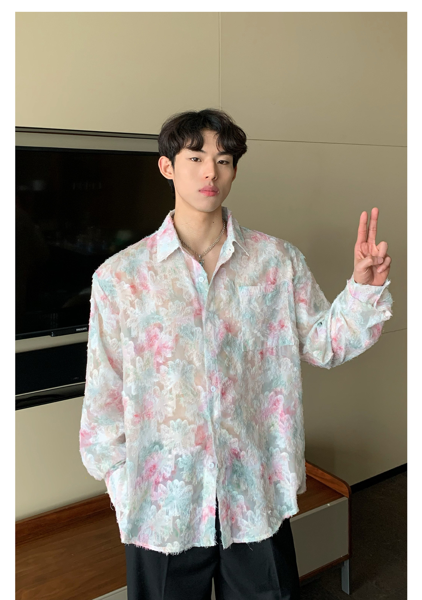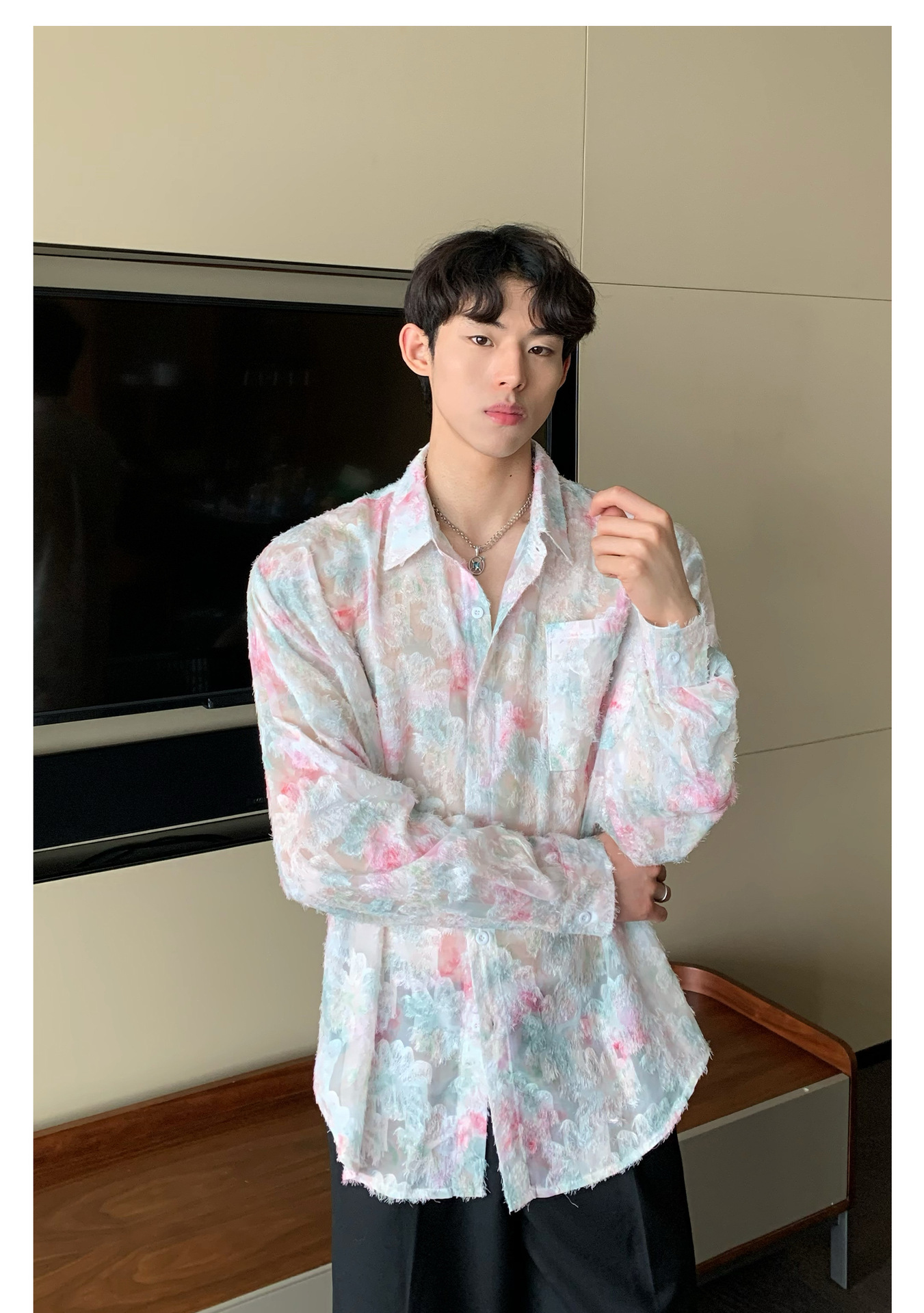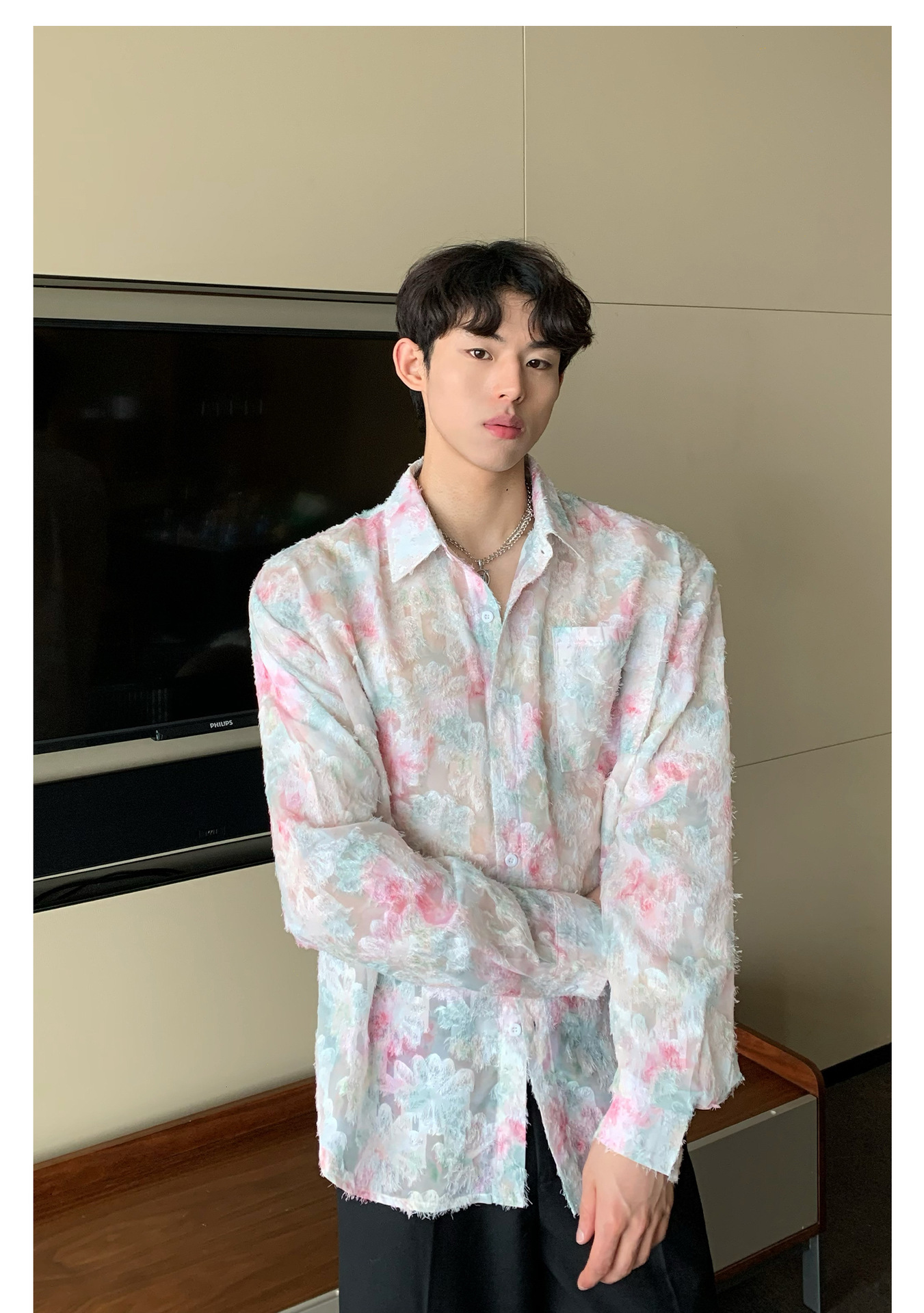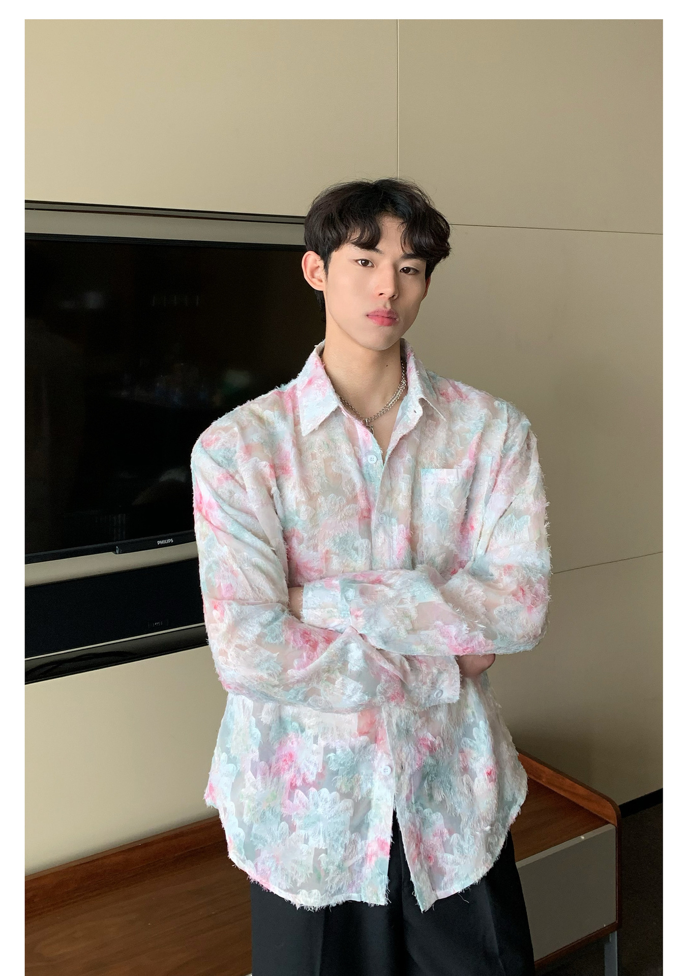 Small design floral shirt men's summer new style trend casual loose long-sleeved sun protection jacket