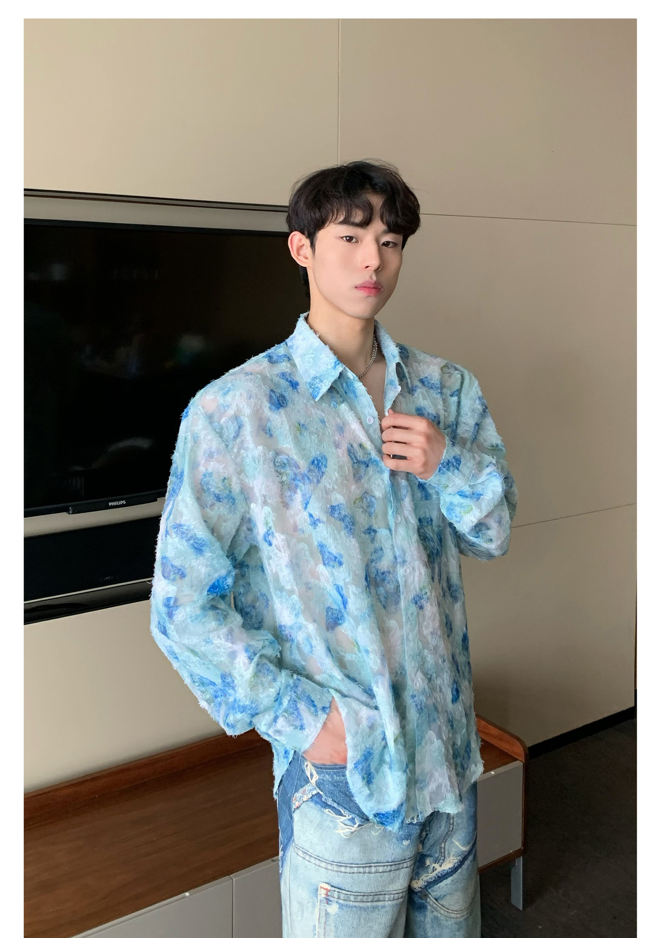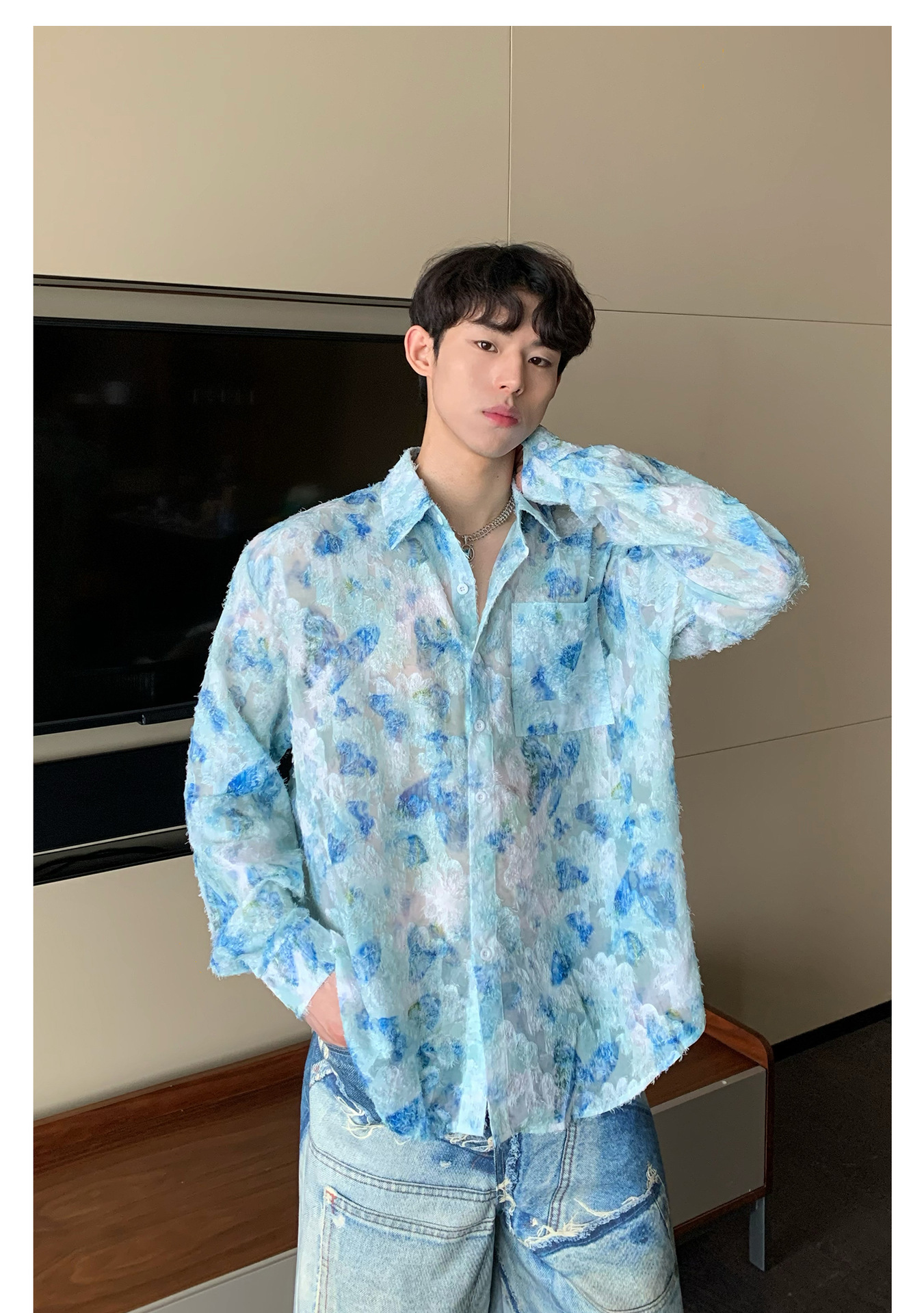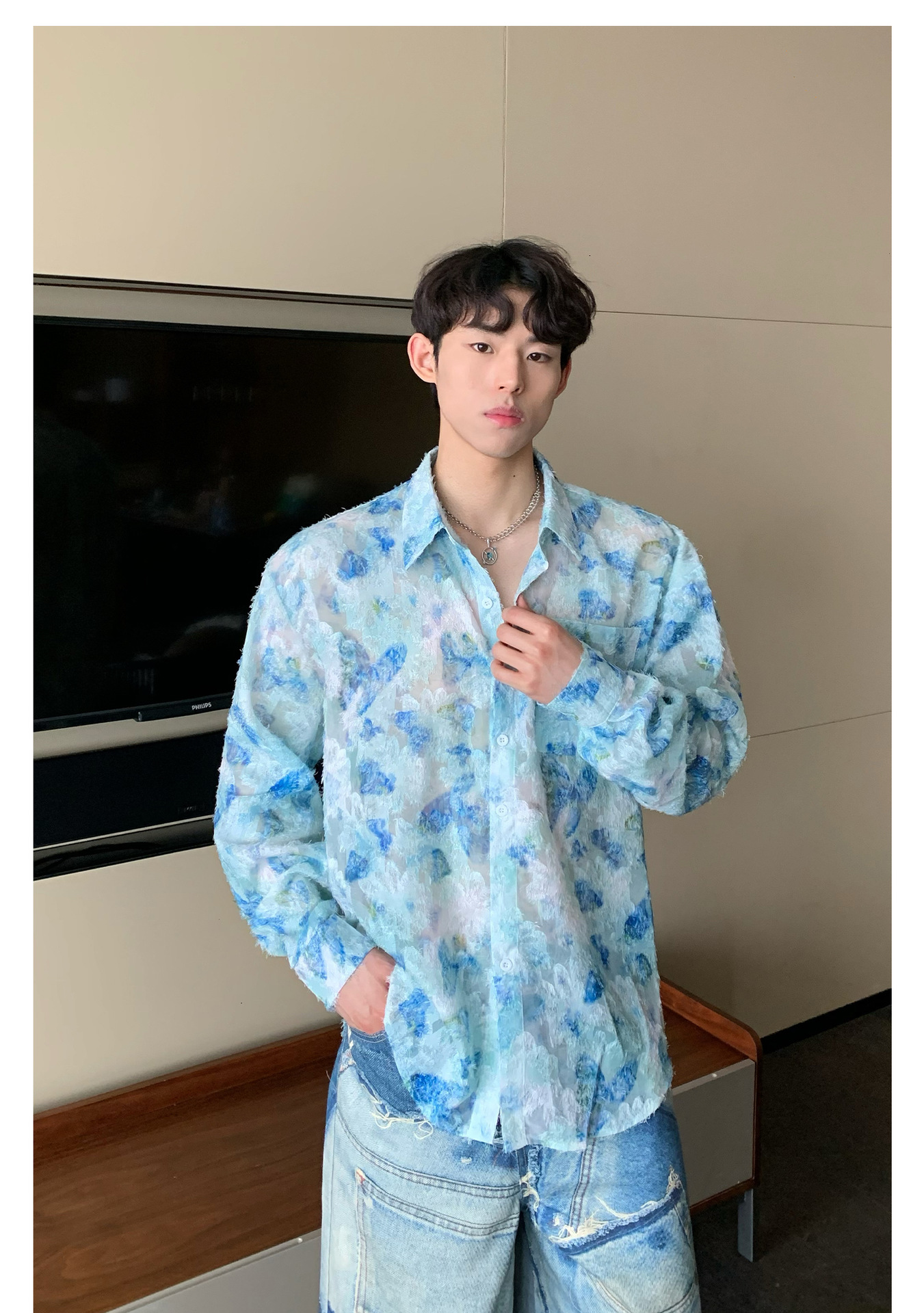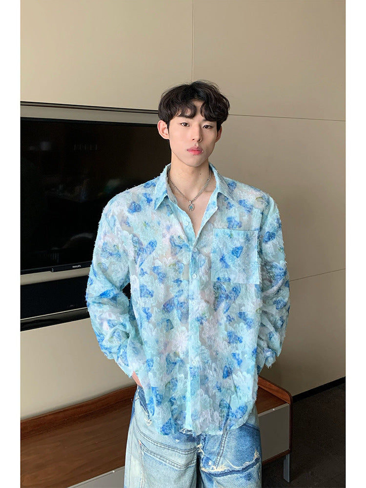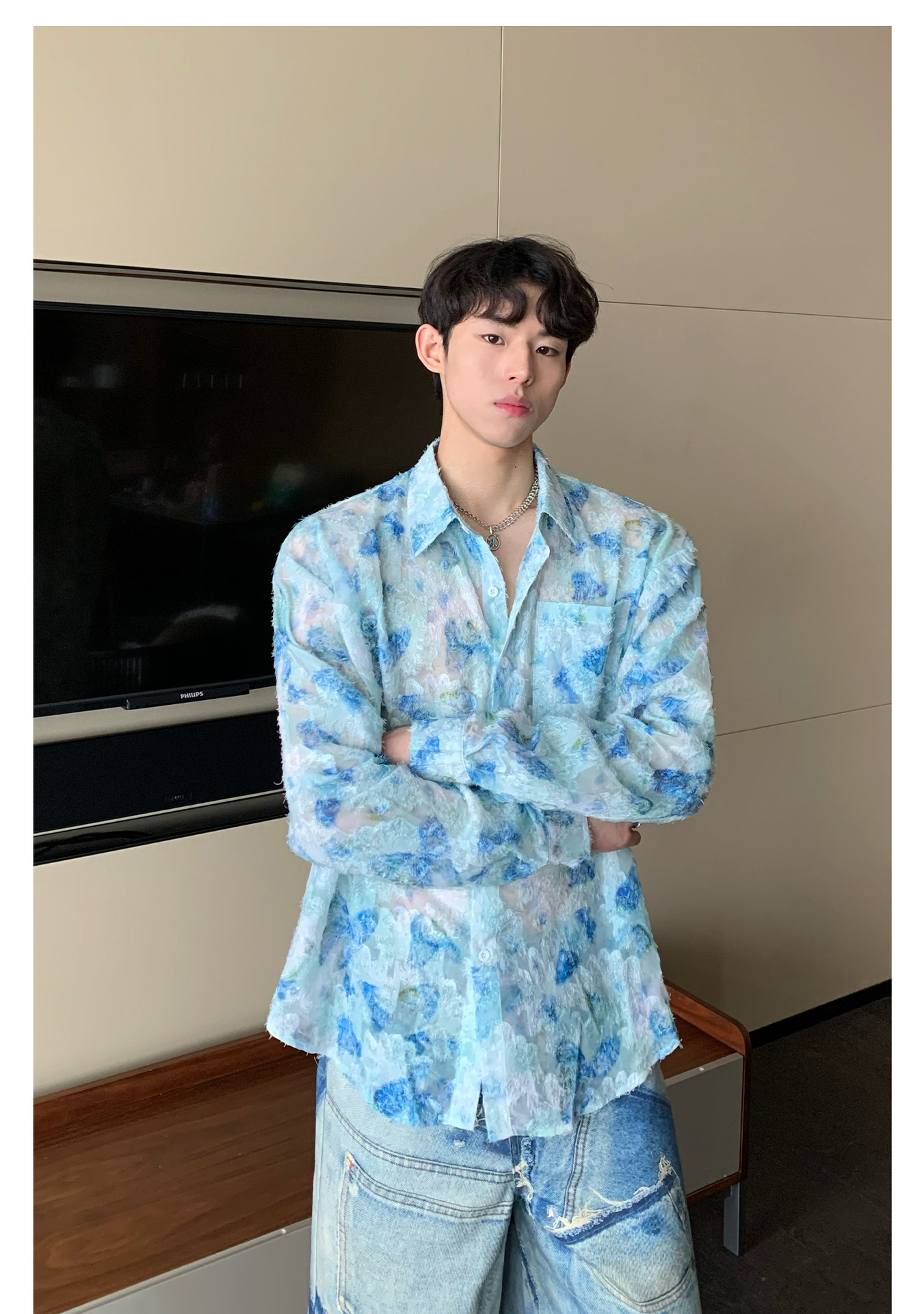 Small design floral shirt men's summer new style trend casual loose long-sleeved sun protection jacket