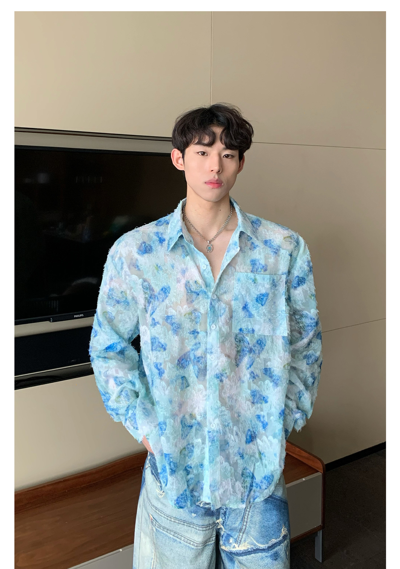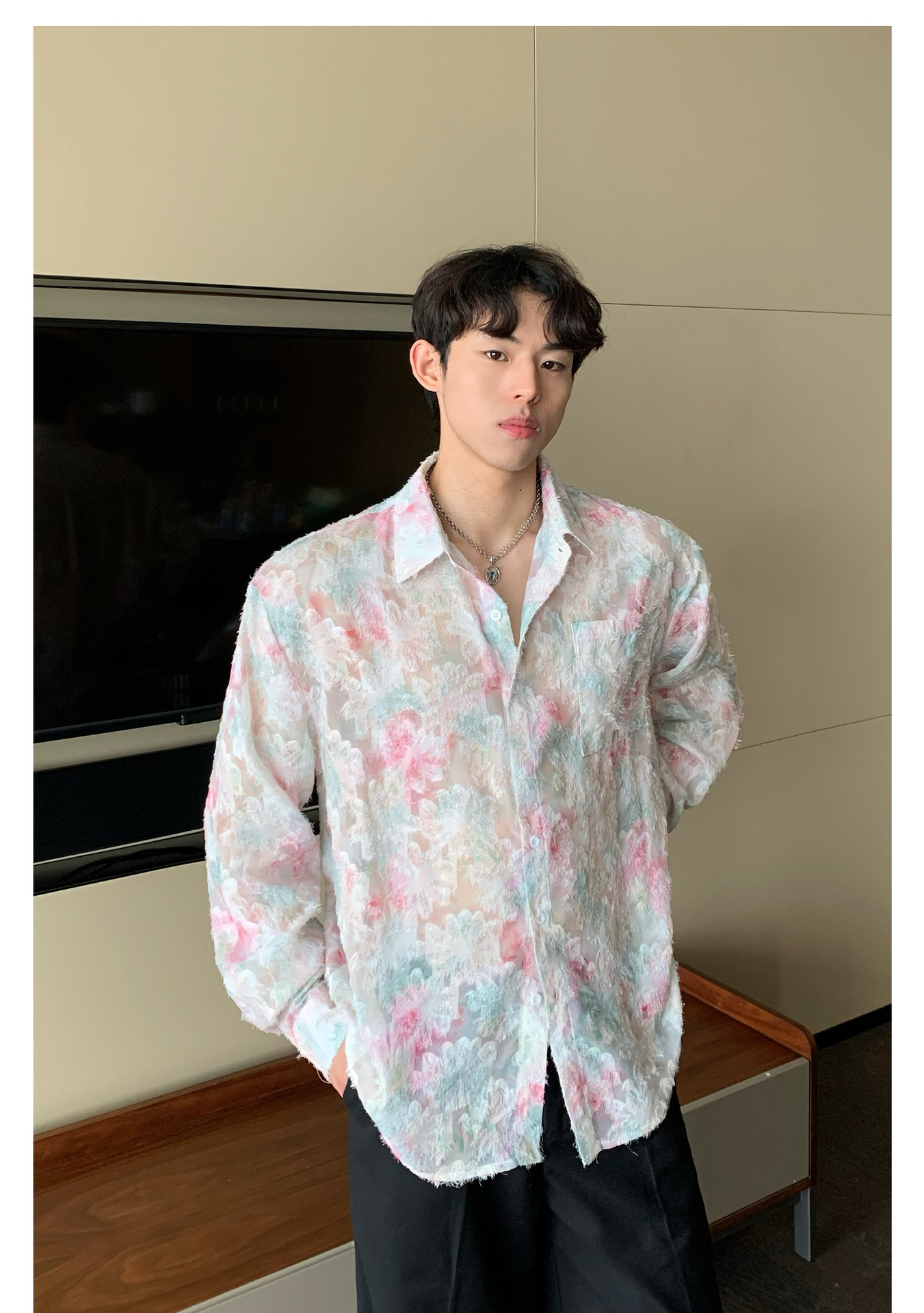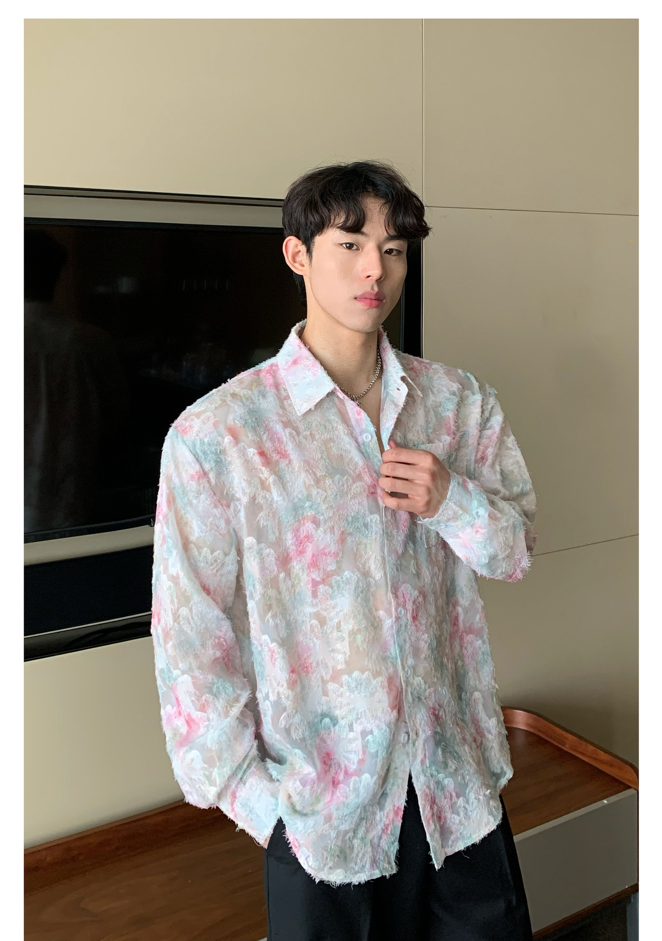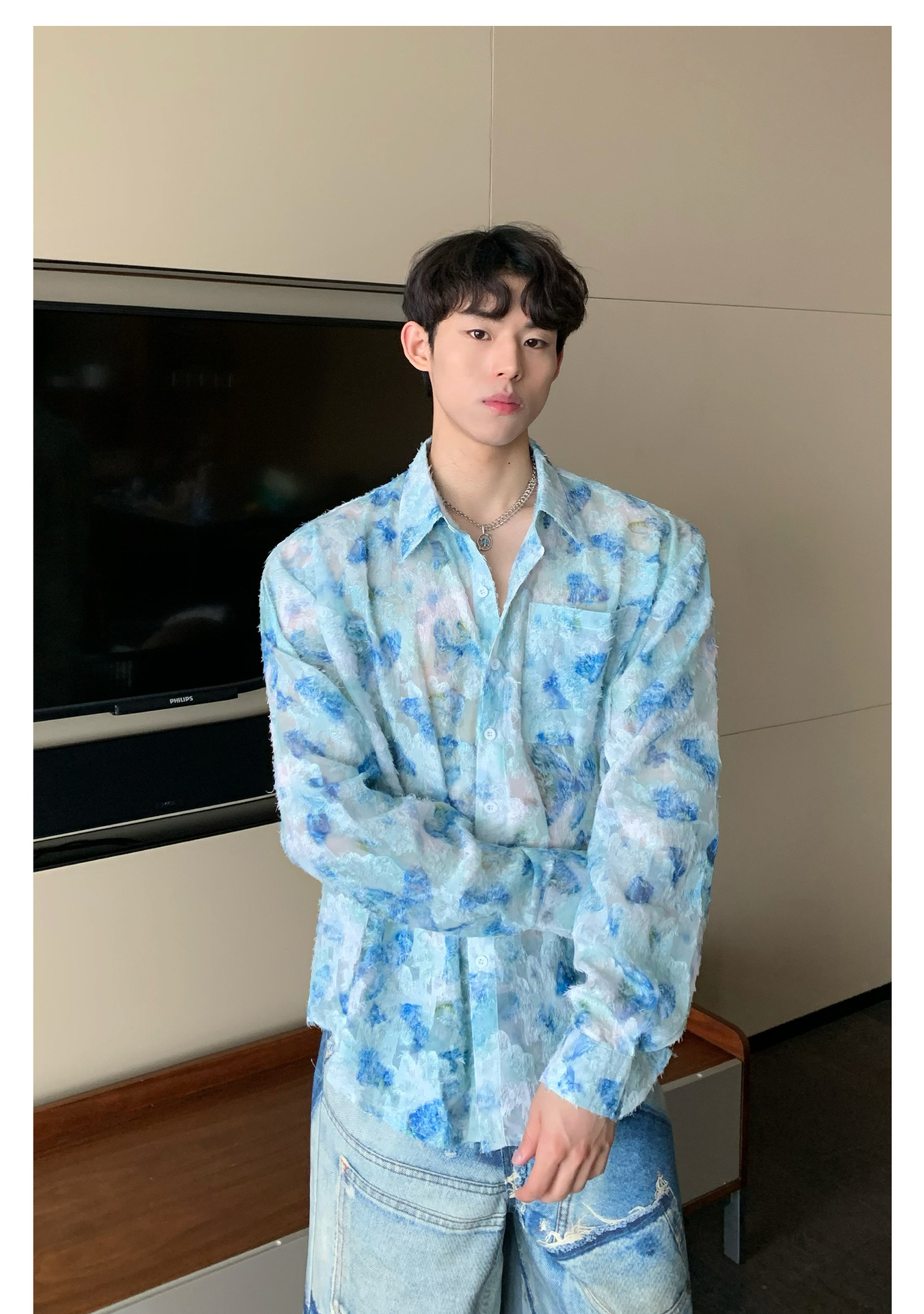 Small design floral shirt men's summer new style trend casual loose long-sleeved sun protection jacket