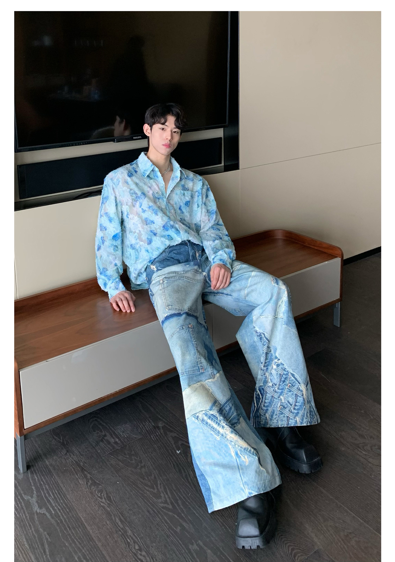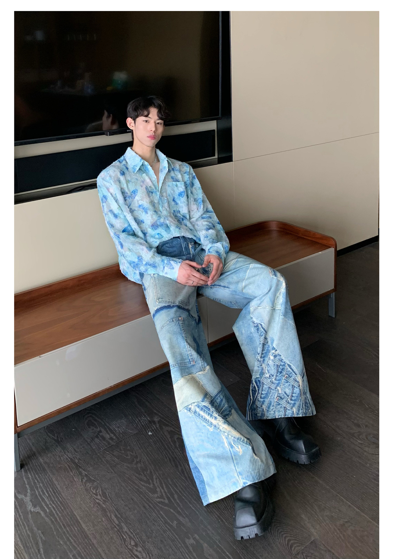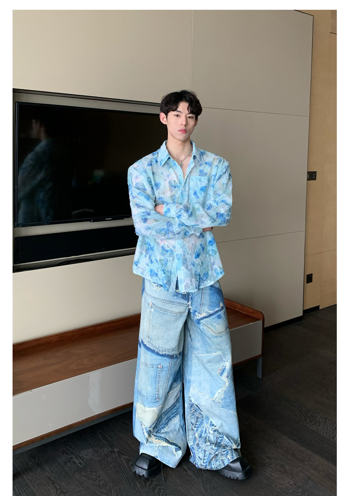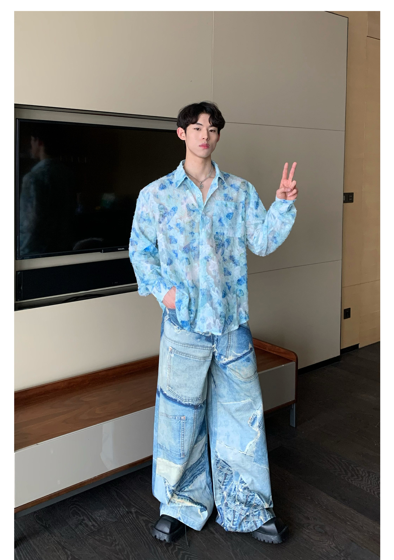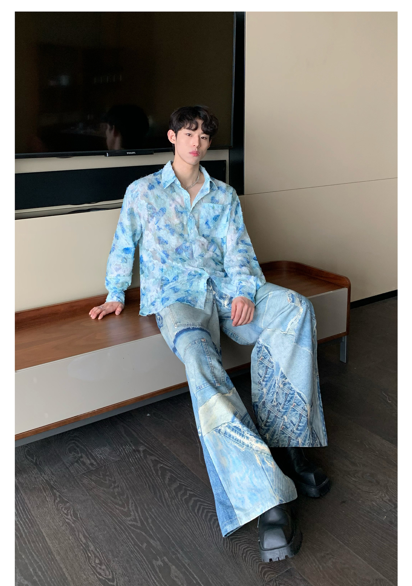 Small design floral shirt men's summer new style trend casual loose long-sleeved sun protection jacket