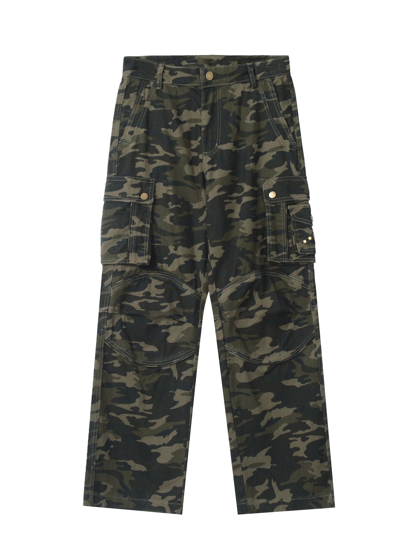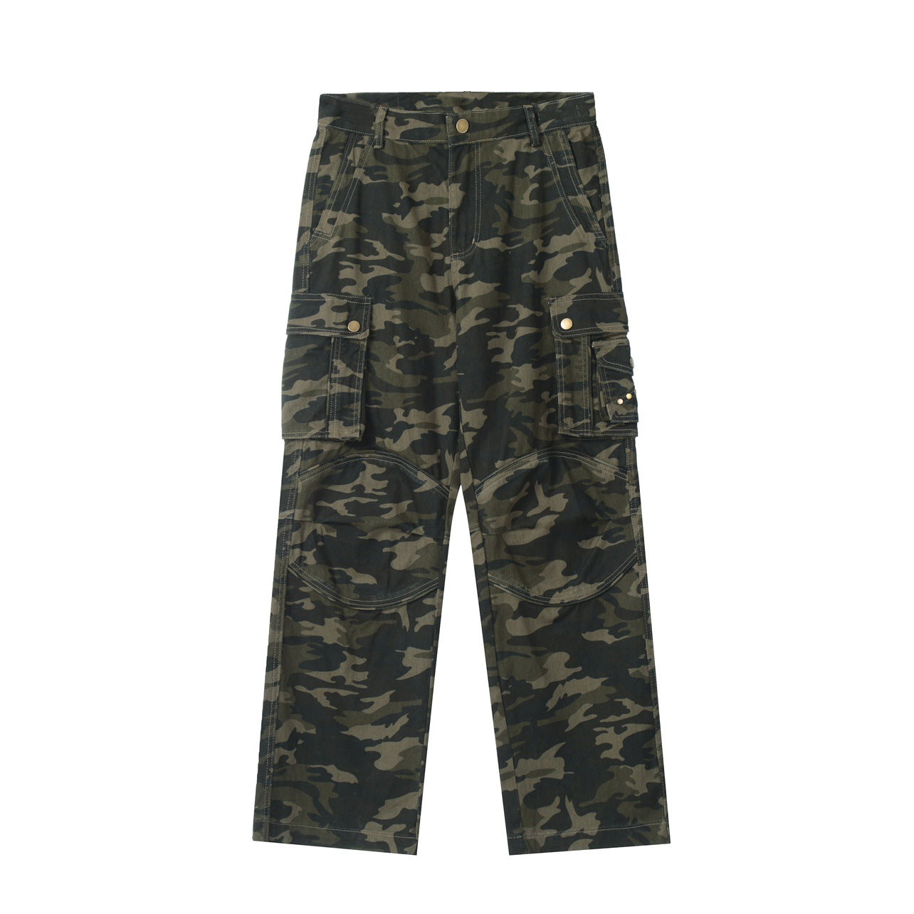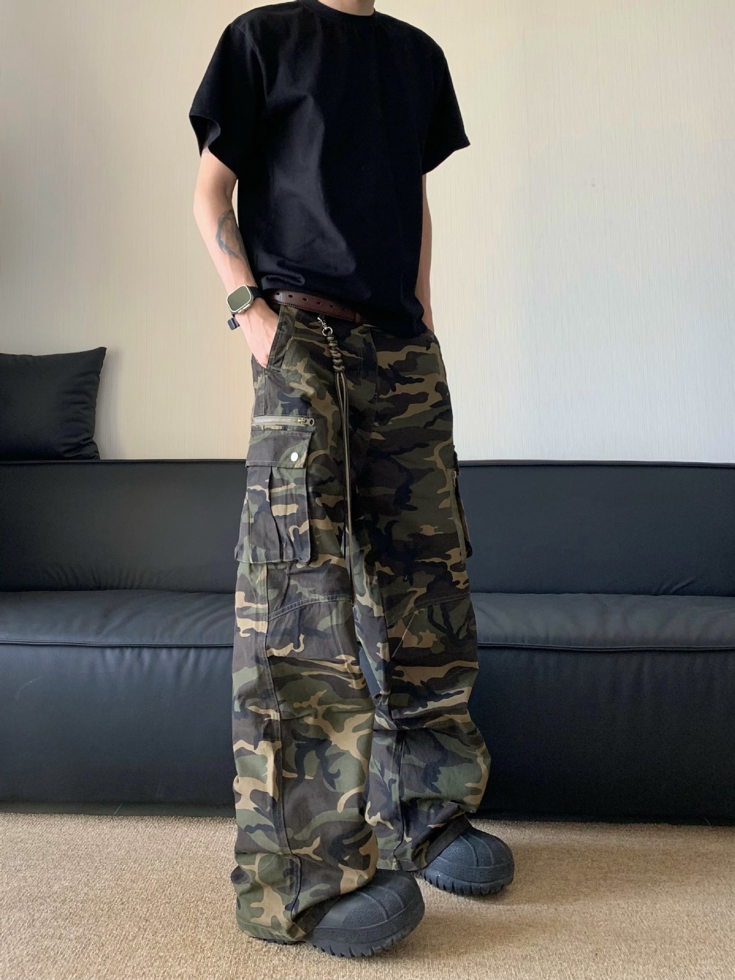 Street high street loose straight large pocket overalls men's summer new high waist camouflage hiphop casual pants
