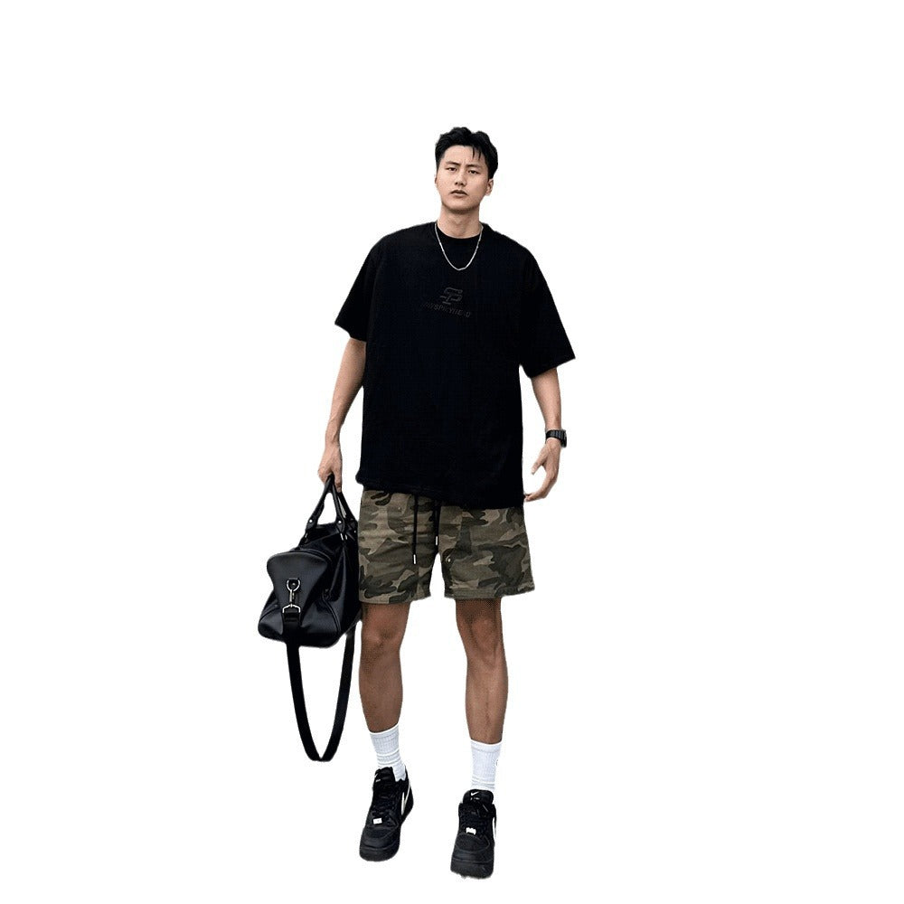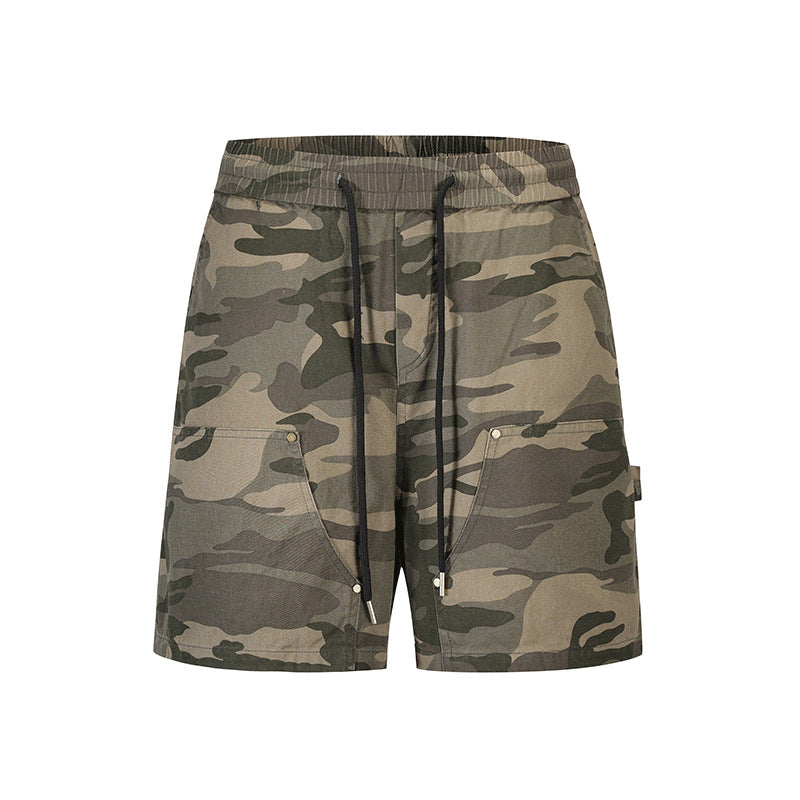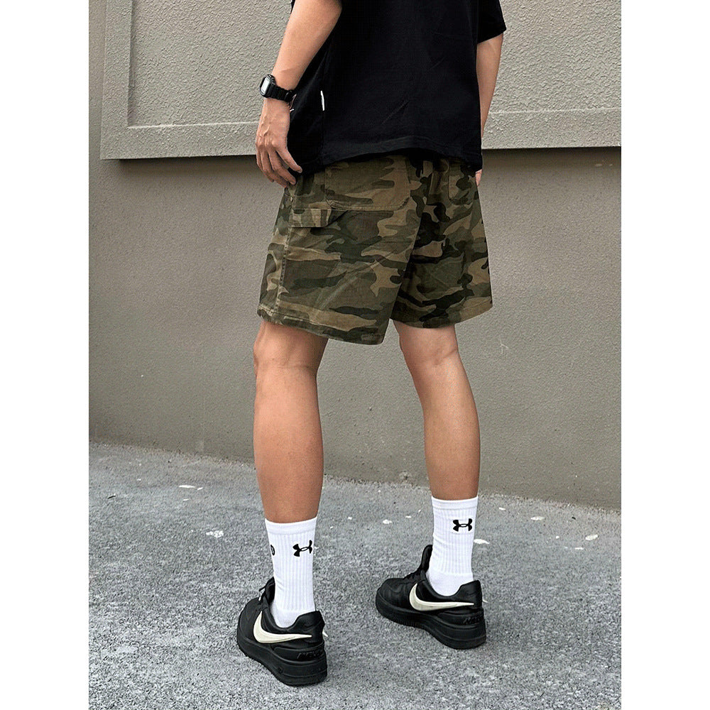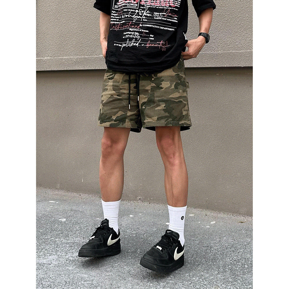 American retro camouflage work shorts men's summer new high street fashion loose straight casual drawstring shorts