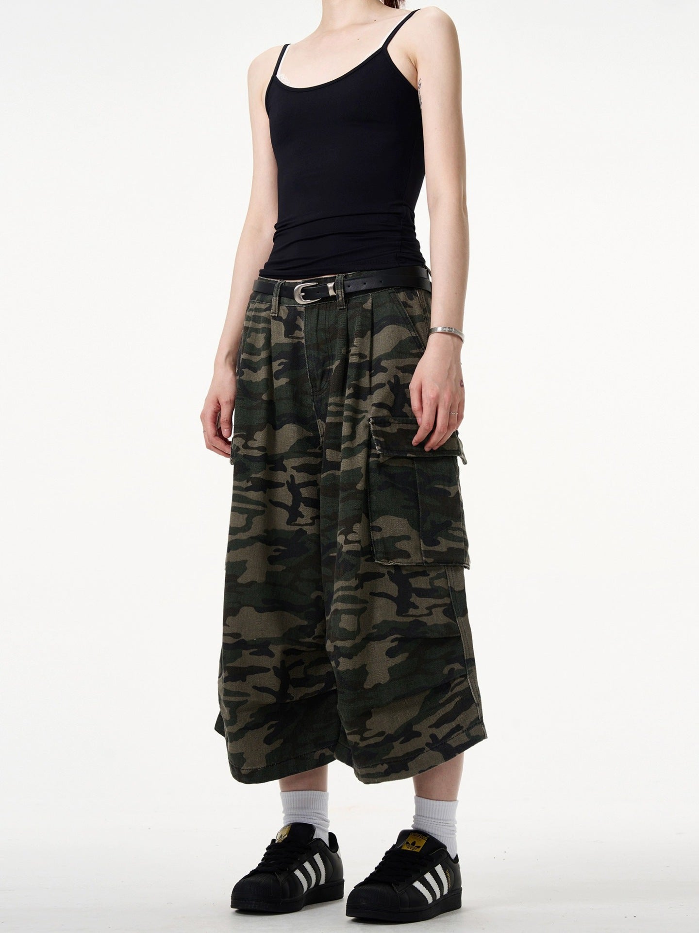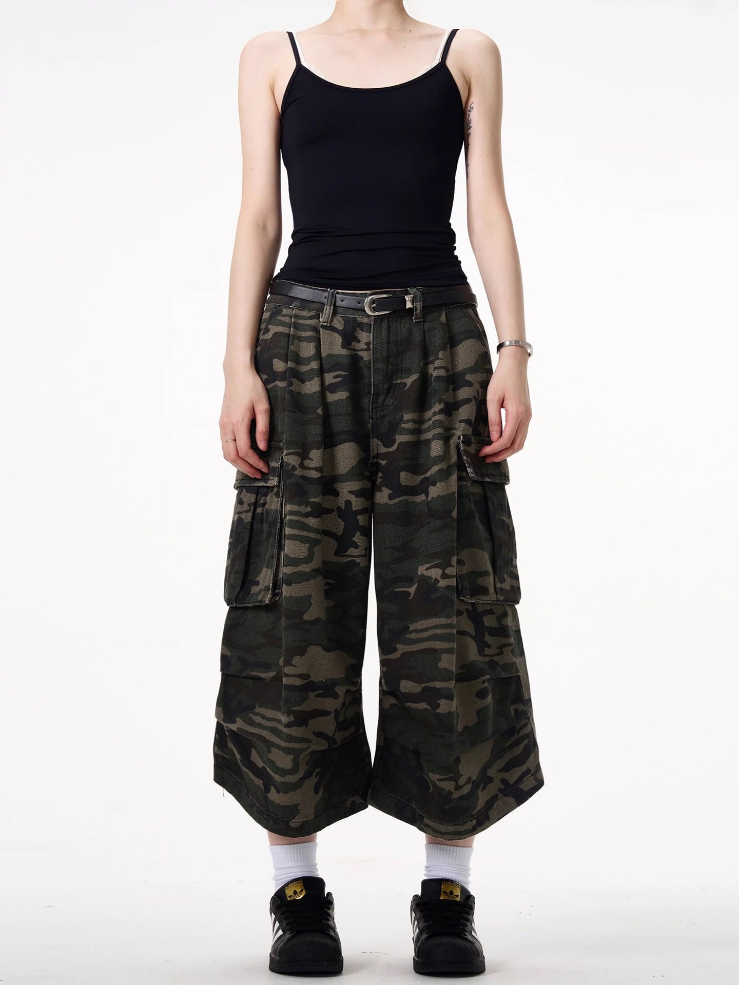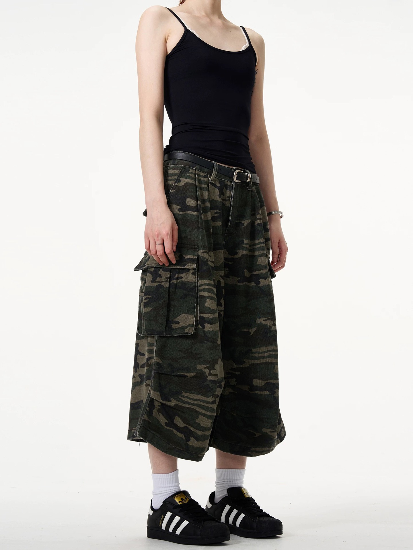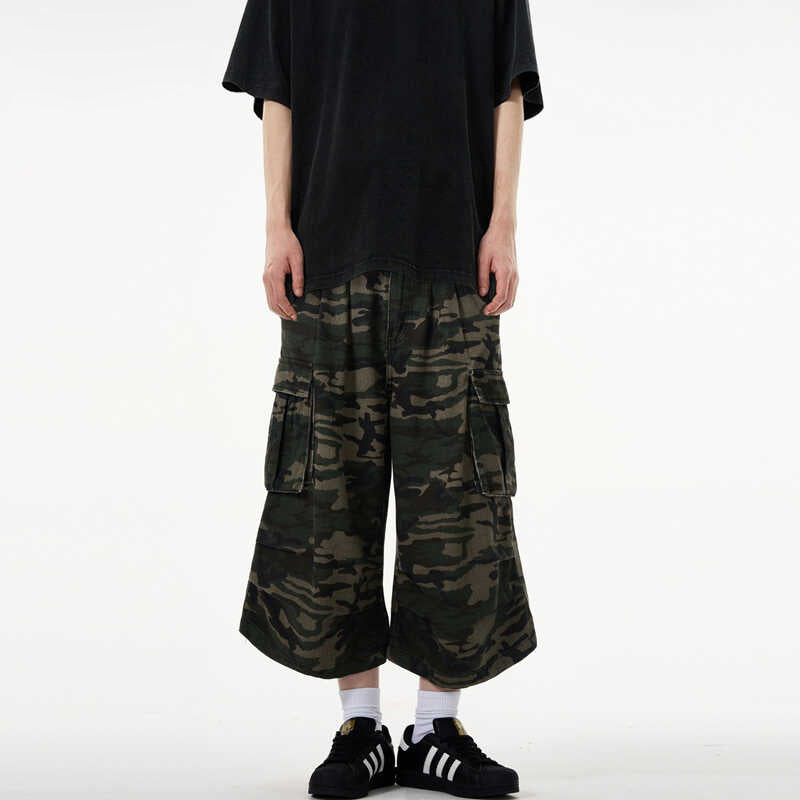 American retro camouflage workwear jeans men's summer new trendy straight loose wide-leg cropped pants