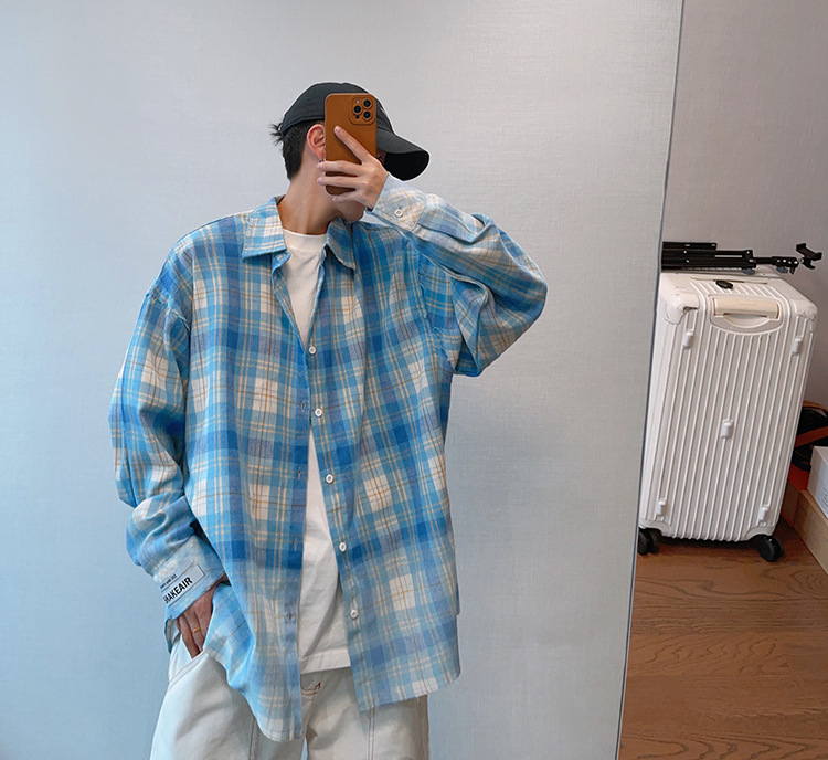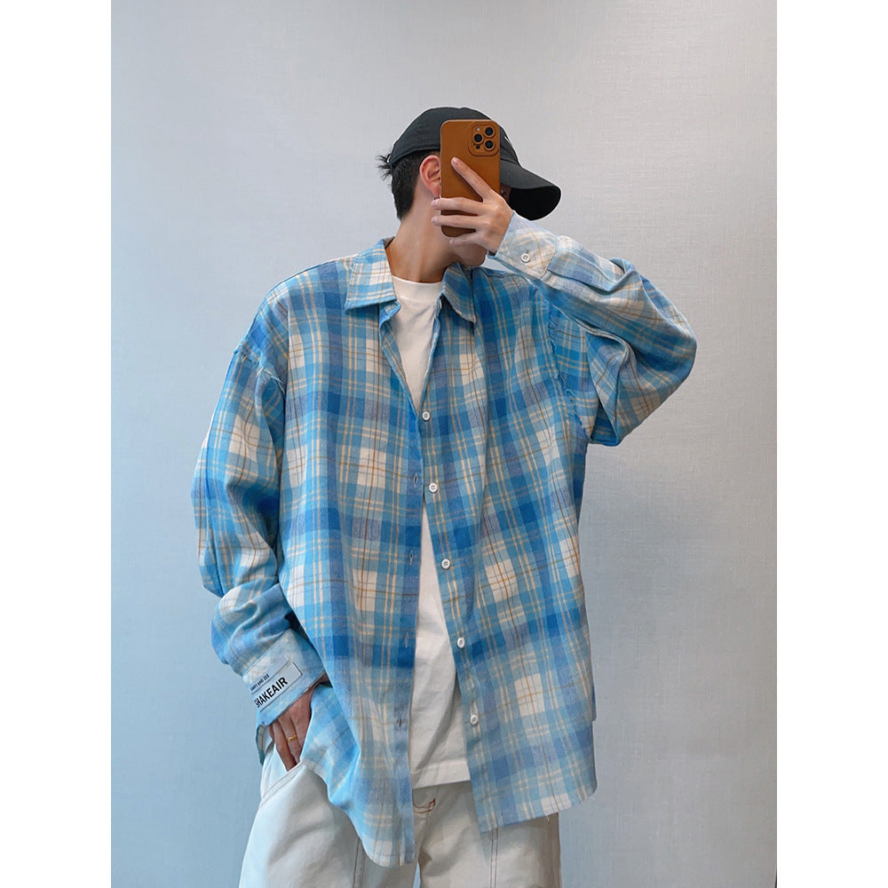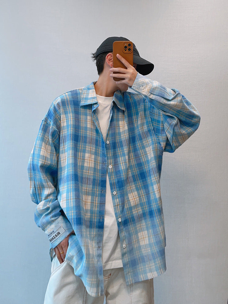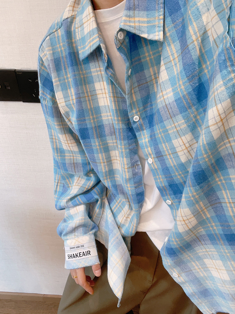 Retro distressed edge gradient printed plaid long-sleeved shirt new summer loose versatile casual shirt jacket