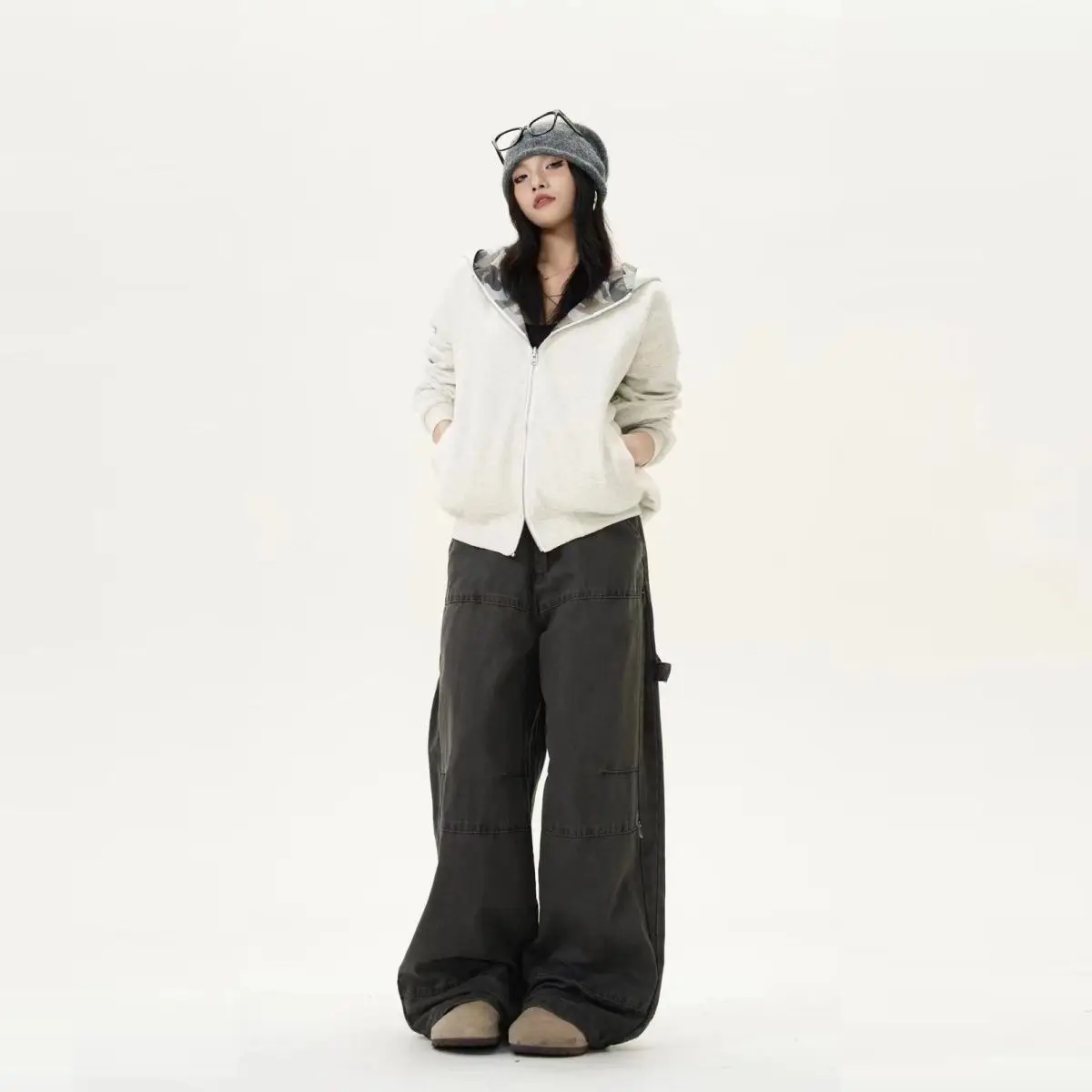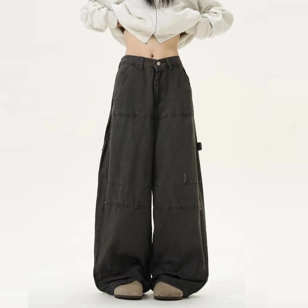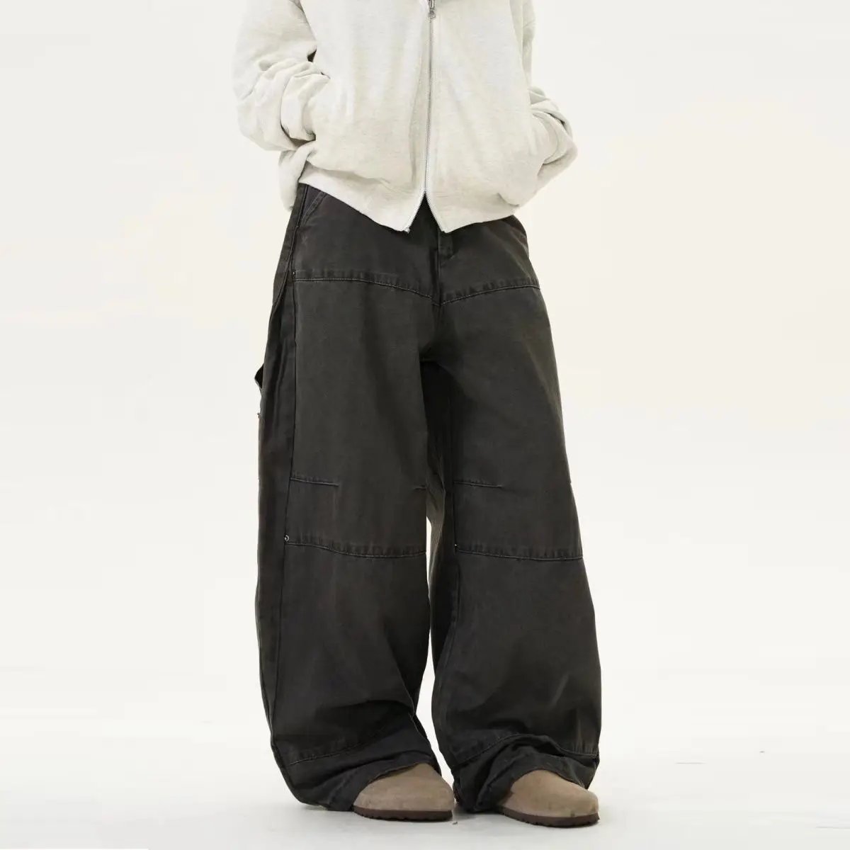 American high street trend retro men and women workwear straight leg jeans autumn new loose couple wide leg casual pants y2k