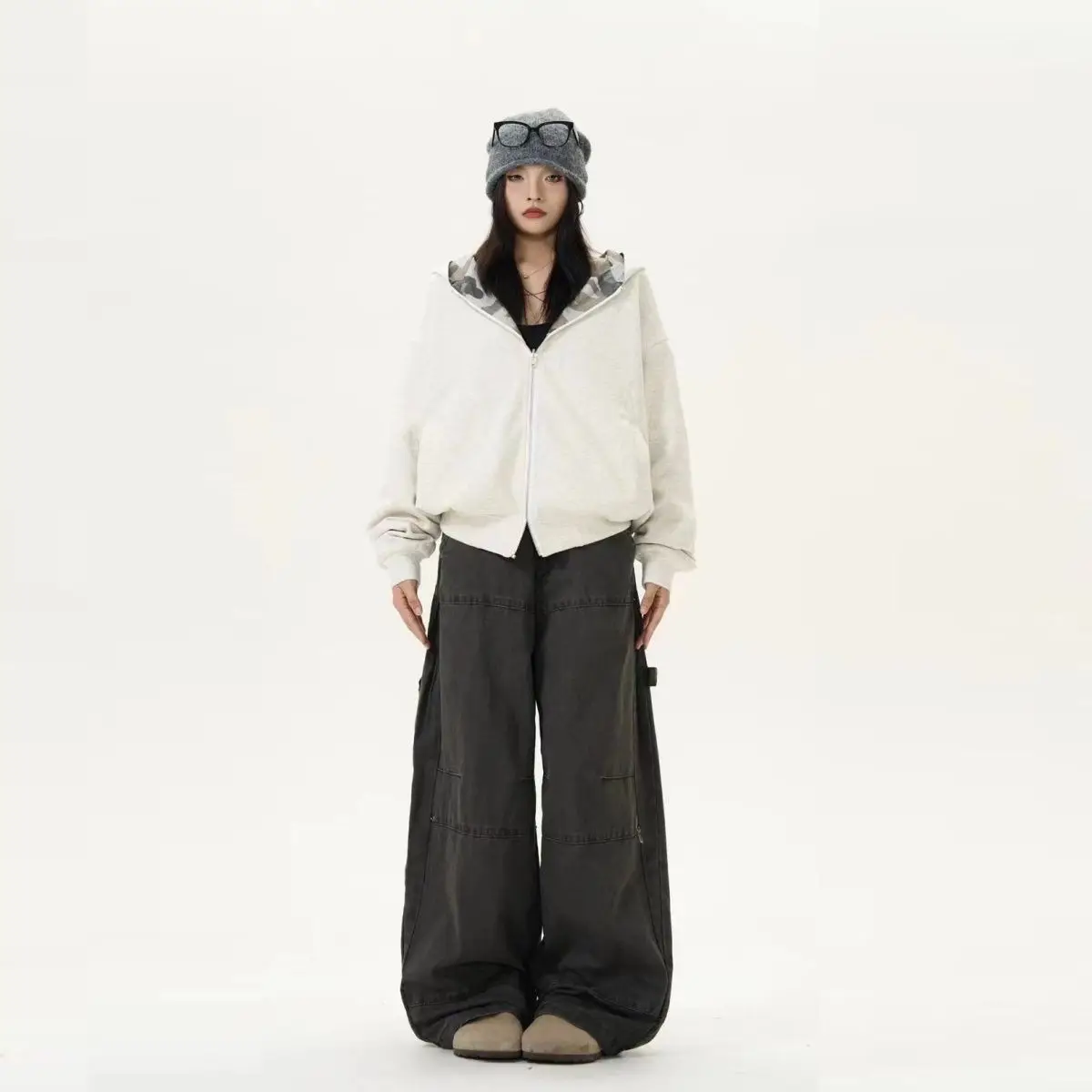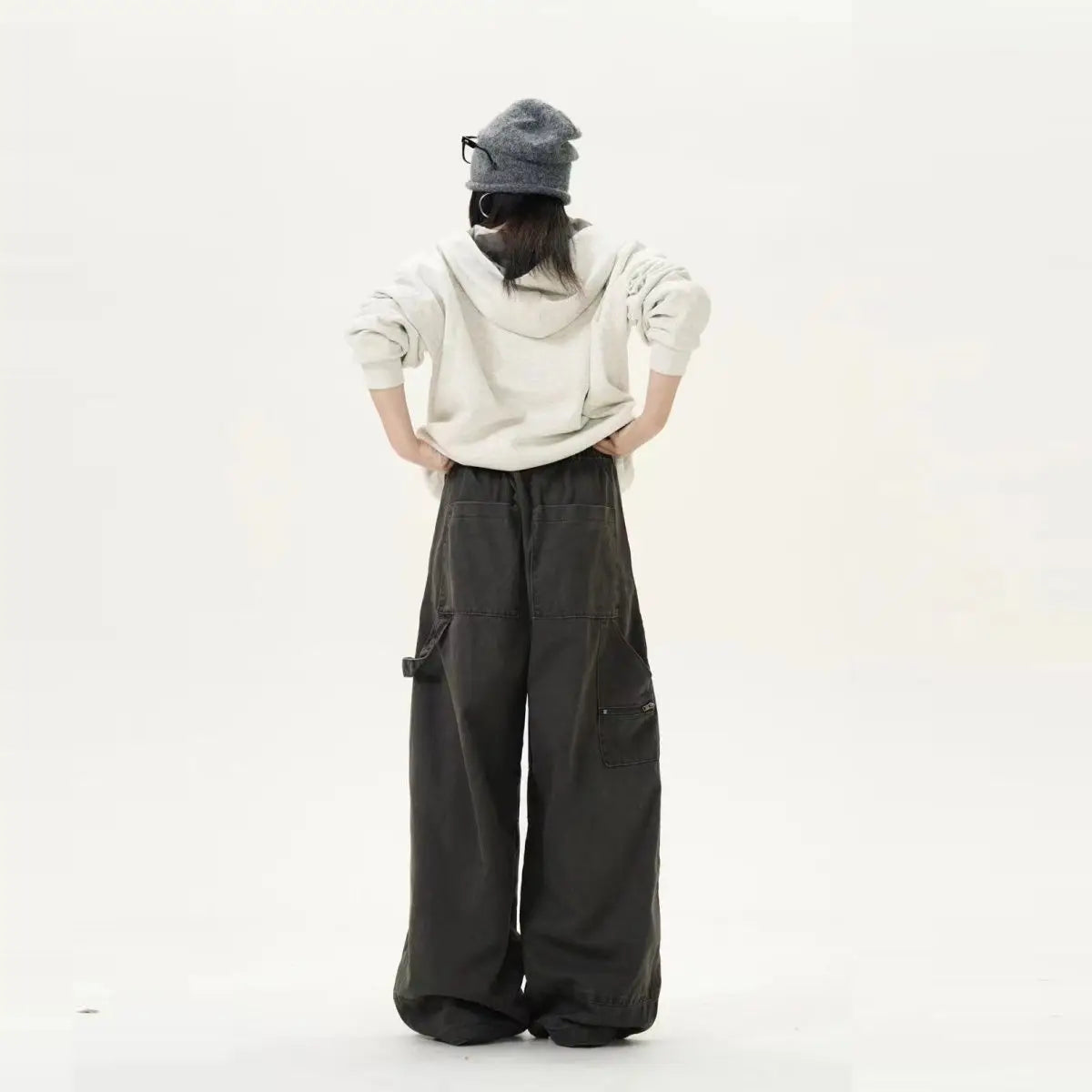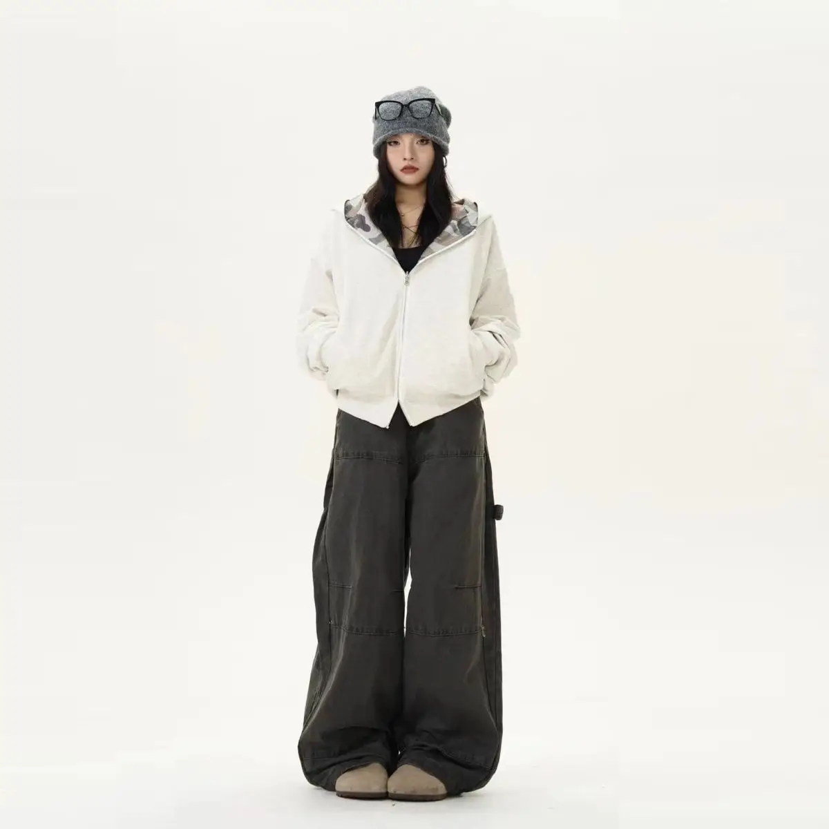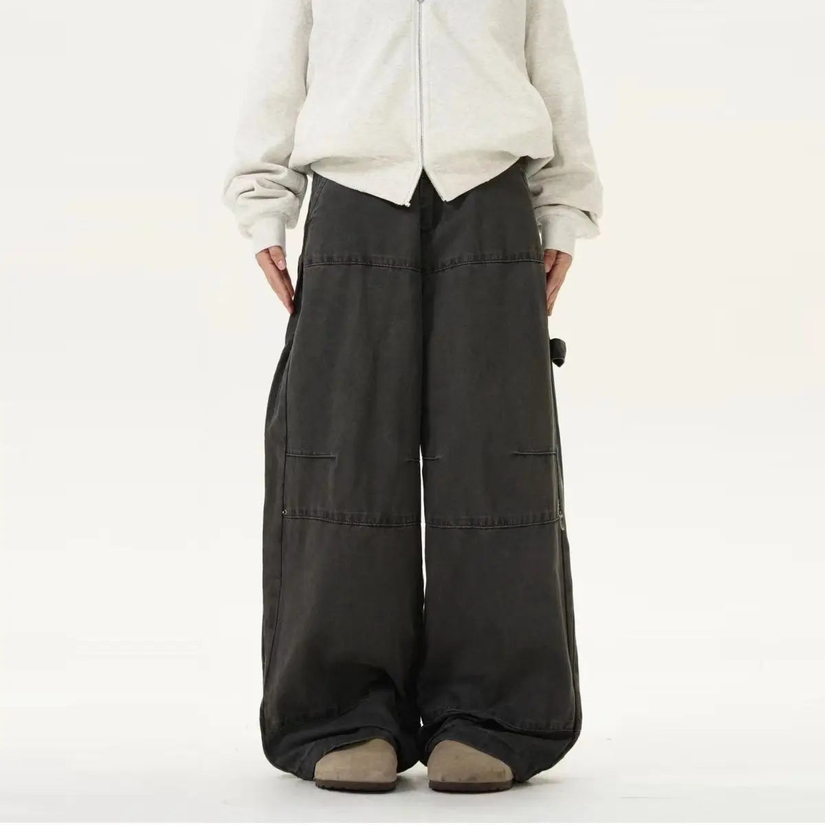American high street trend retro men and women workwear straight leg jeans autumn new loose couple wide leg casual pants y2k