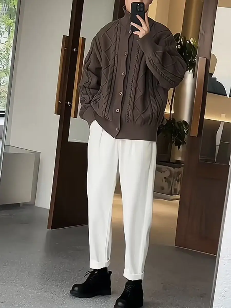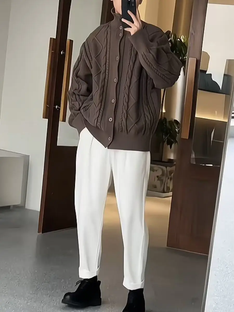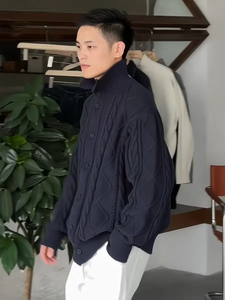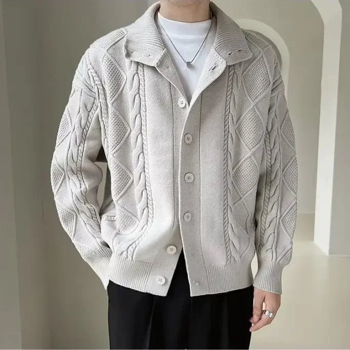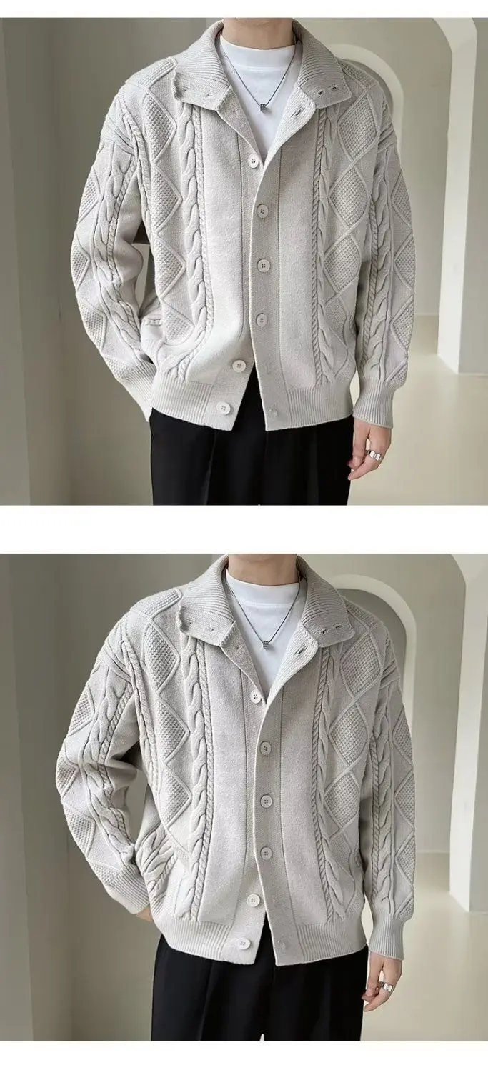 American New Twist Pattern Solid Cardigan Sweater Men's Autumn Winter Elegant Knitwear High-end Oversized Casual Sweater Jacket