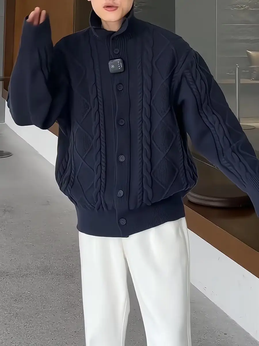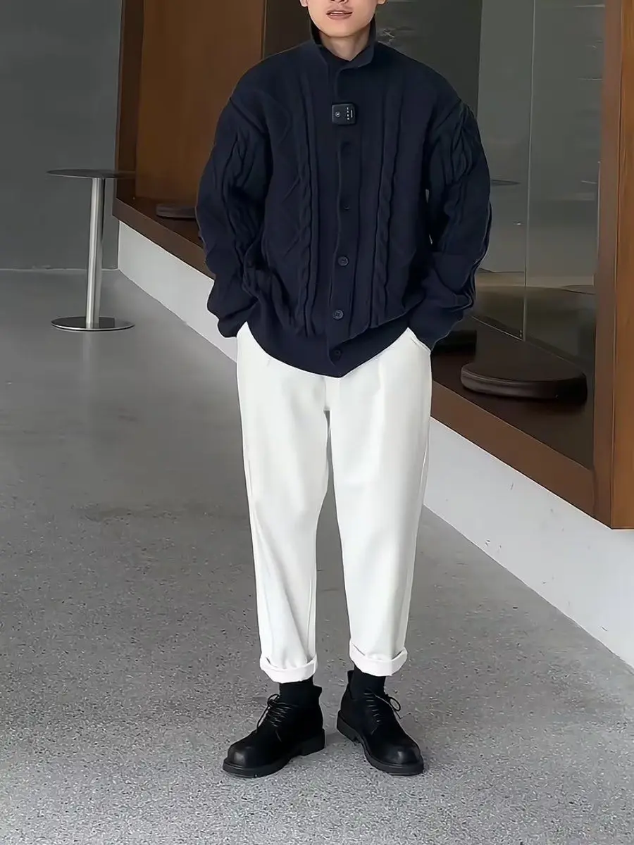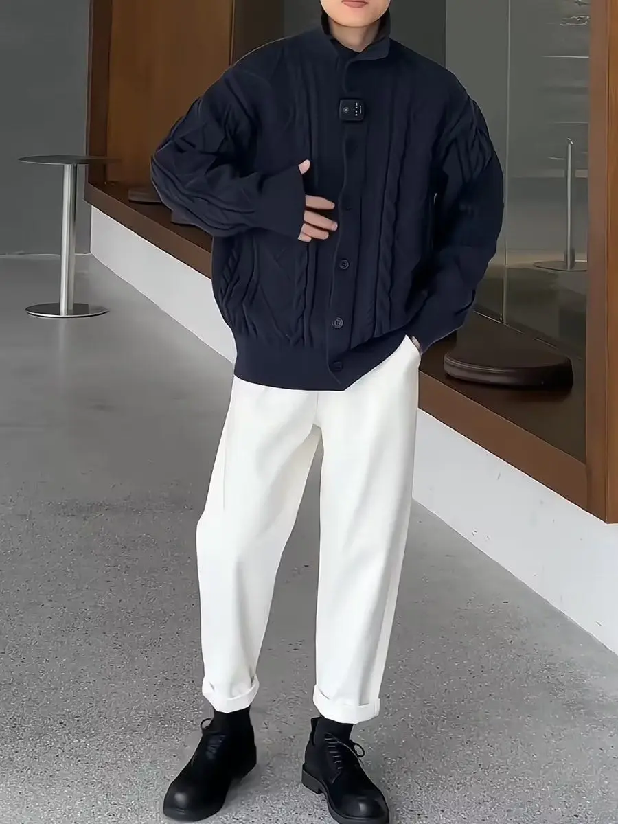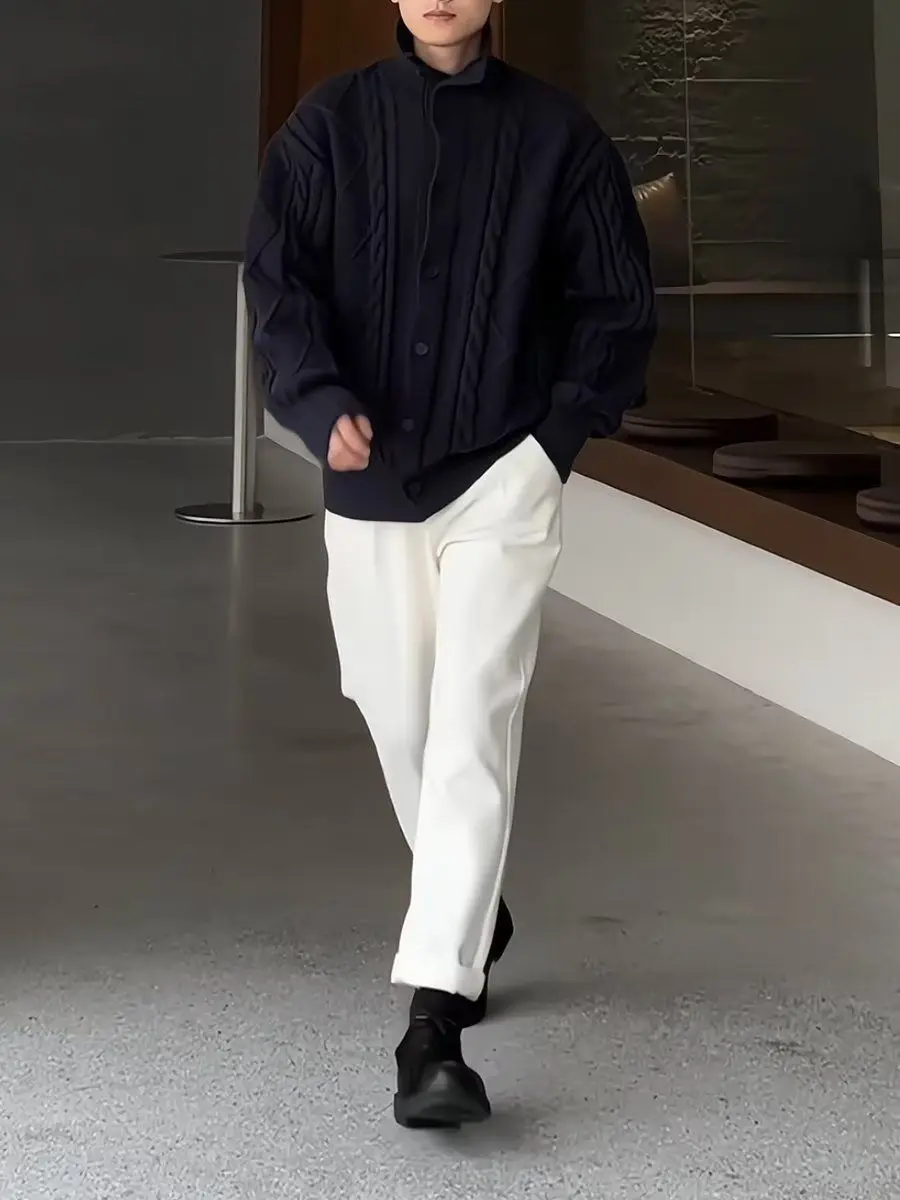 American New Twist Pattern Solid Cardigan Sweater Men's Autumn Winter Elegant Knitwear High-end Oversized Casual Sweater Jacket