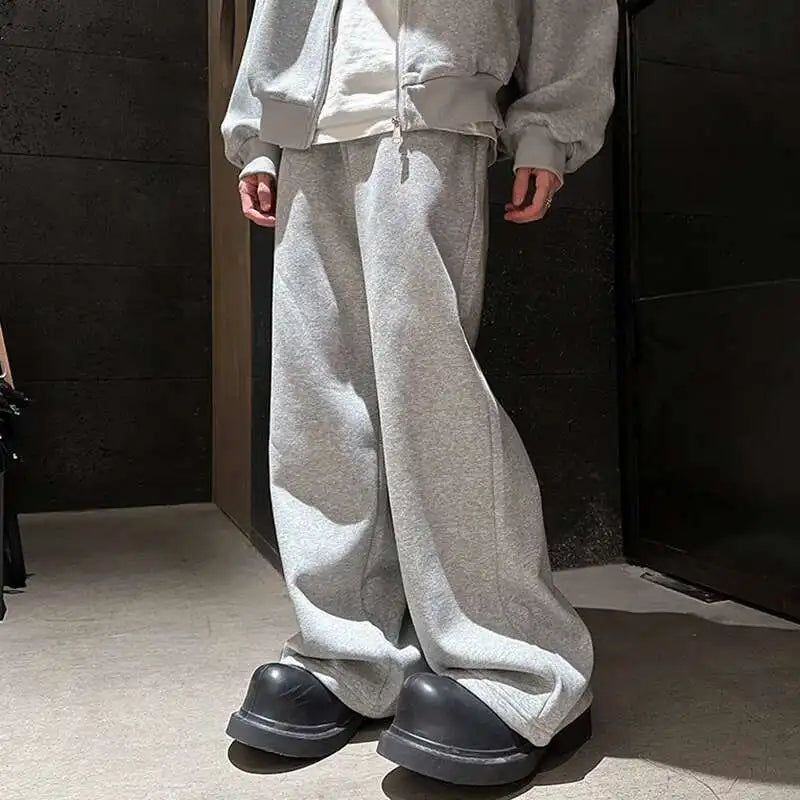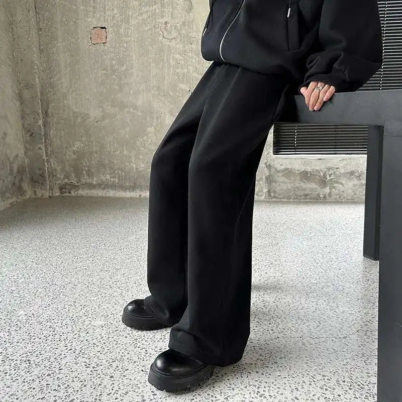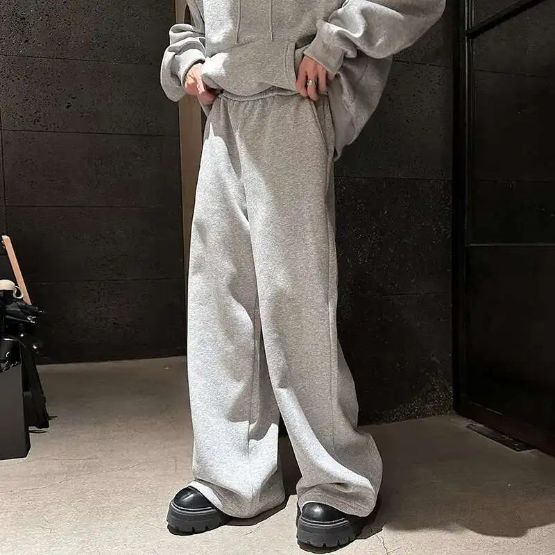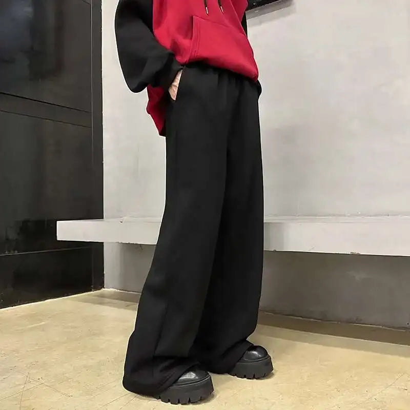 American Style Men's Sweatpants Elastic Waist Solid Color Bottom Straight Wide Leg Loose Sports Trousers New Simple