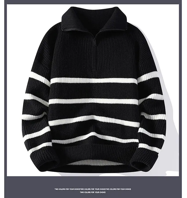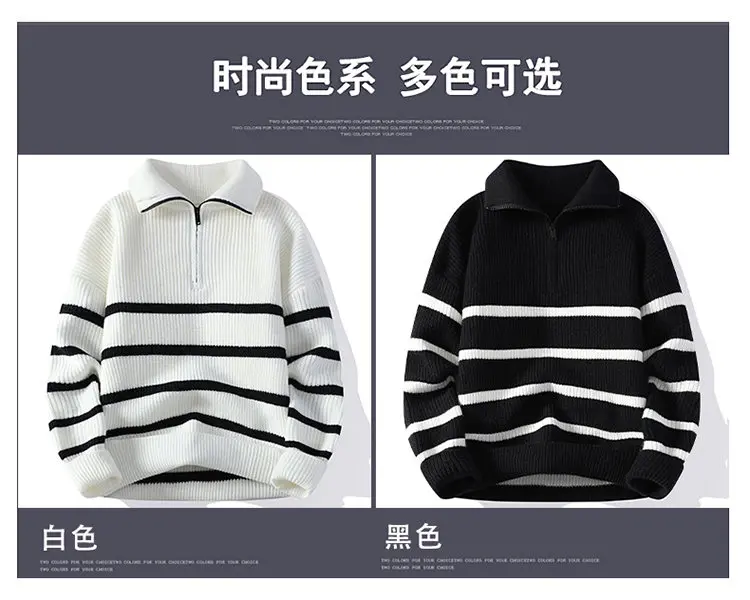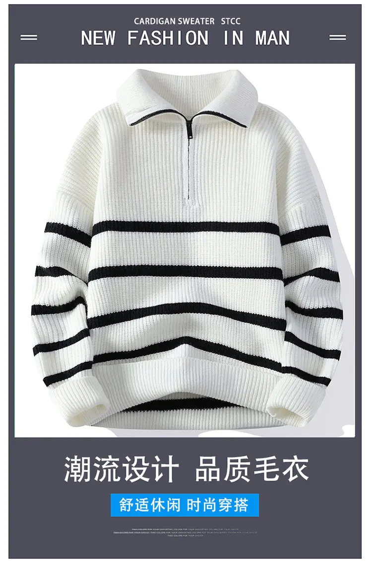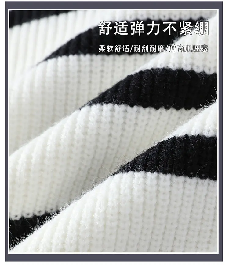 Autumn and Winter New Fashion Trend Warm Striped Sweater Men's Casual Loose Comfortable Thickened Large Size Sweater M-4XL