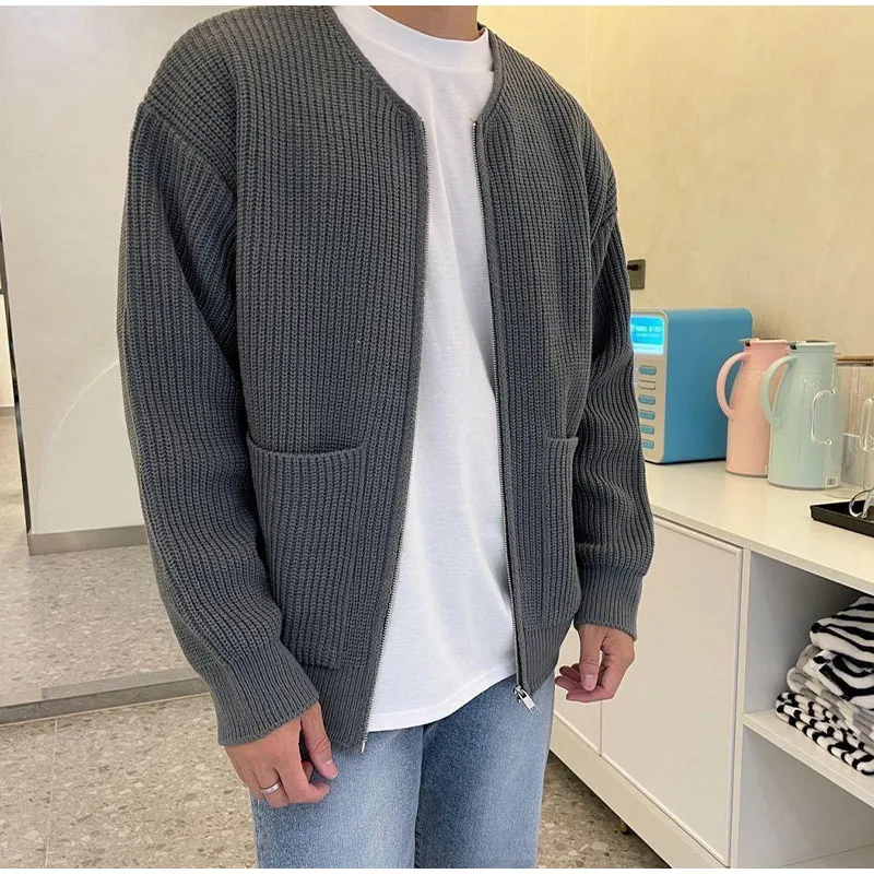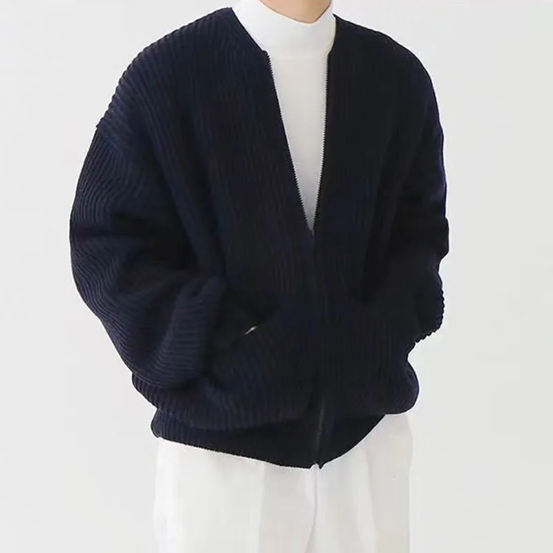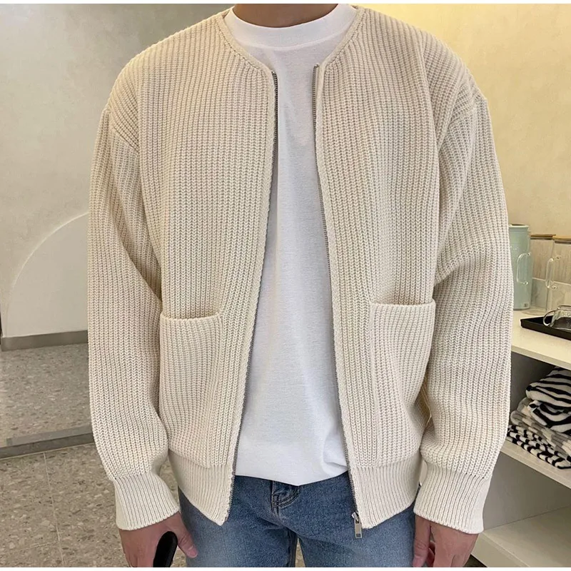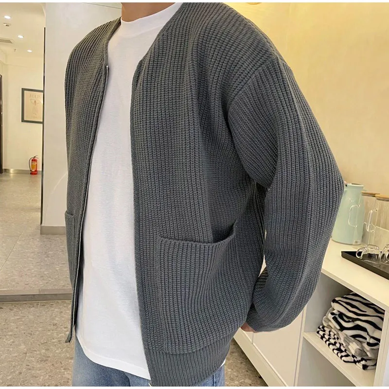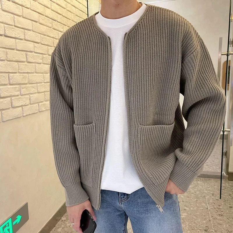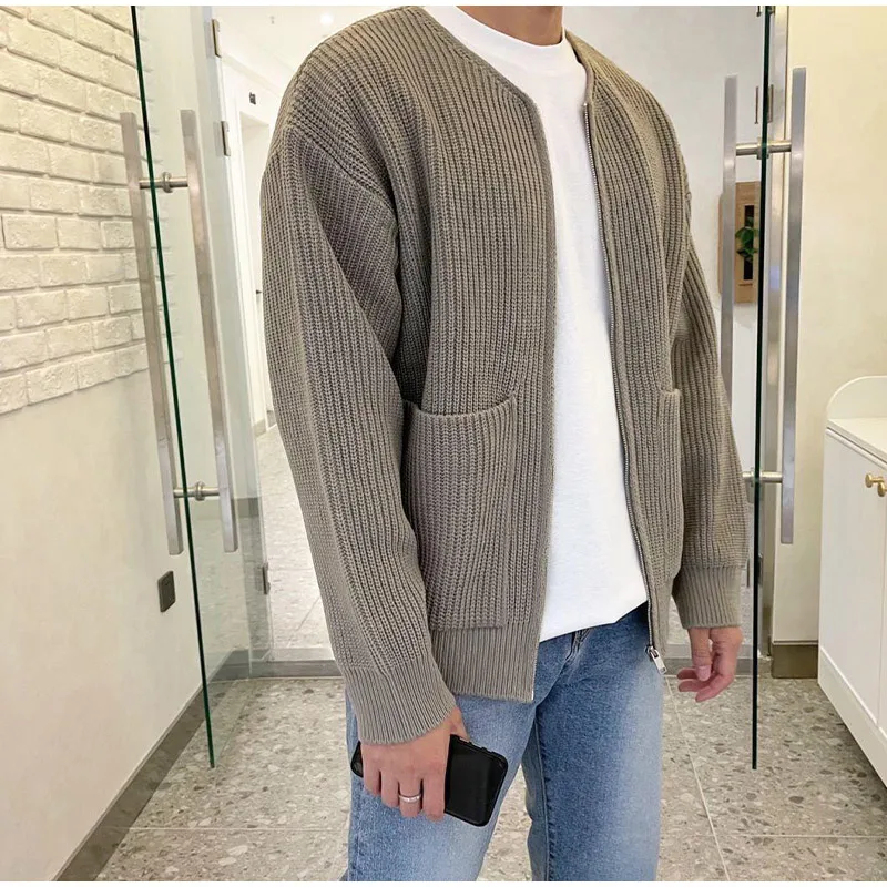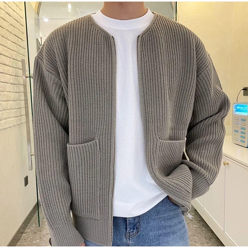 Autumn Knitted Long Sleeve Sweater Men Fashion Cardign Knitwear Slim Fit Men's Clothing New Pocket Warm Zipper Tops Male