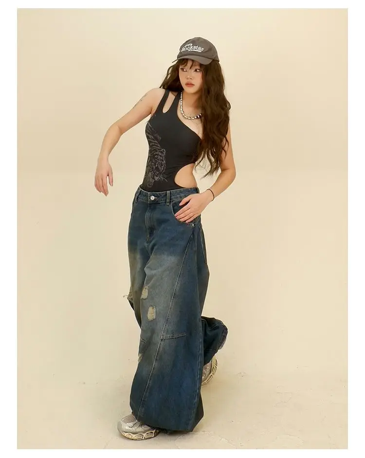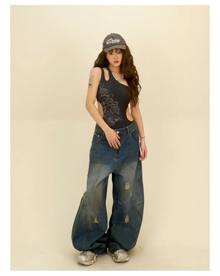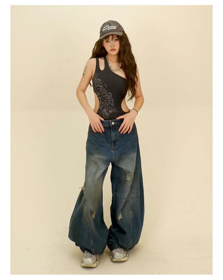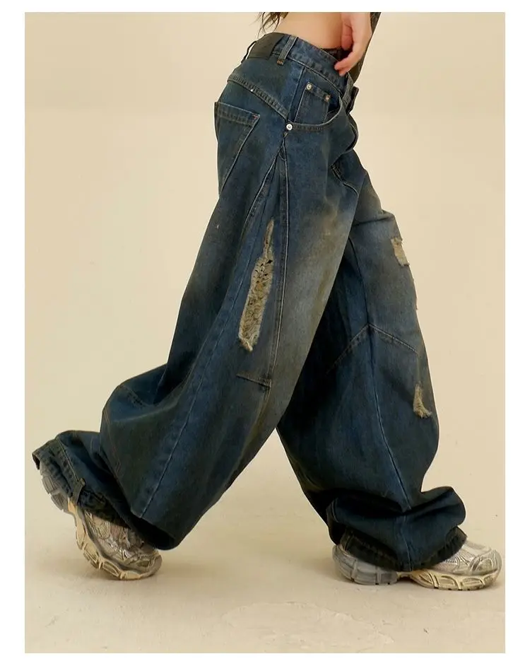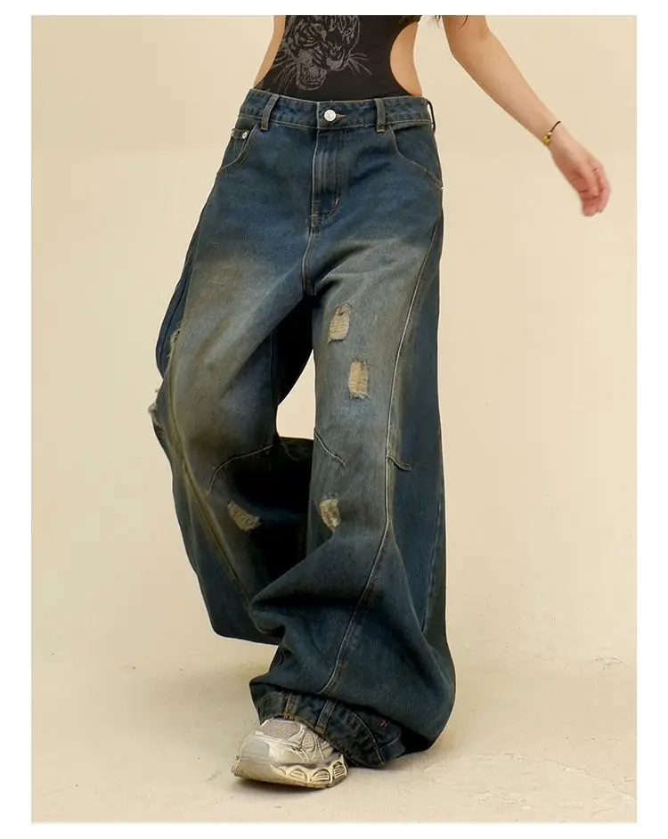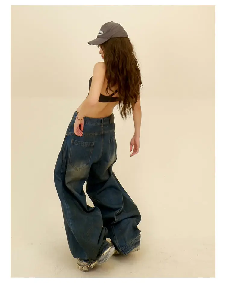 Autumn new men and women high street trendy straight leg washed jeans for couples loose retro wide leg casual Harajuku pants y2k