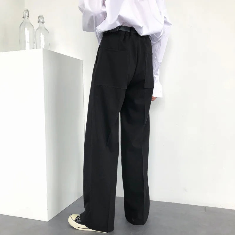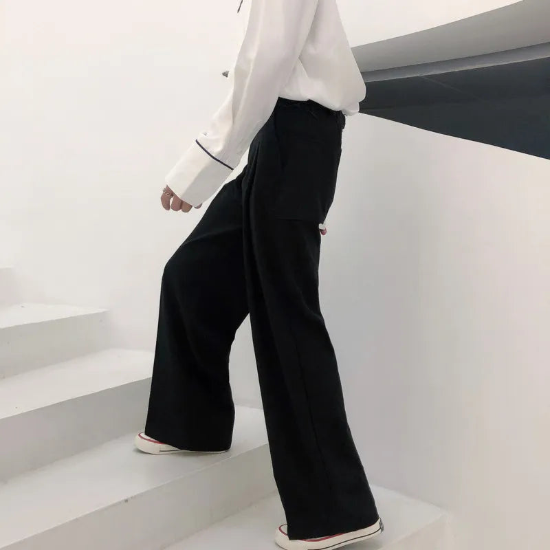 Autumn New Wide-leg Mop Pants For Men Korean Streetwear Fashion Loose Straight High Rise Pants Casual Trousers