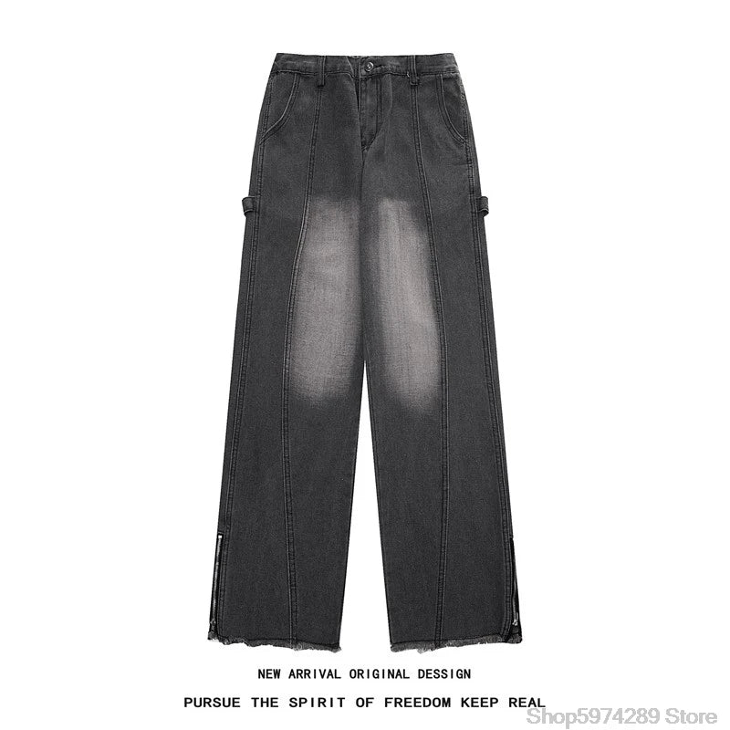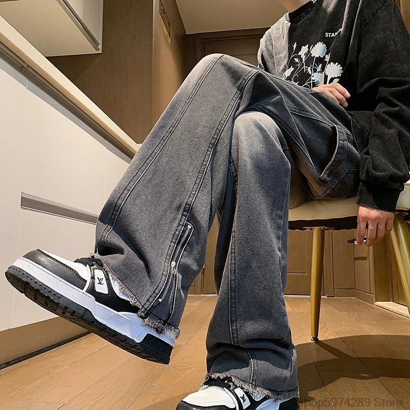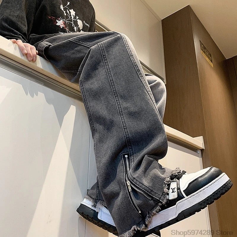 Autumn Side Zipper Jean Pants New Fashion men streetwear Jeans Loose Straight Denim Pant Mens Vintage All-match Trousers