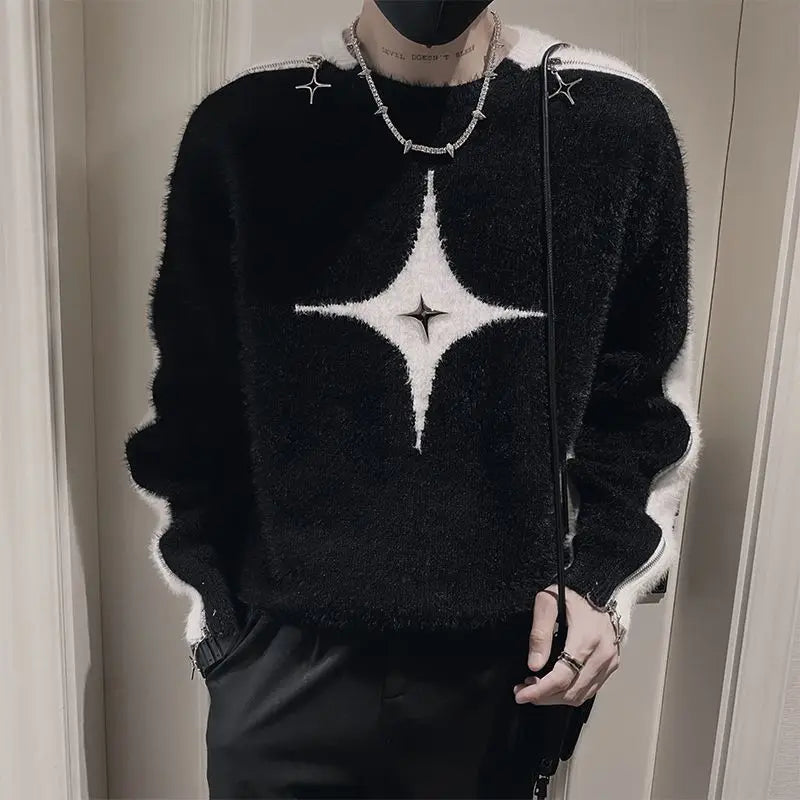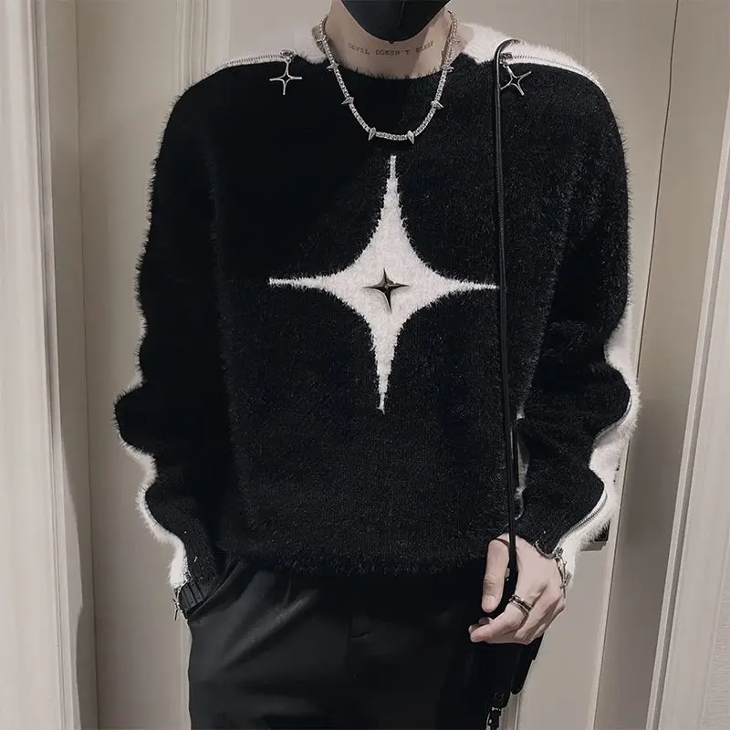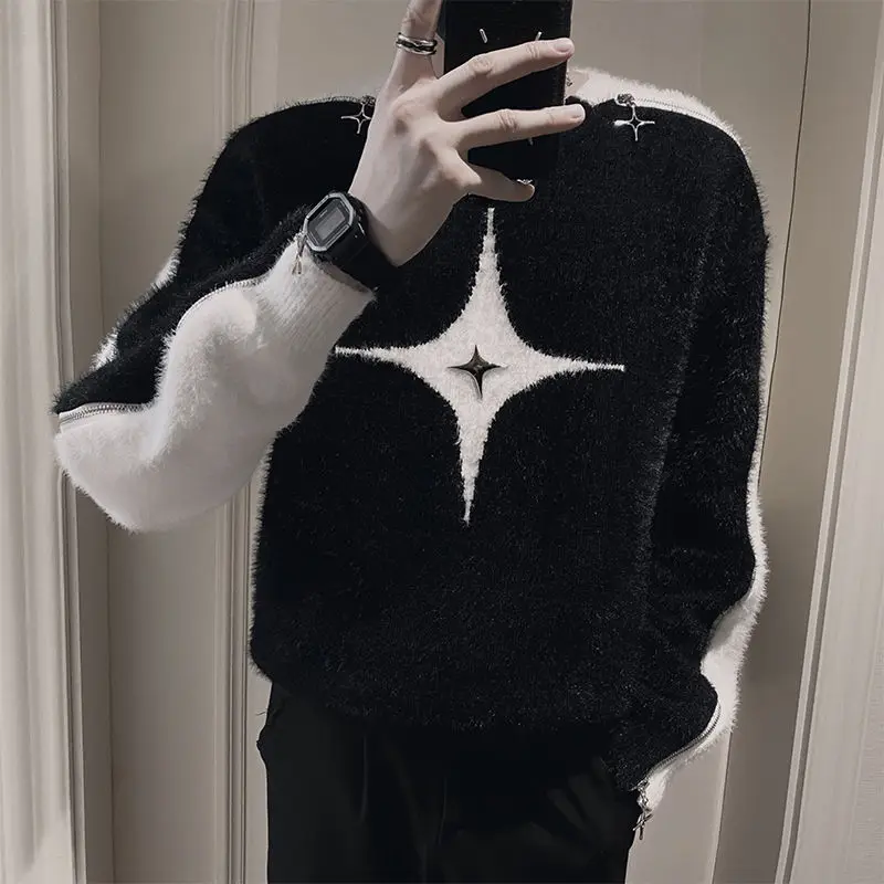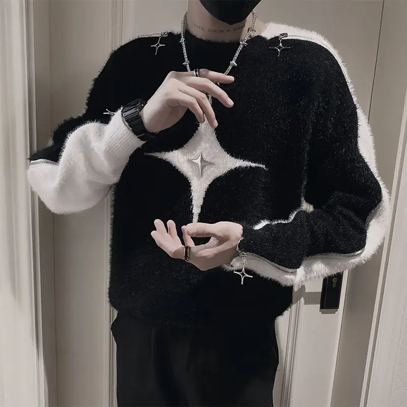 Autumn Winte New Fashion Round Neck Long Sleeve Pullovers Men's Clothing Color Blocking Knitting Casual Loose All-match Sweaters