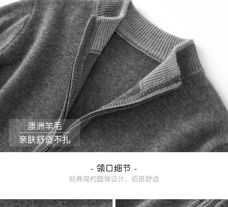Autumn/Winter New 100% Pure Cashmere Sweater Men's Half High Neck Knitted Zippered Cardigan Solid Color Wool Top Coat