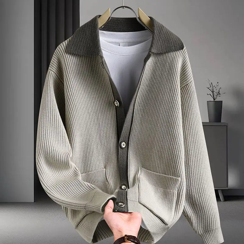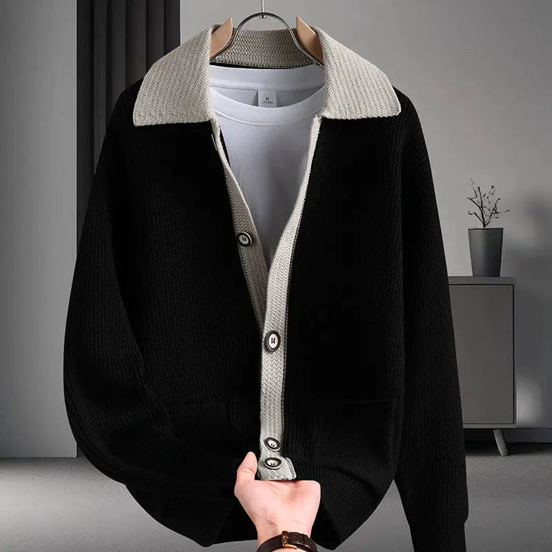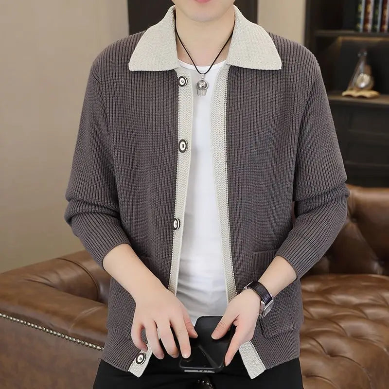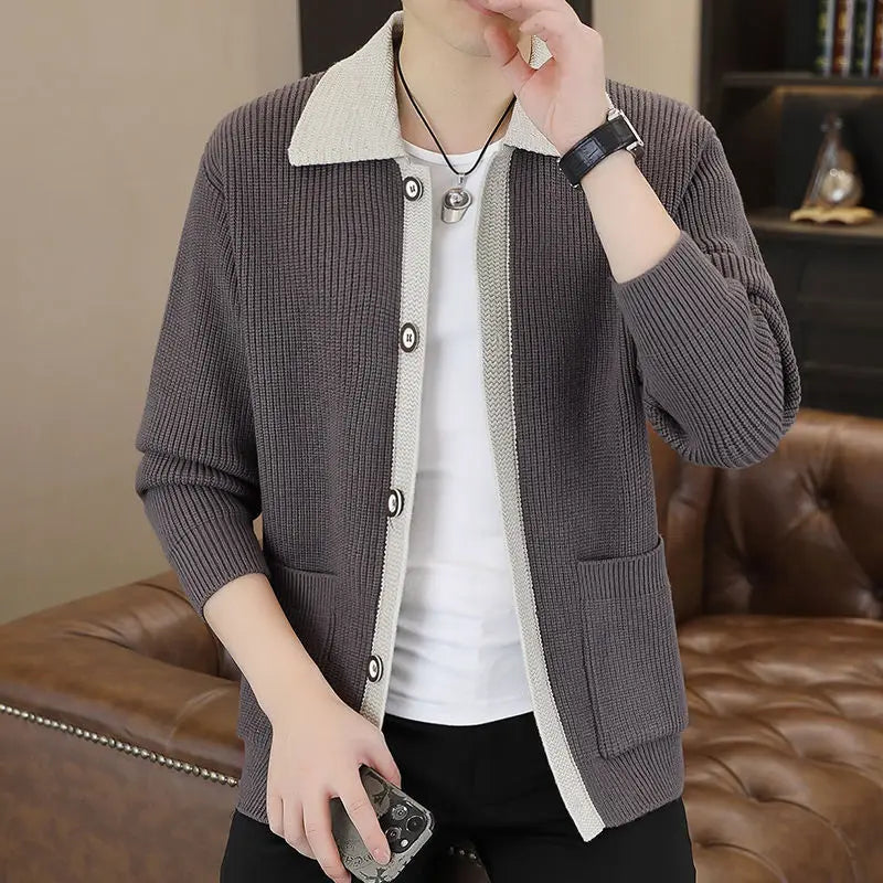 Autumn Winter New Fashion Turn-down Collar Long Sleeve Contrast Color Sweaters Men's Clothing Korean Knitting Trend Pockets Tops